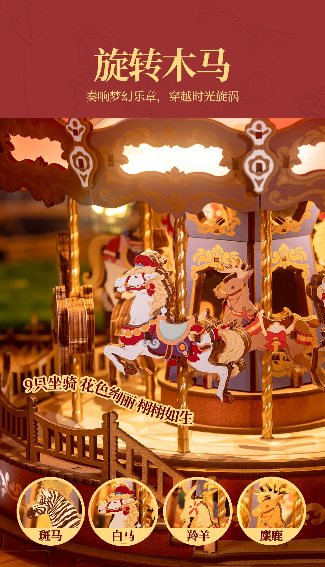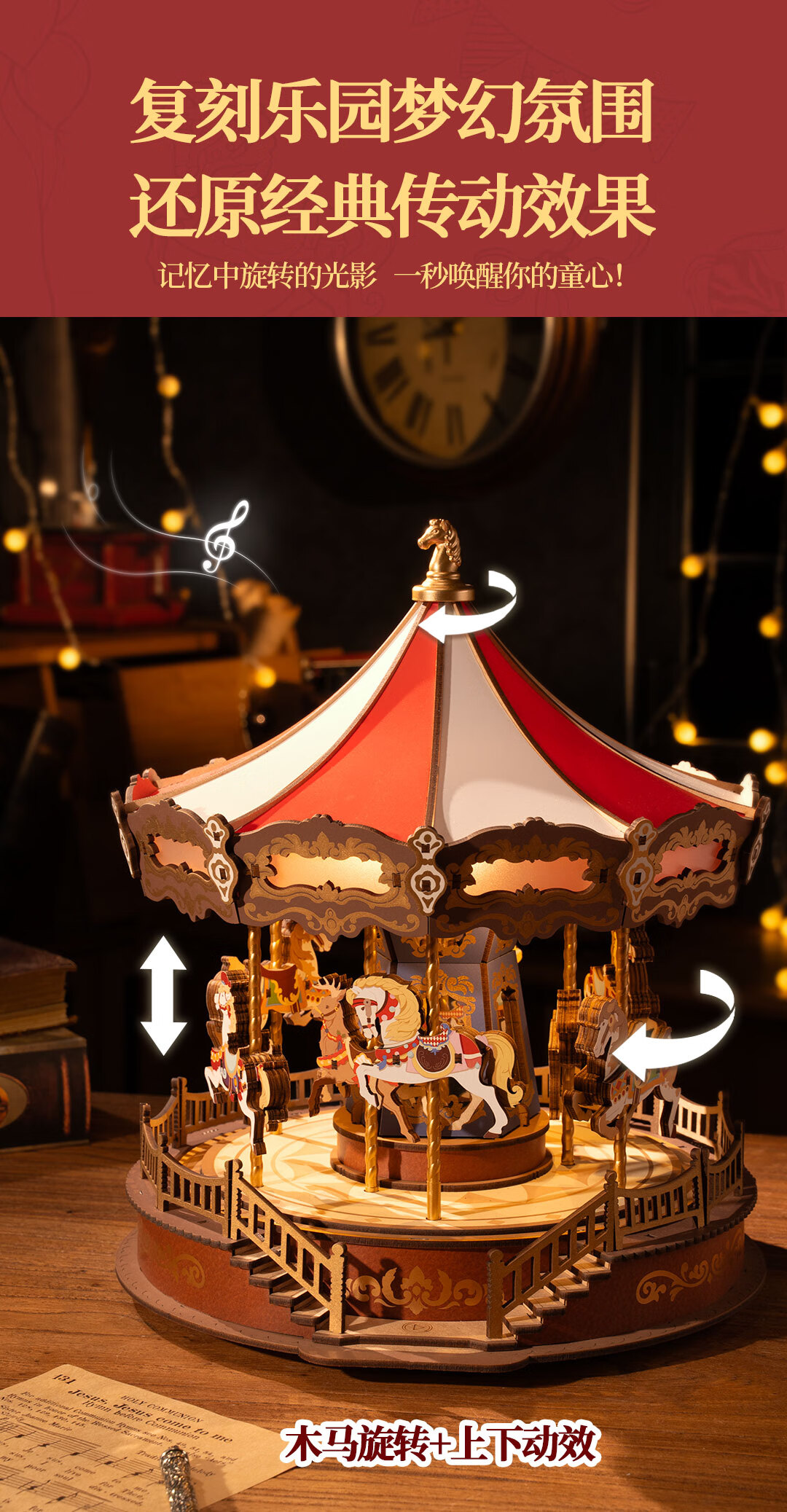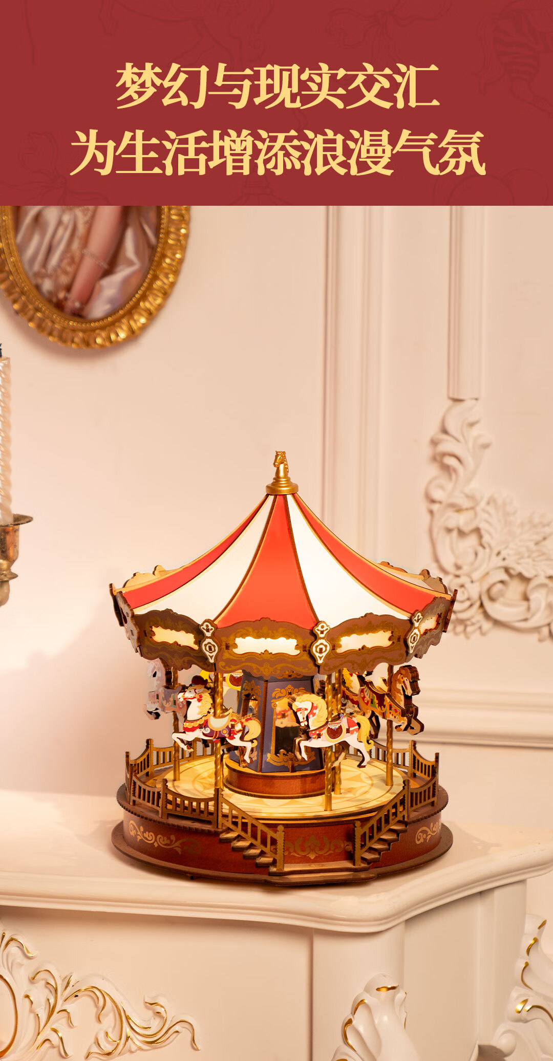 若来(Rolife)旋转木马八音盒diy手工拼装积木模型玩具音乐盒儿童圣诞礼物女孩