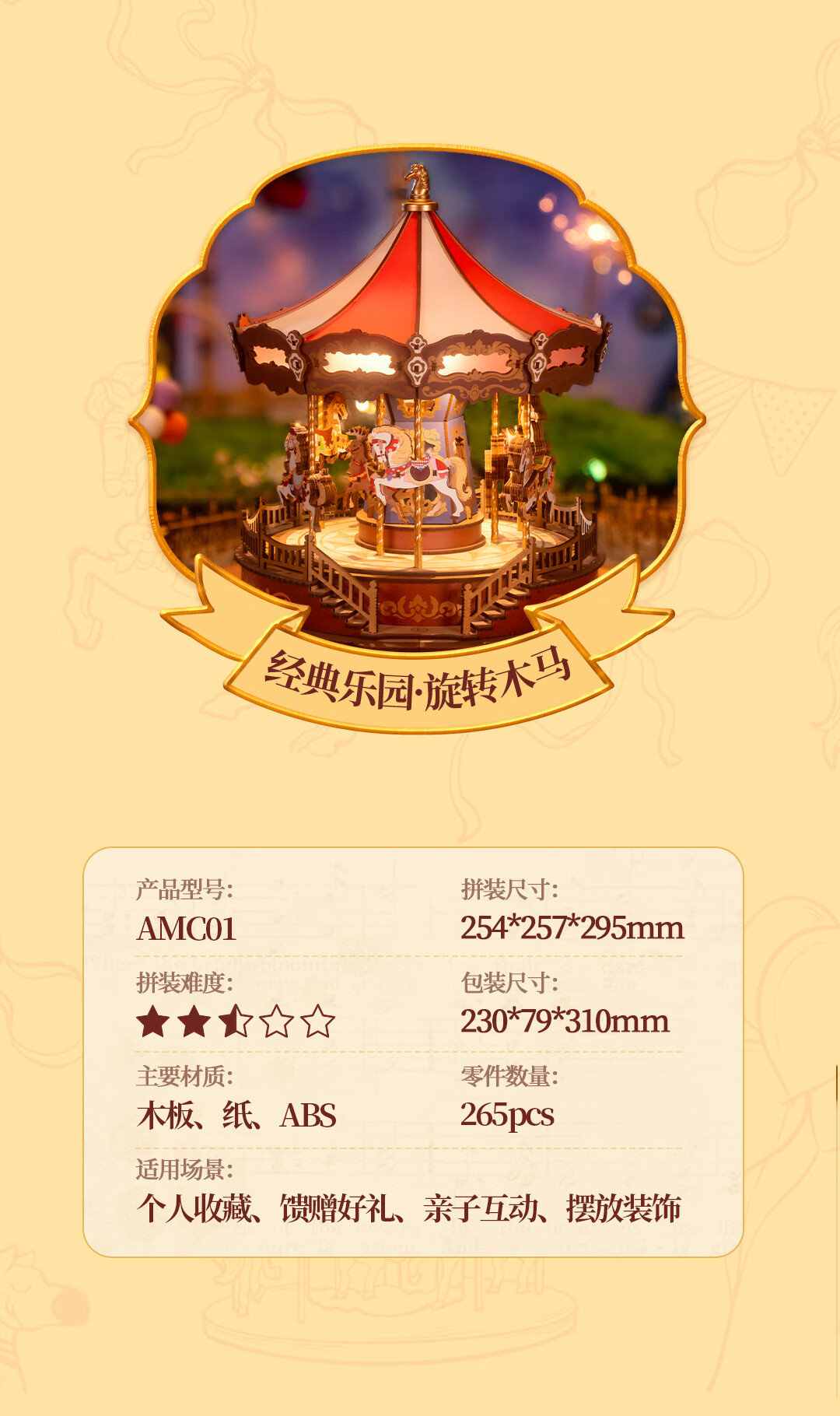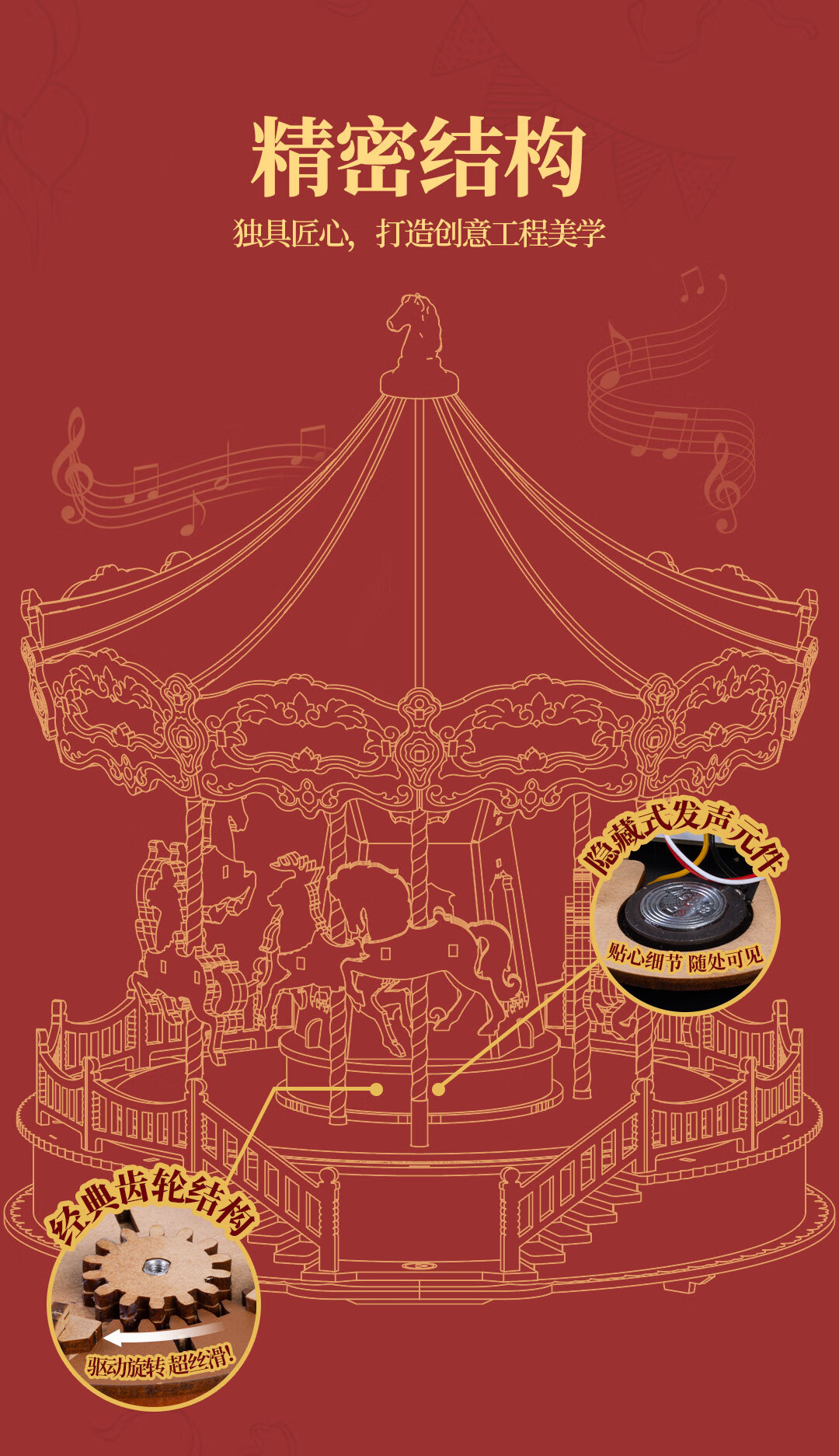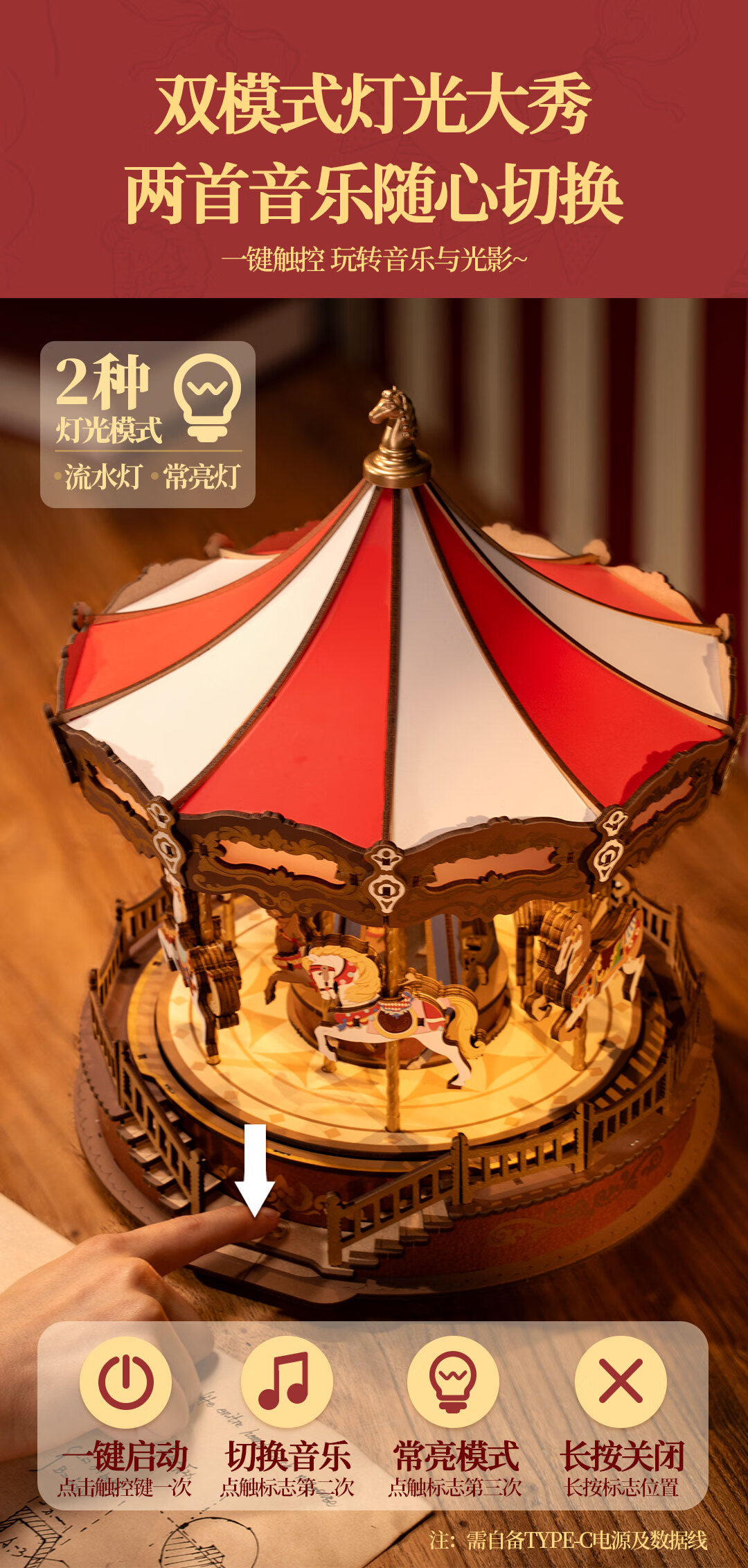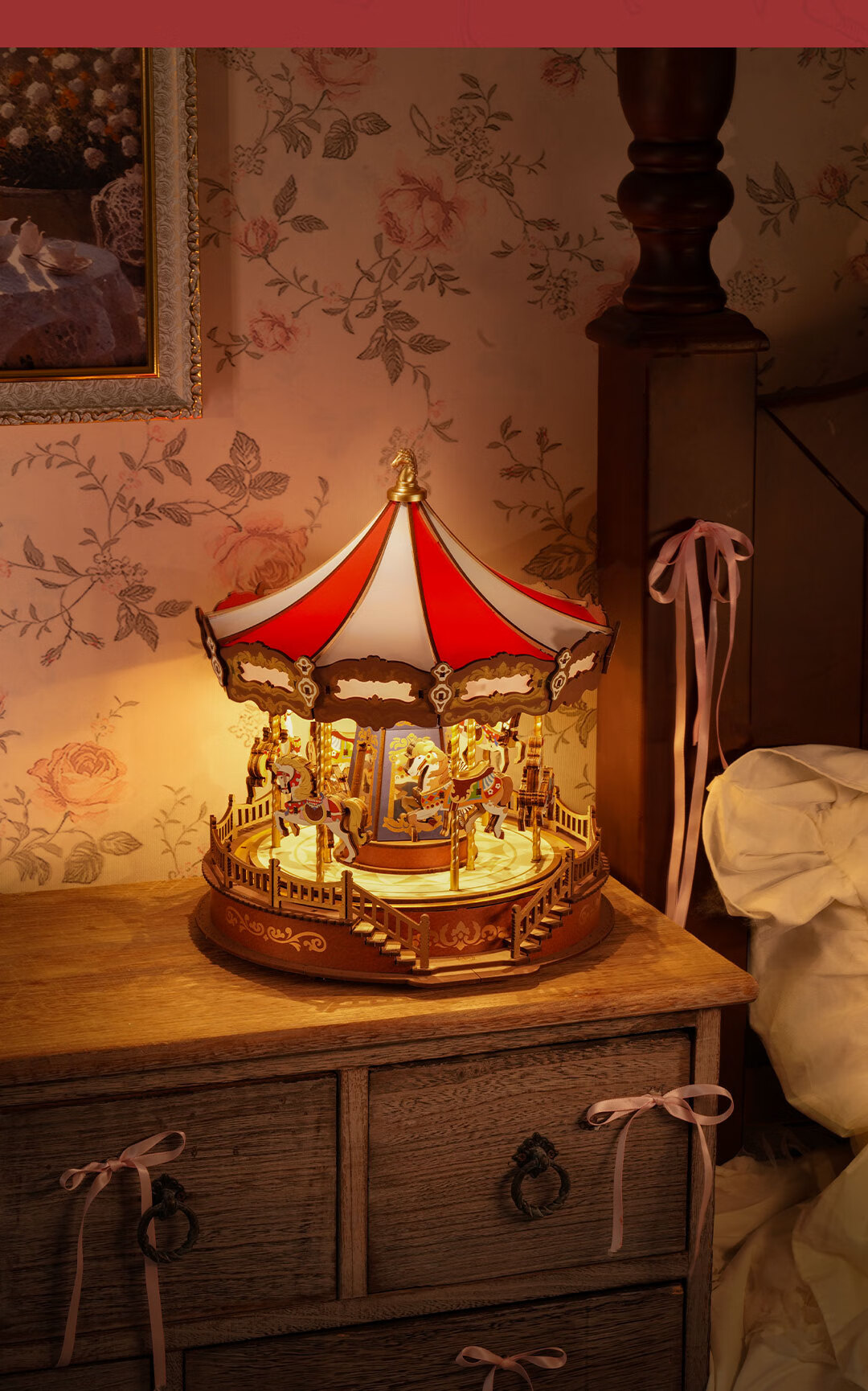 若来(Rolife)旋转木马八音盒diy手工拼装积木模型玩具音乐盒儿童圣诞礼物女孩