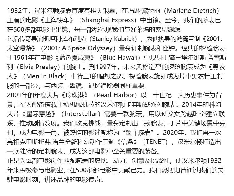 汉米尔顿(Hamilton)汉密尔顿墨菲手表男士机械表瑞士手表 《星际穿越》电影同款