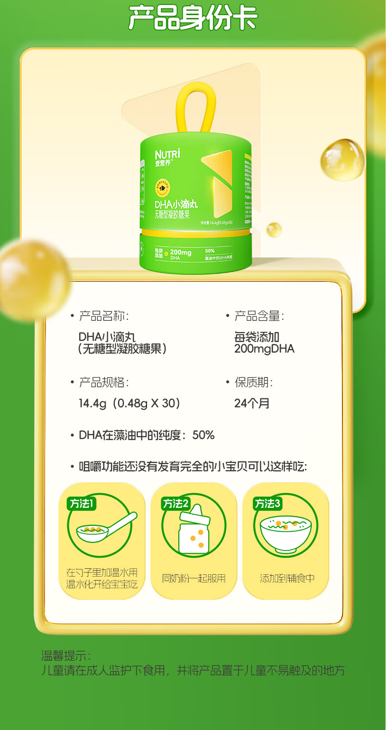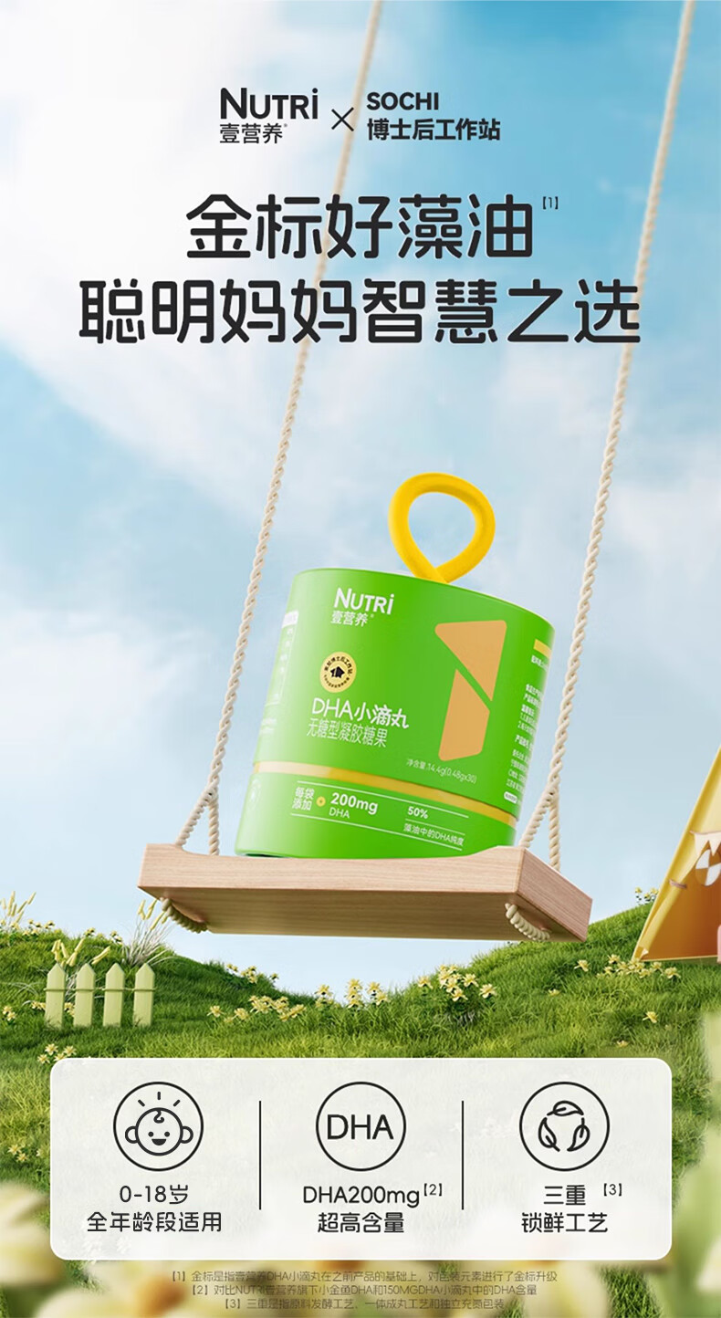 壹营养藻油DHA小滴丸5袋 每袋DHA含量200mg升级款 婴幼宝宝儿童孕妇