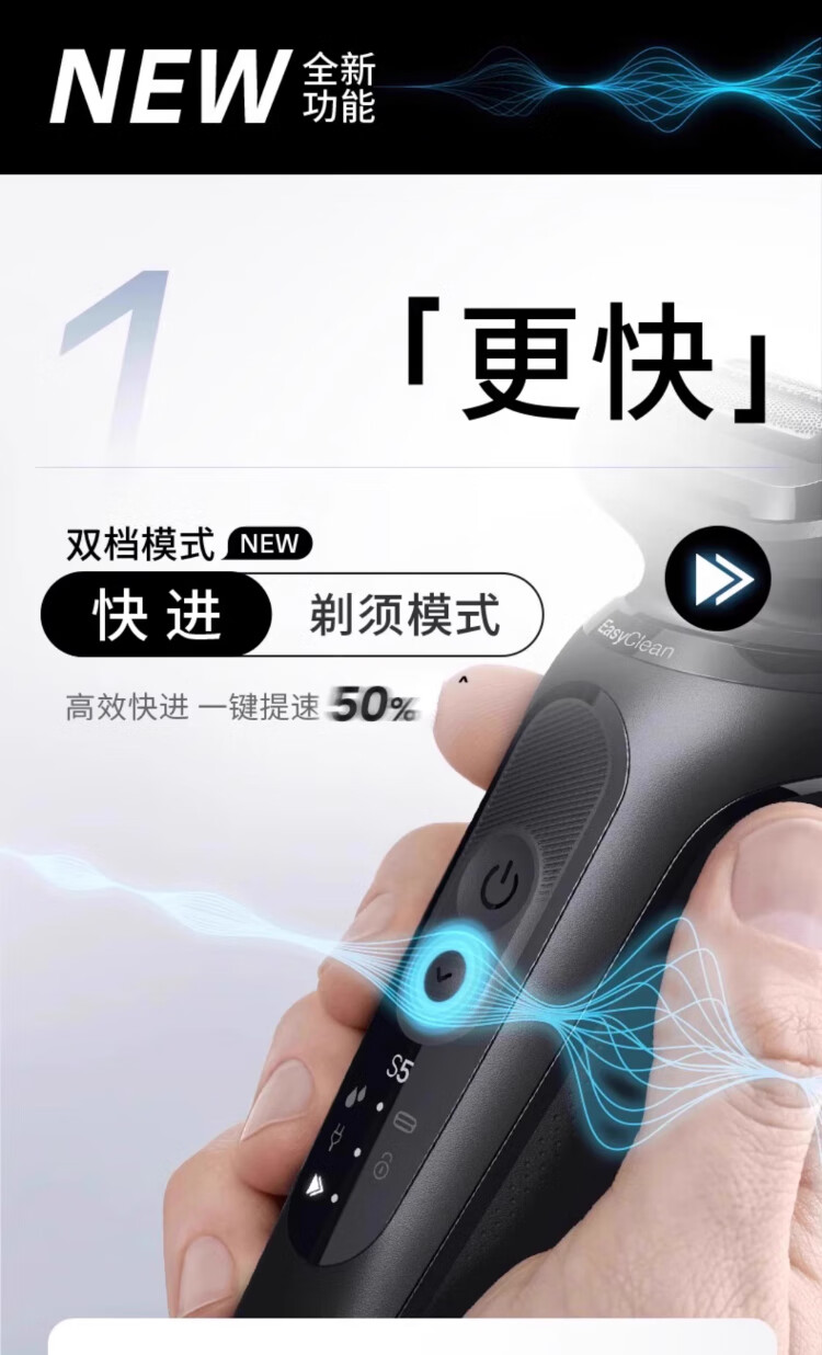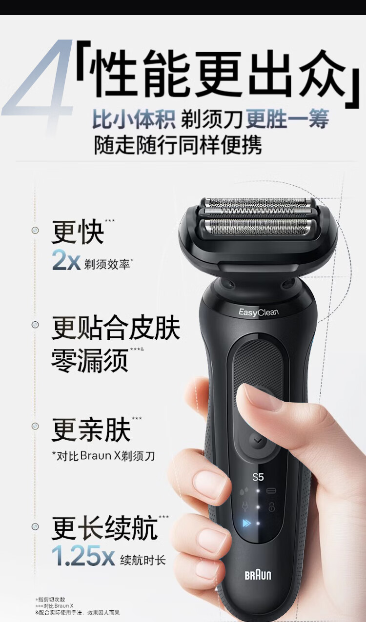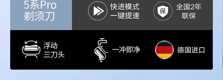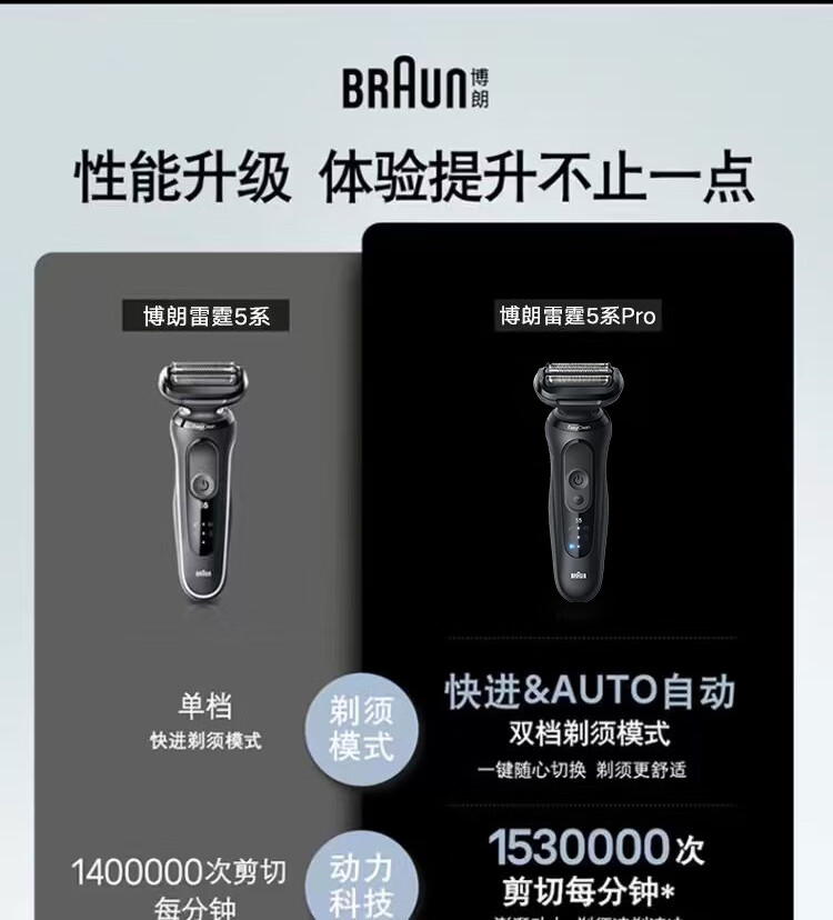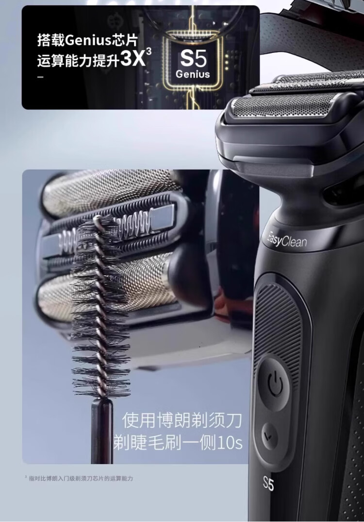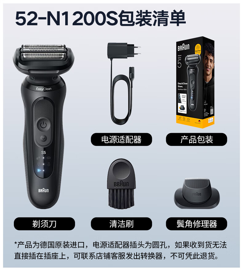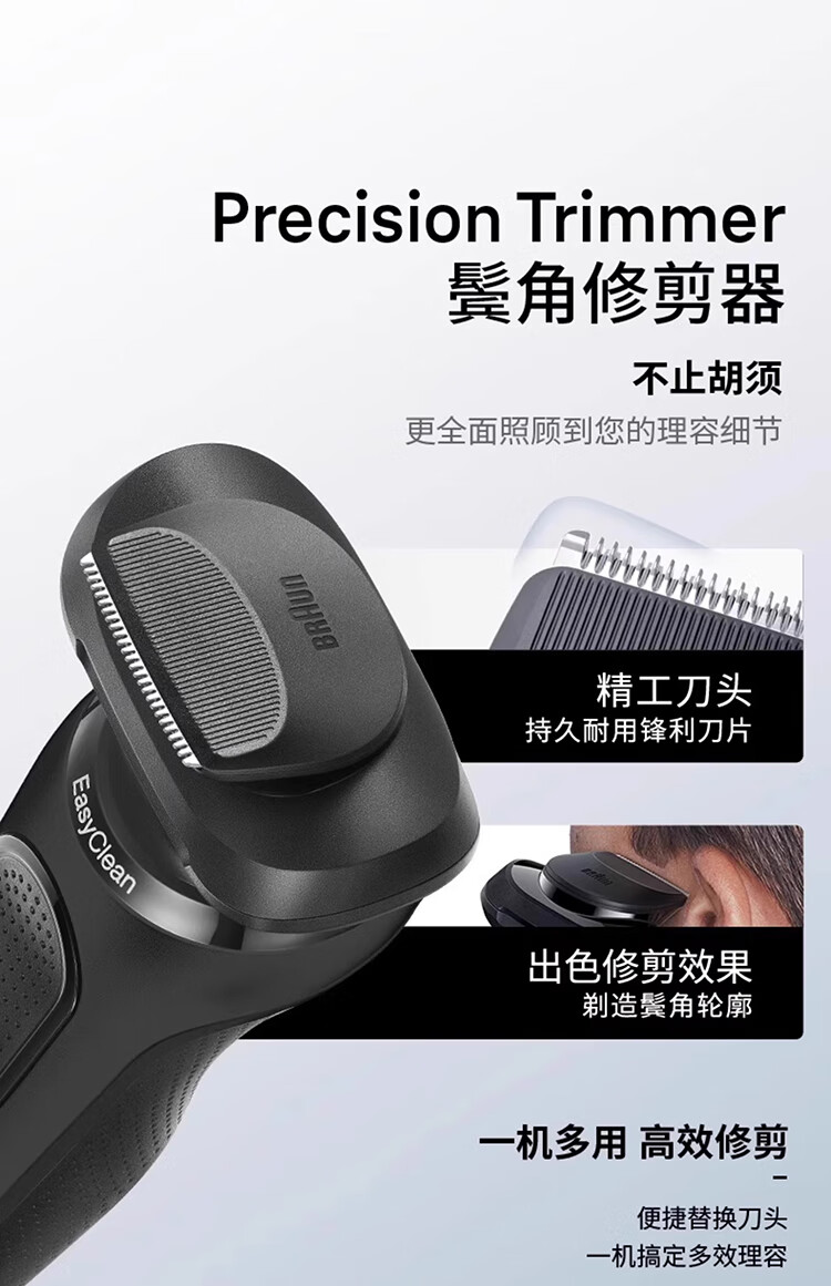 博朗(BRAUN)电动剃须刀5系Pro往复式刮胡刀带配件 德国原装进口 生日礼物送老公 52-N1200S 配鬓角修剪器 黑色