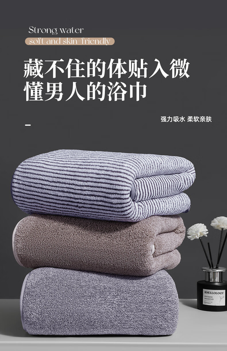 WCZ德国浴巾男士洗澡家用比吸水速干大毛巾2025新款裹巾 繁星灰-浴巾3A级A类标准