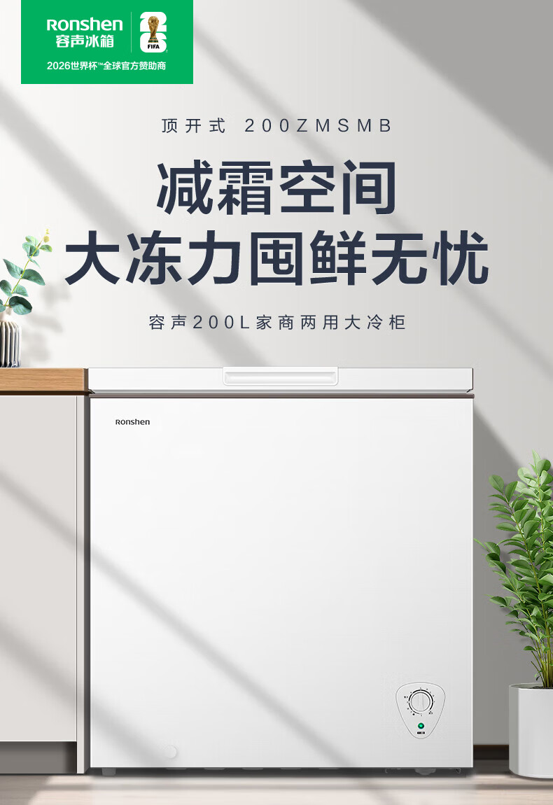 容声【国家补贴20%】 容声200升减霜小型冰柜家用冷藏冷冻转换单温冷柜 一级能效家商两用卧式冷柜 以旧换新 BD/BC-200ZMSMB 200L
