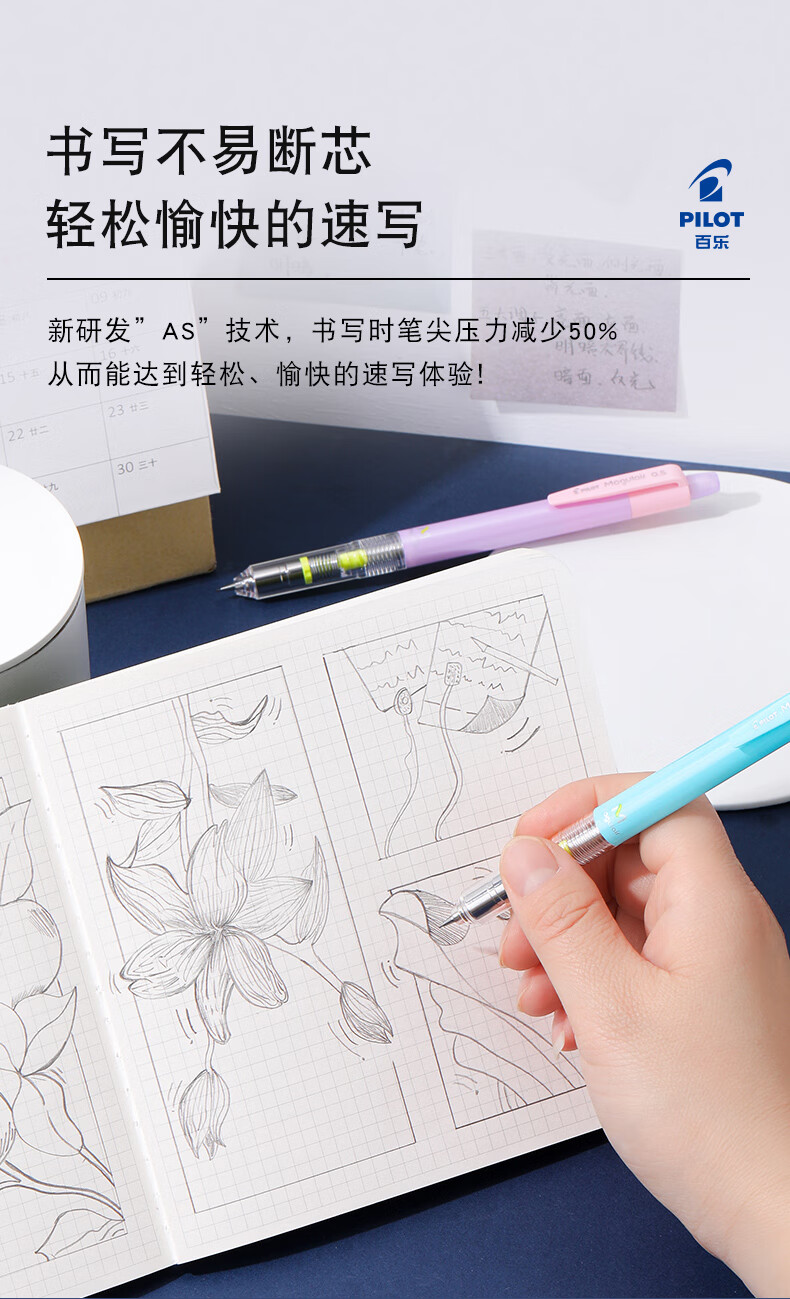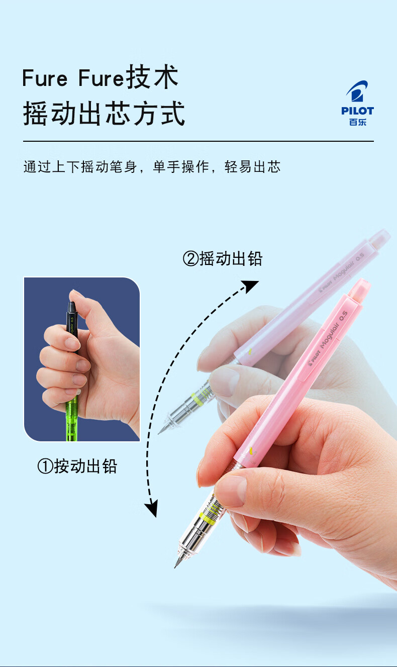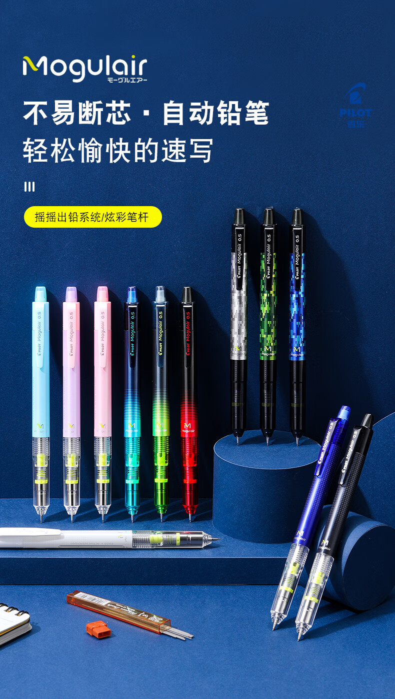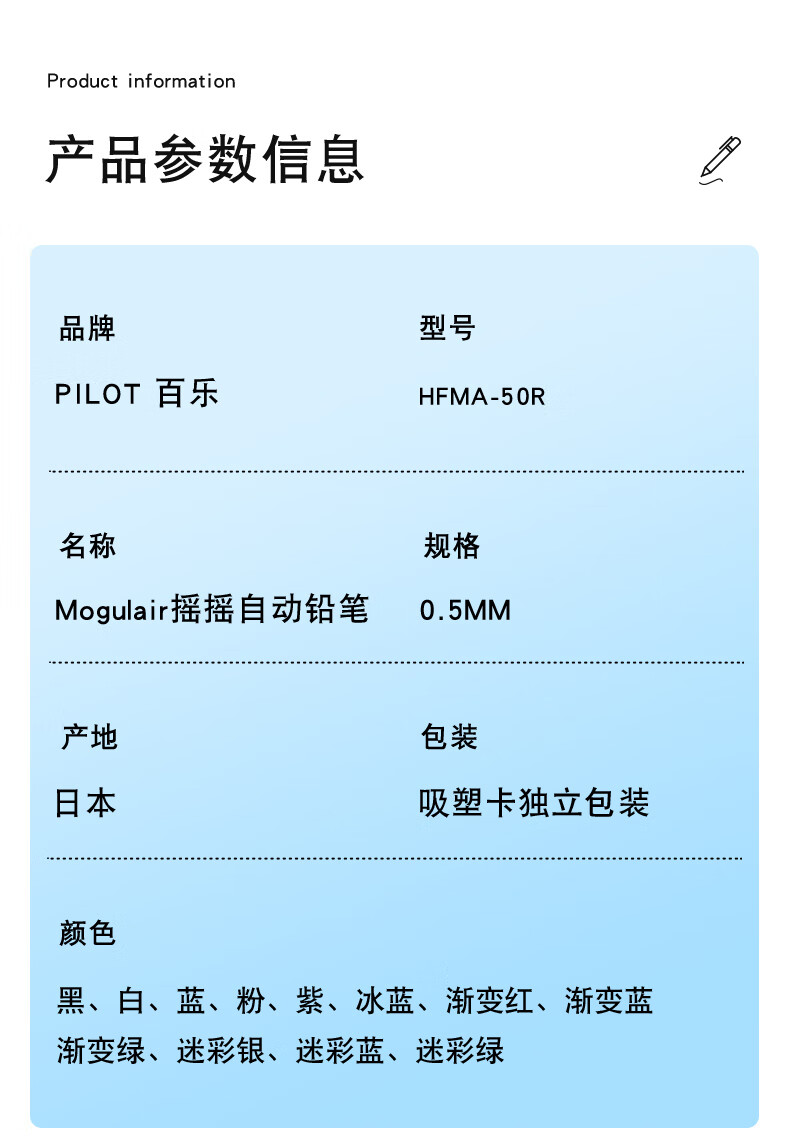百乐(PILOT)摇摇自动铅笔小学生幼儿园专用笔儿童初学者文具素描笔HFMA-50R-LGL原装进口 0.5mm渐变蓝