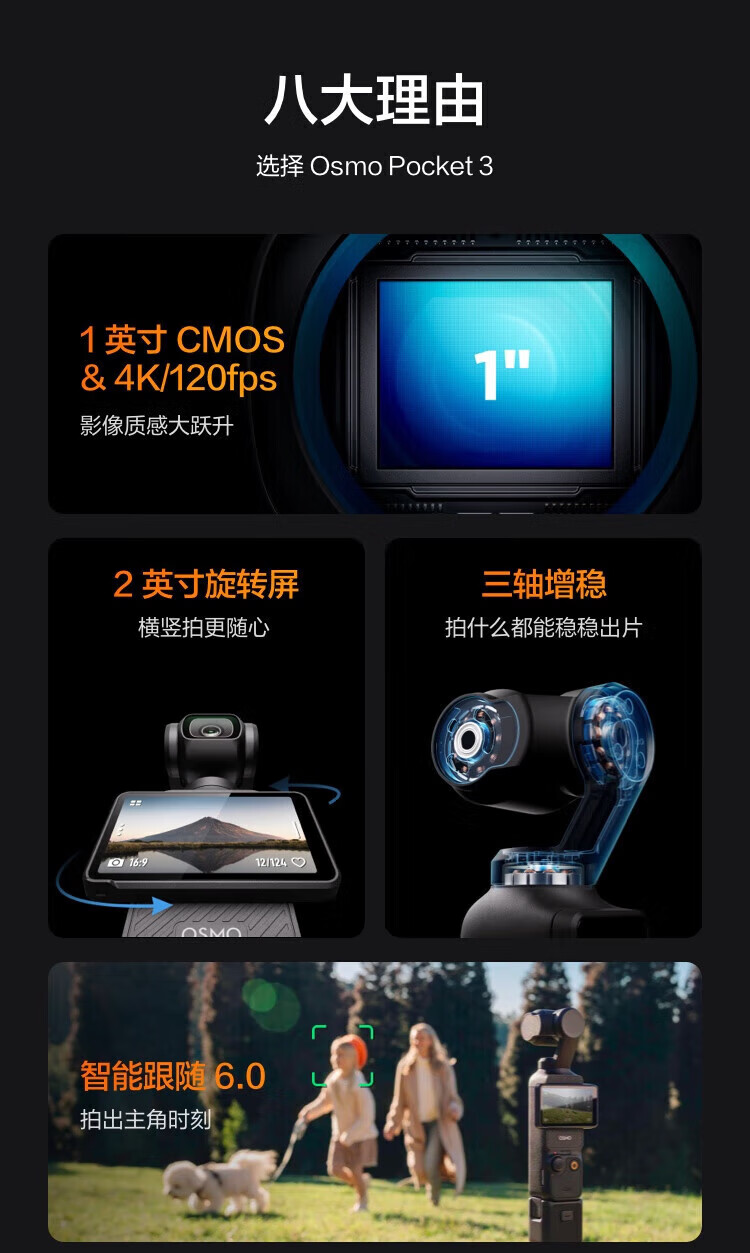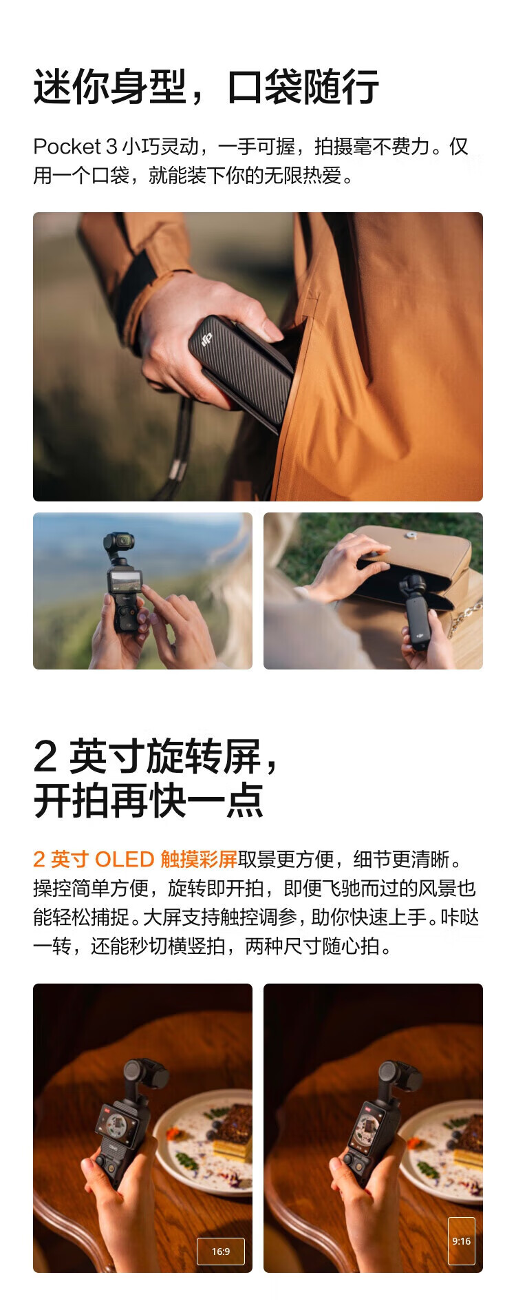 大疆(DJI)Pocket3 灵眸口袋云台相机 户外旅行手持 旅游Vlog运动相机 激活后发 Pocket3【标准版】 官方标配