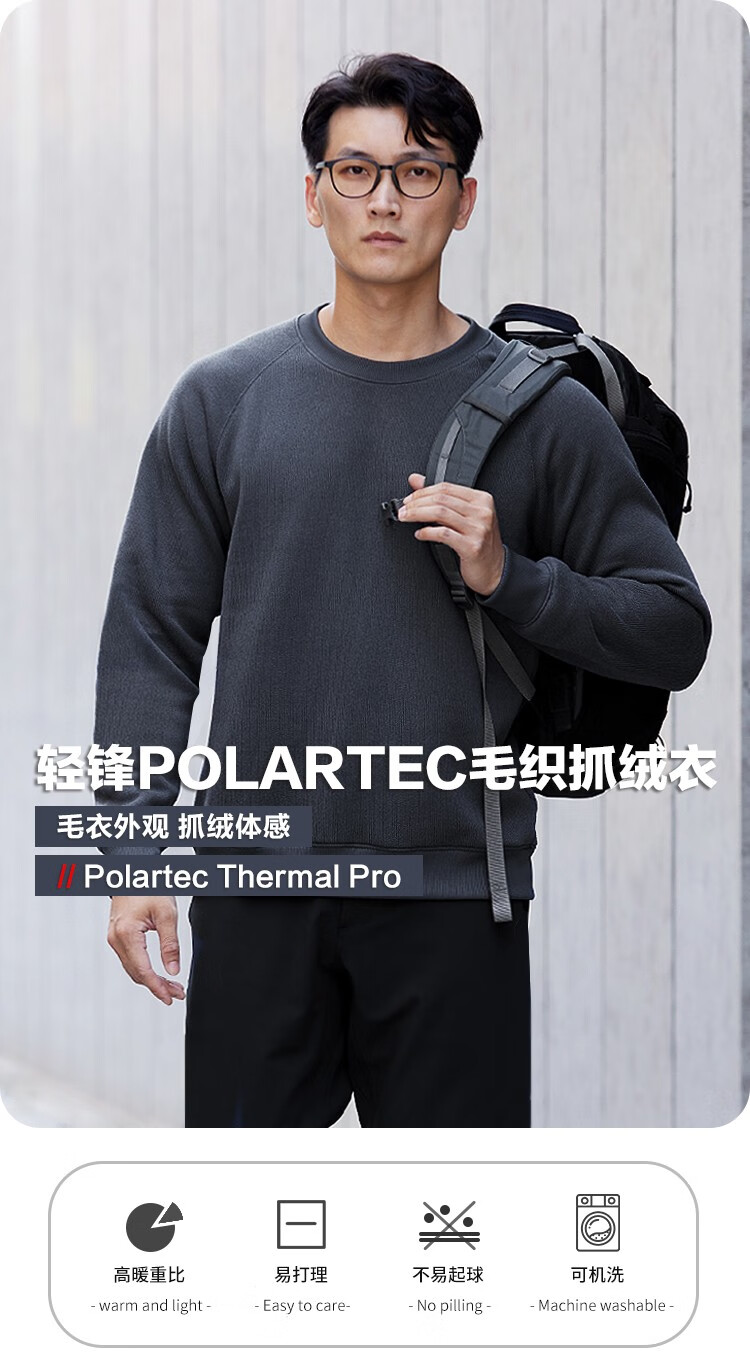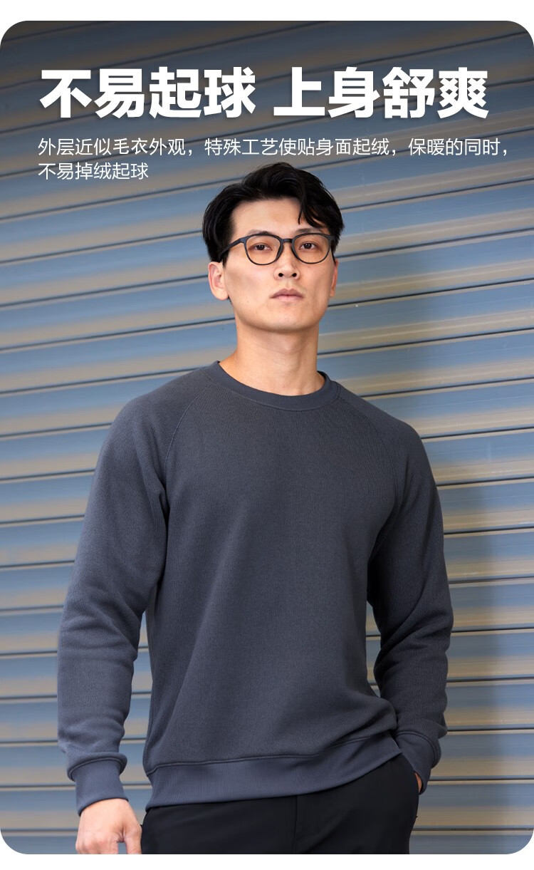 SANFO PLUS三夫户外抓绒衣轻锋毛织圆领毛衣轻便保暖男秋冬户外运动卫衣 深海蓝 L