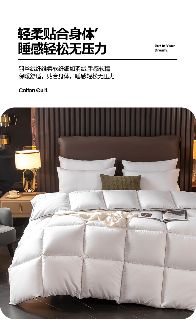 恒源祥希尔顿正品羽丝绒被白鹅丝绒被子被芯五星级酒店春秋被加厚冬被 雪山白 200*230cm/【8斤冬被】