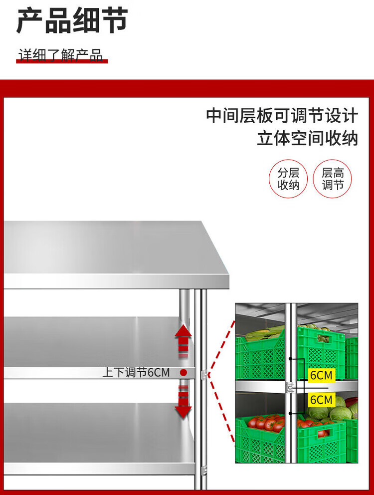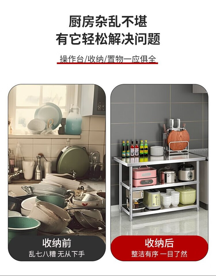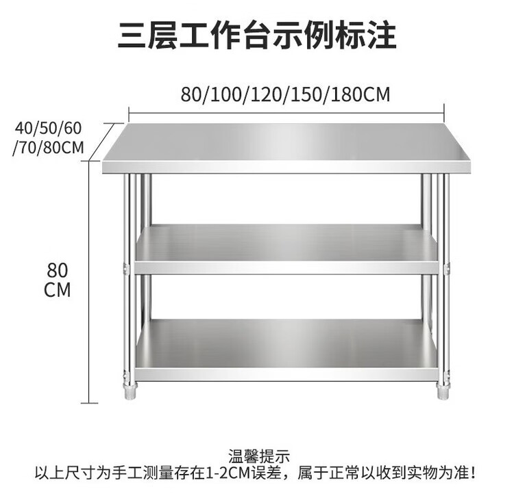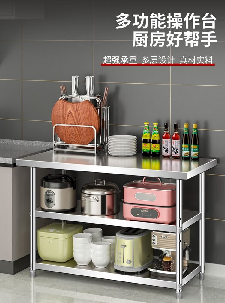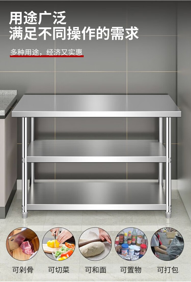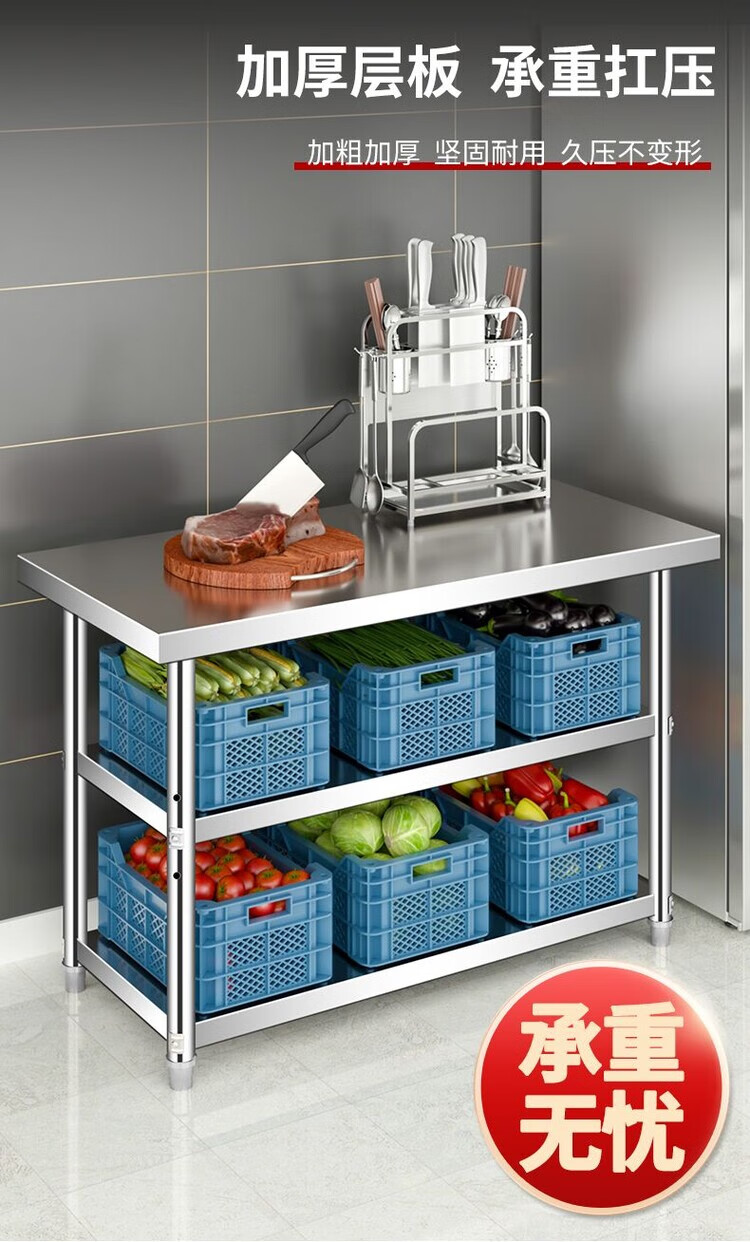 简漾304不锈钢工作台厨房灶台架子商用操作台桌子饭店置物架台面案板 80高二层操作台 长70宽40
