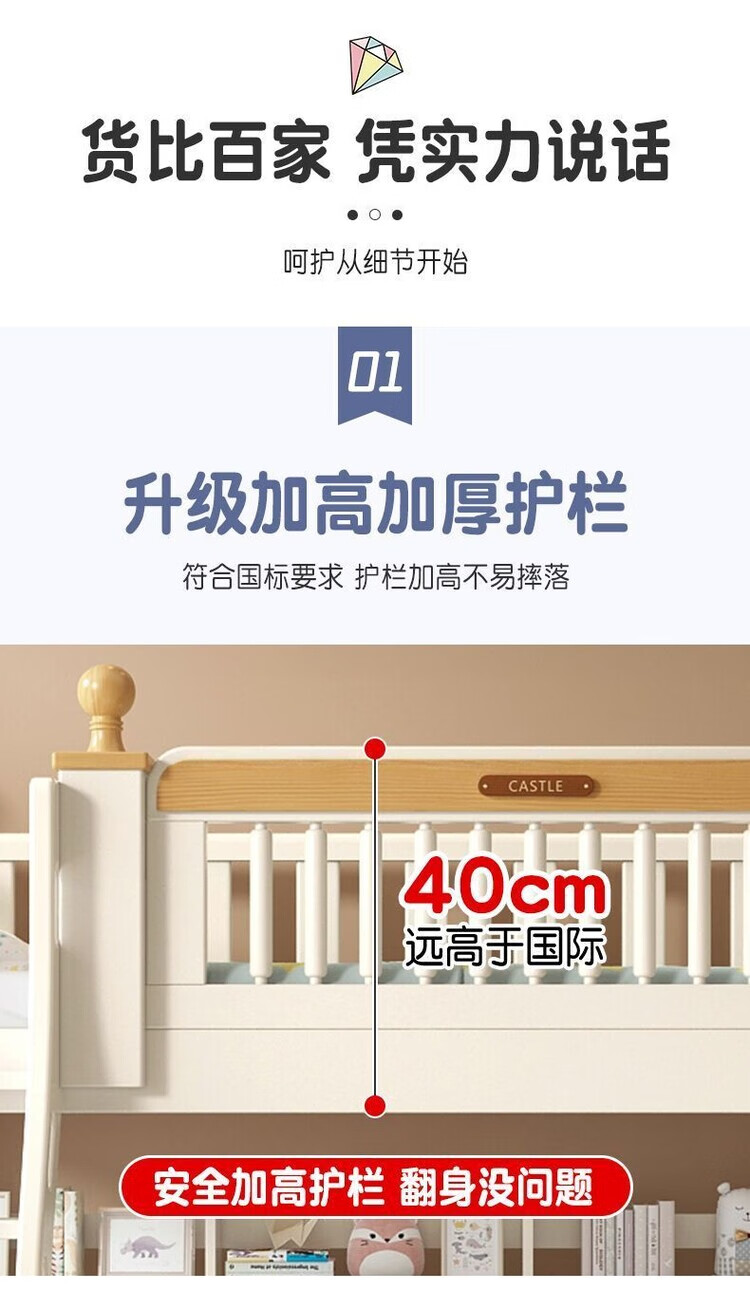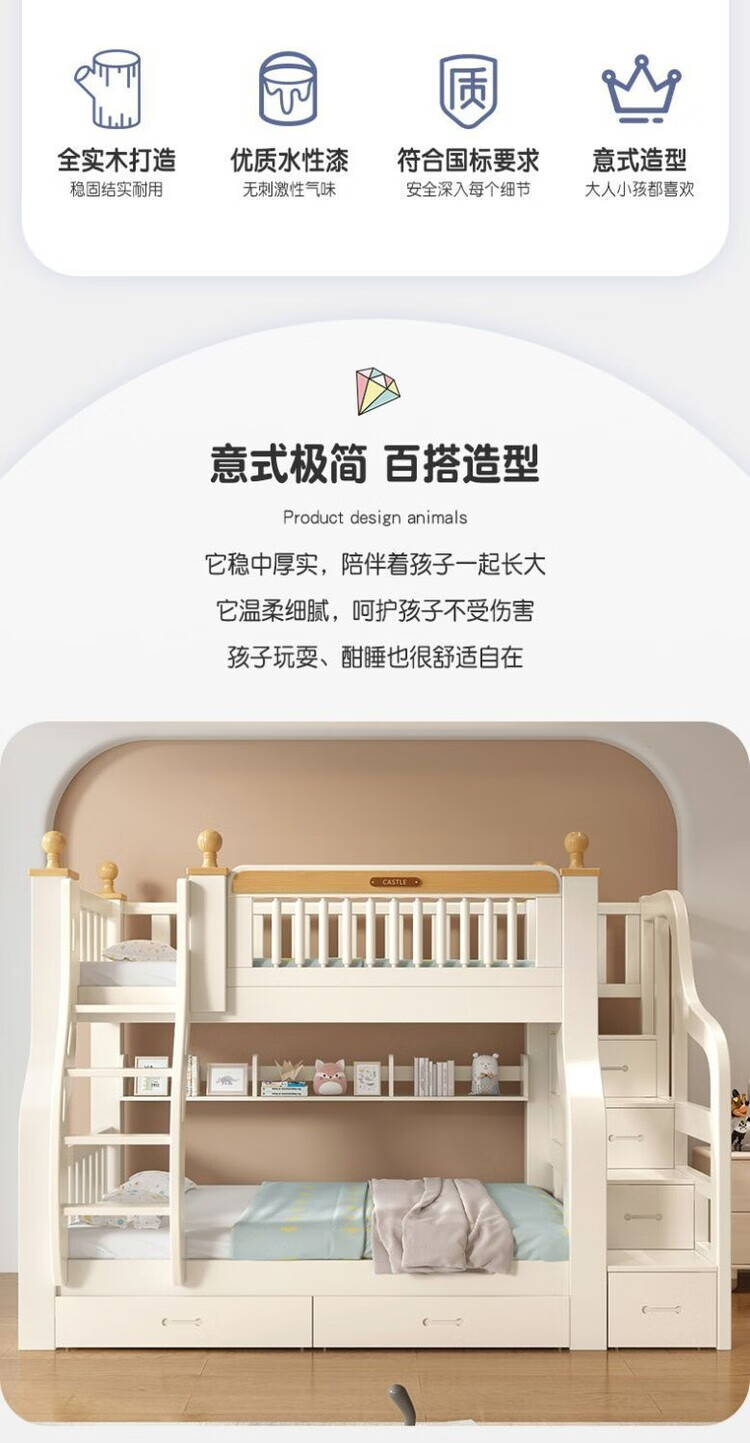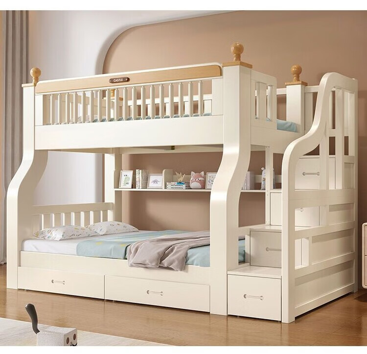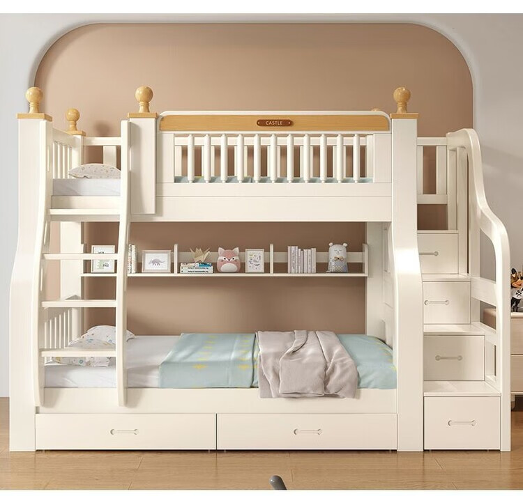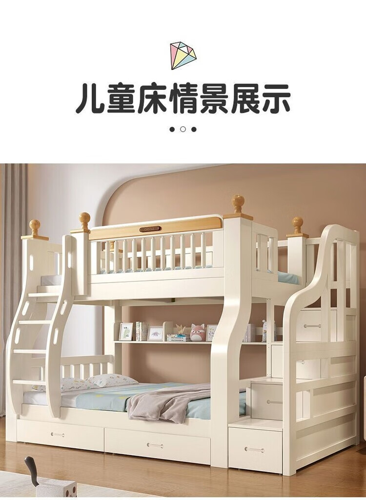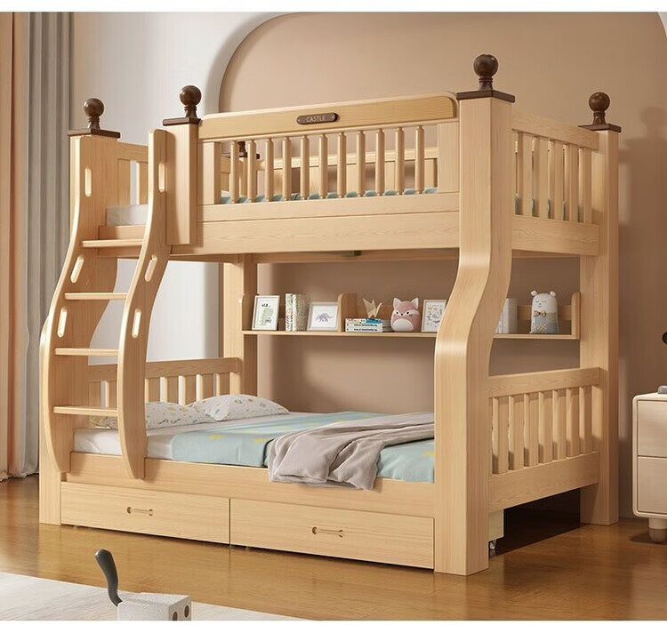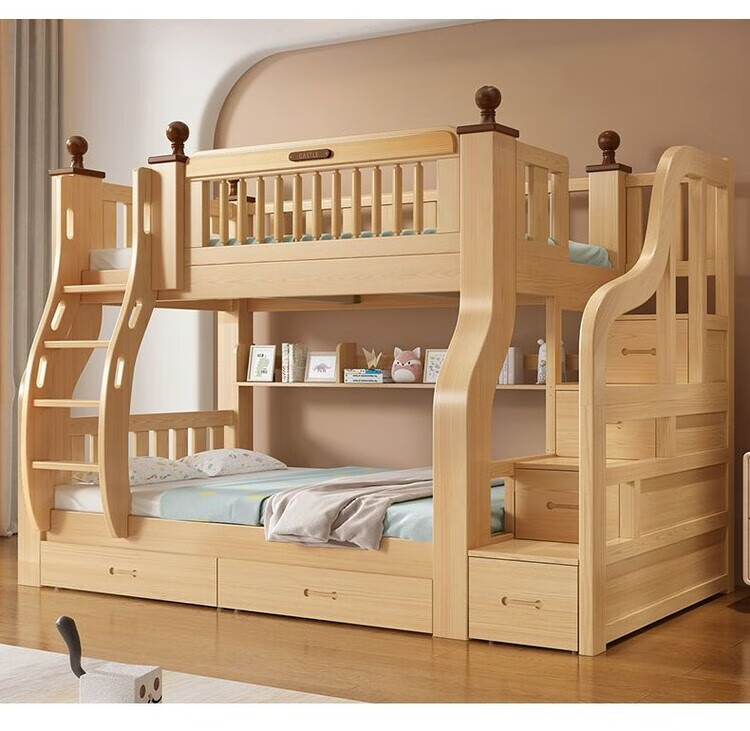 倘然之家上下床双层床实木床上下铺高低床多功能组合儿童床两层子母床木床 【25原木新款】 爬梯+书架 门店品质/上铺宽100cm+下铺宽120cm