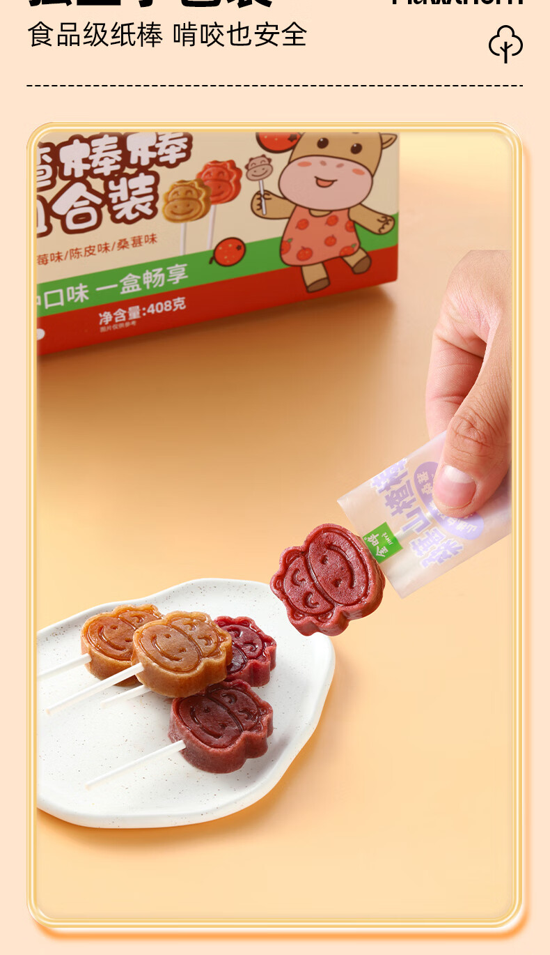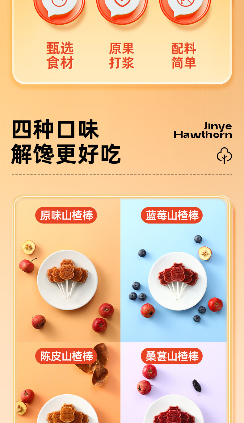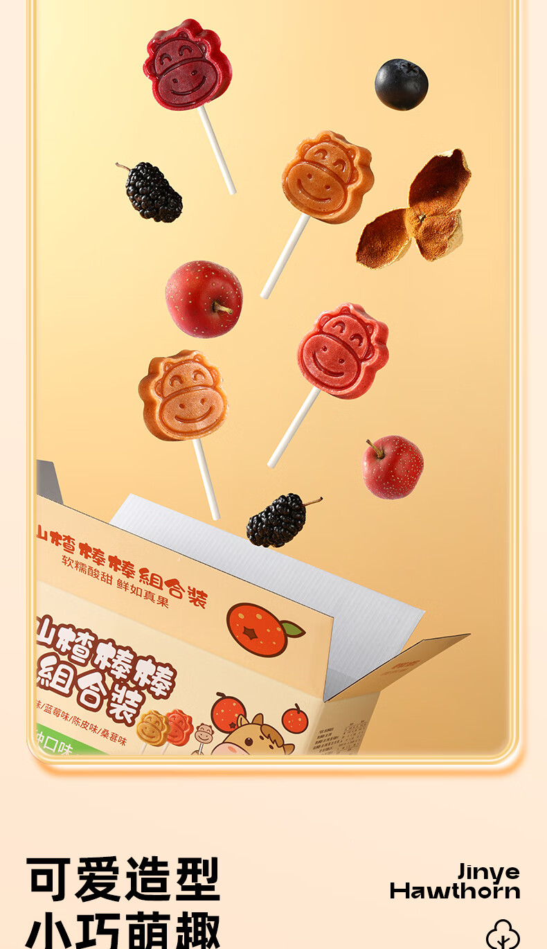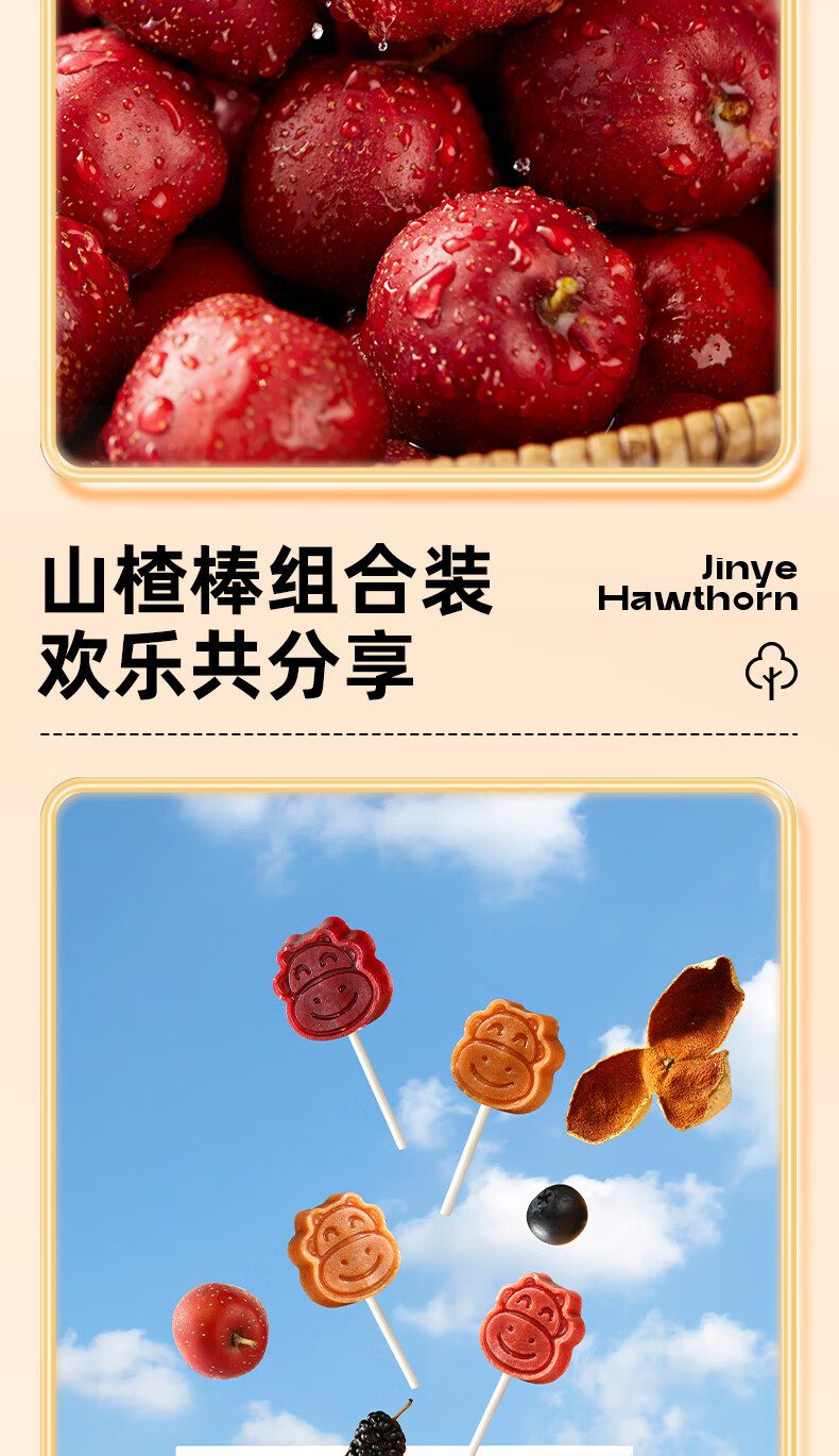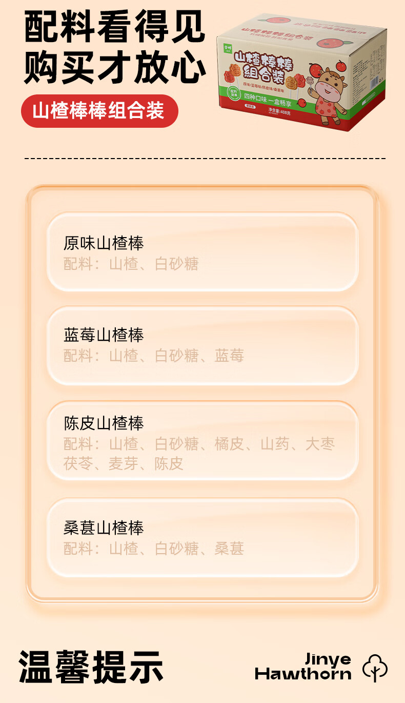 金晔山楂棒棒糖4种口味40支盒装无添加剂水果棒果干果脯蜜饯儿童零食 混合4口味山楂棒 408g*1盒