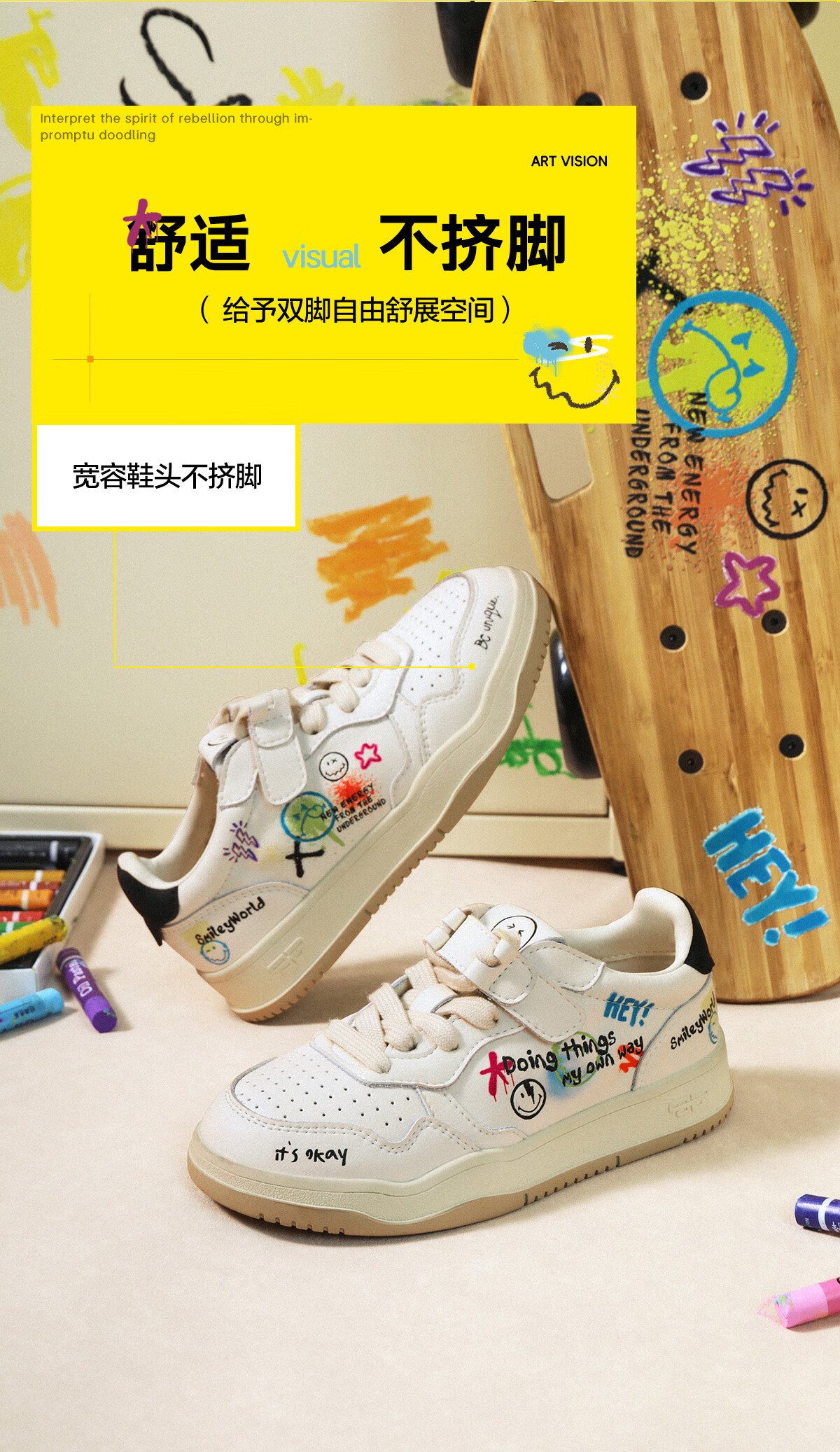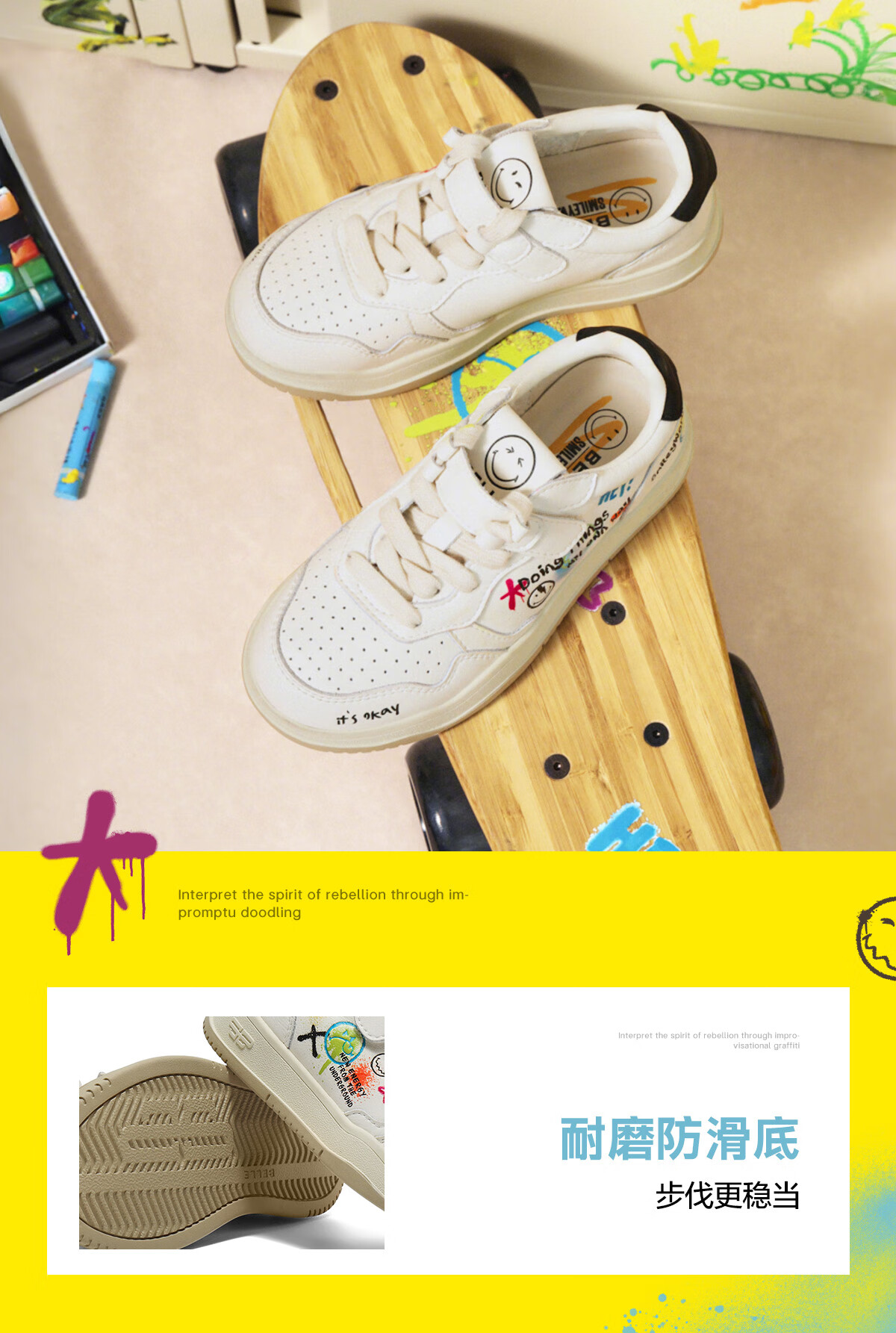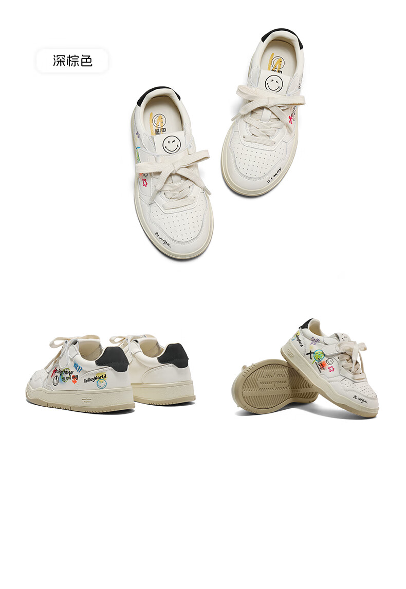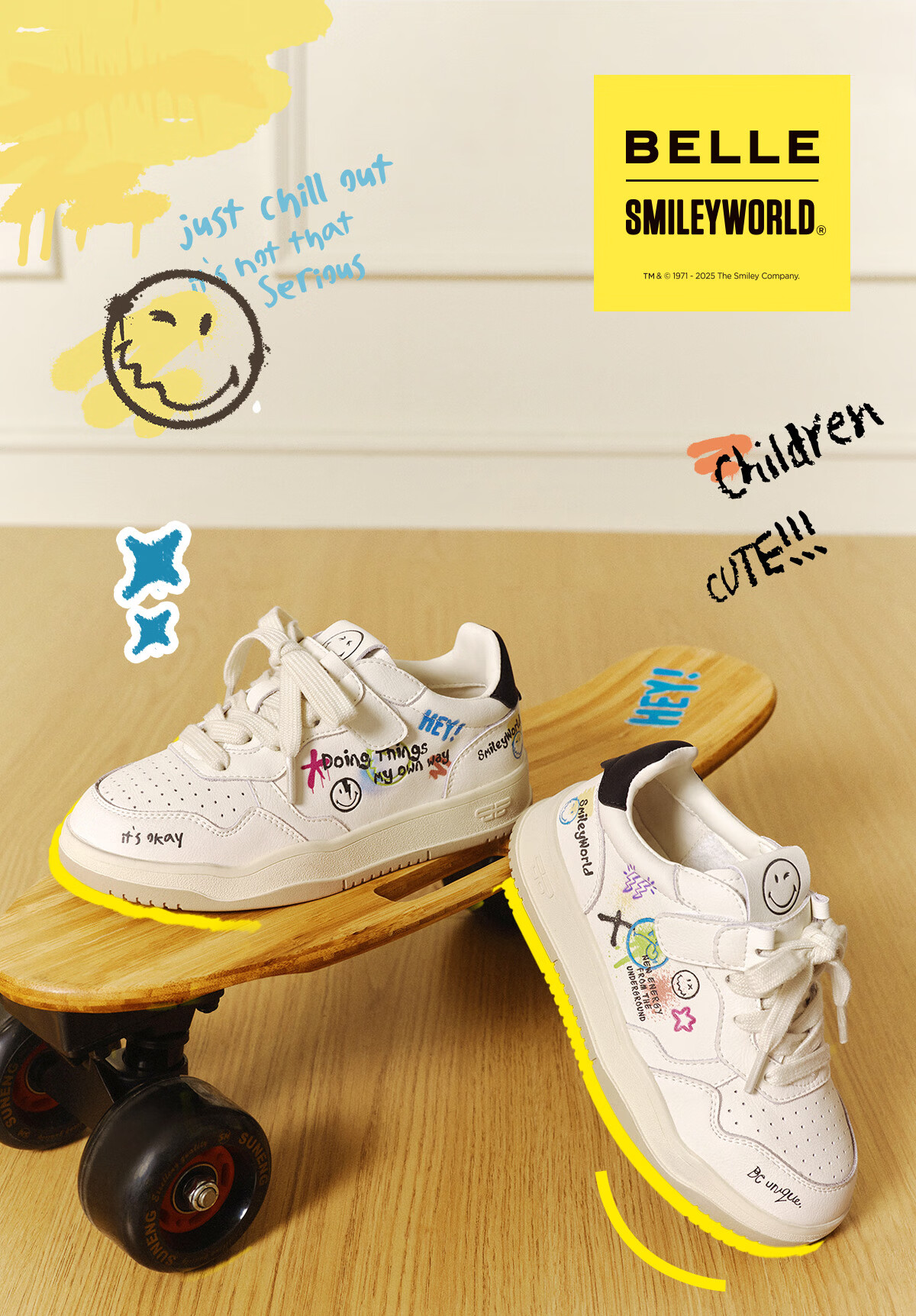 百丽(Belle)SMILEY联名流浪派对涂鸦板鞋女童25秋新商场款休闲鞋61800C85 米色 30