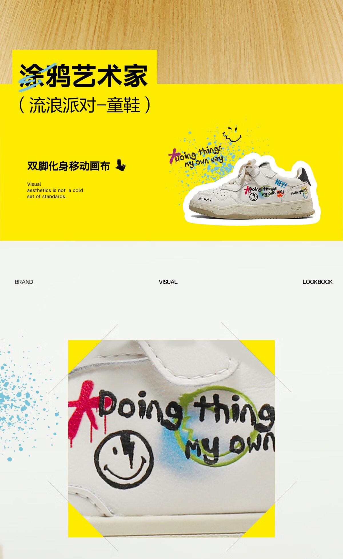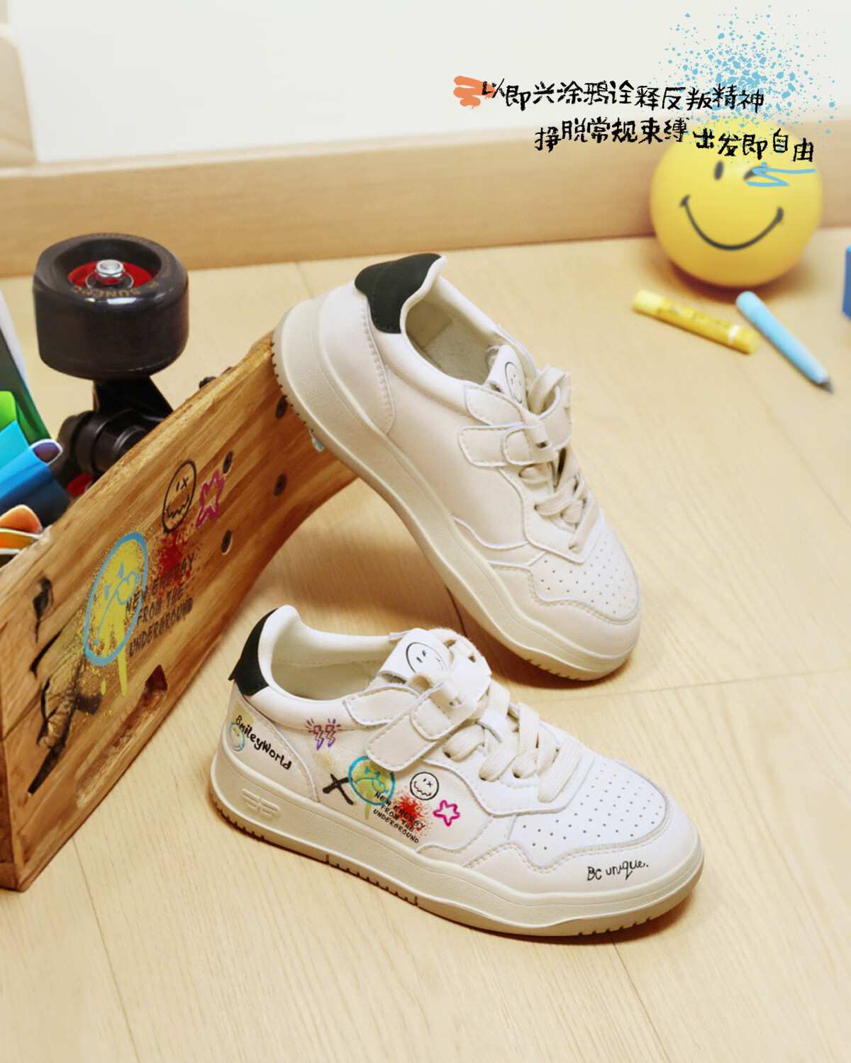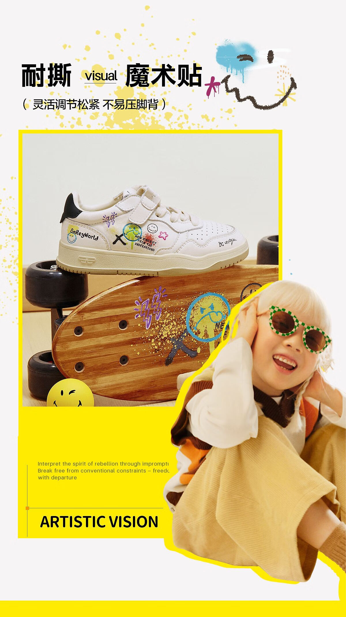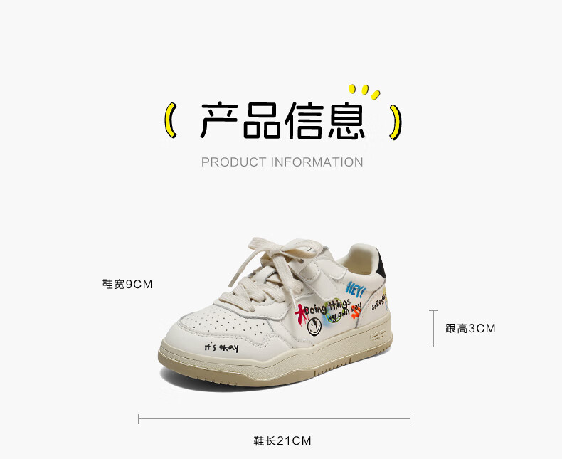 百丽(Belle)SMILEY联名流浪派对涂鸦板鞋女童25秋新商场款休闲鞋61800C85 米色 30