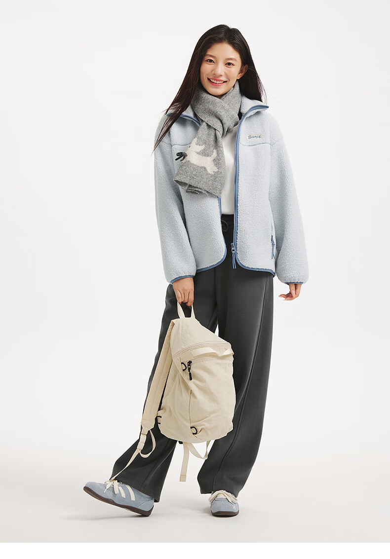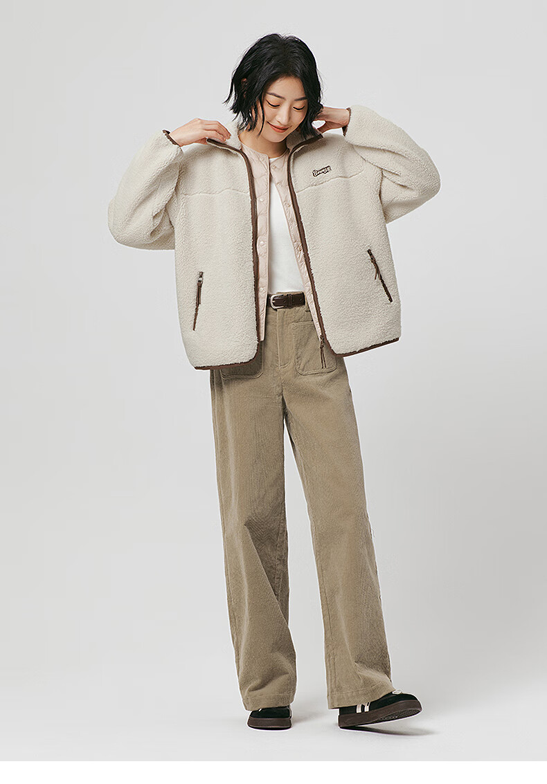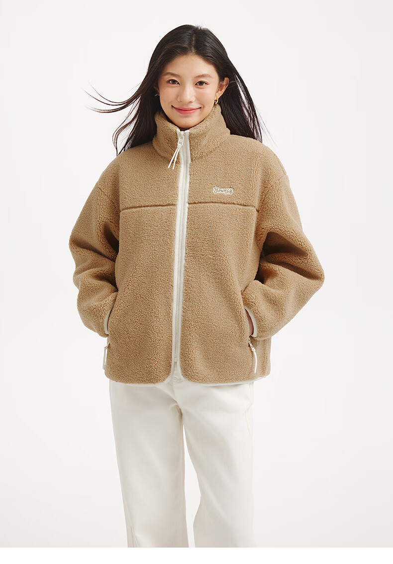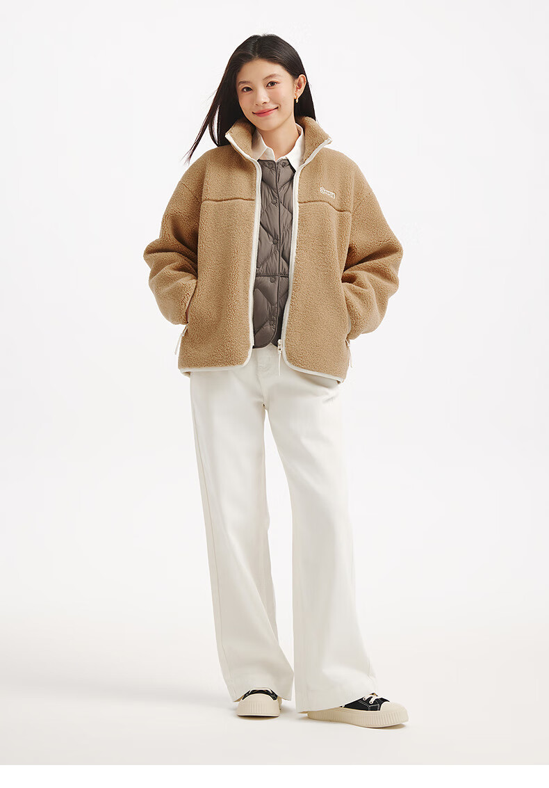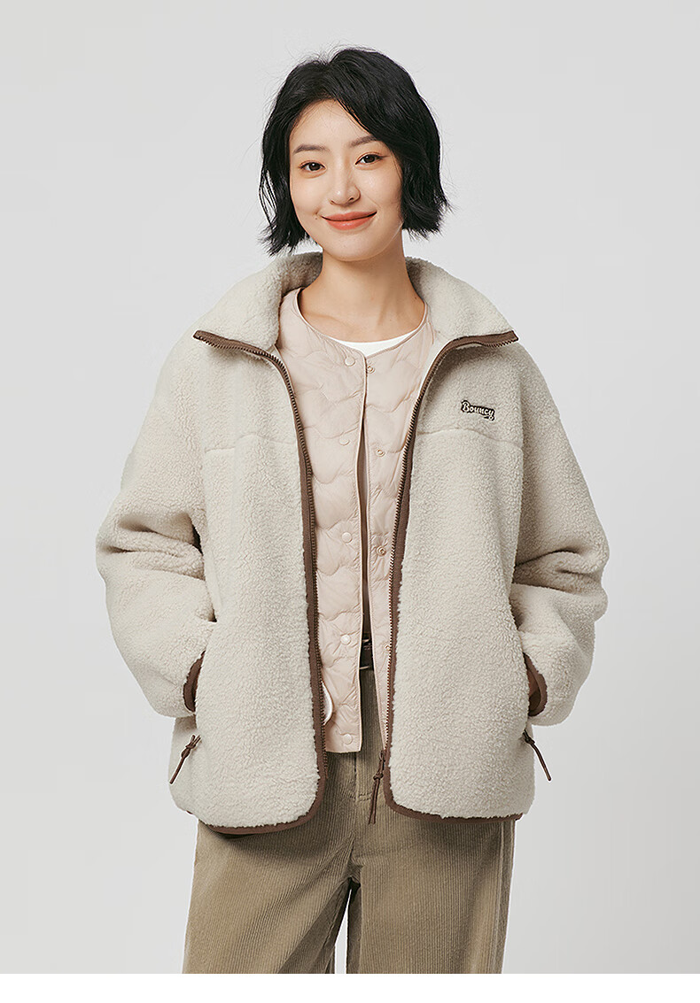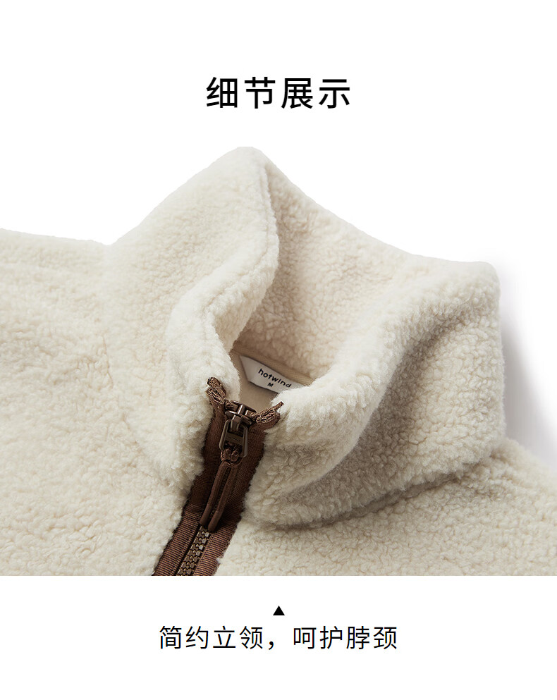 热风(Hotwind)【商场同款】女士夹克仿羊羔毛外套2025年冬季新款立领拉链上衣 03米色 L