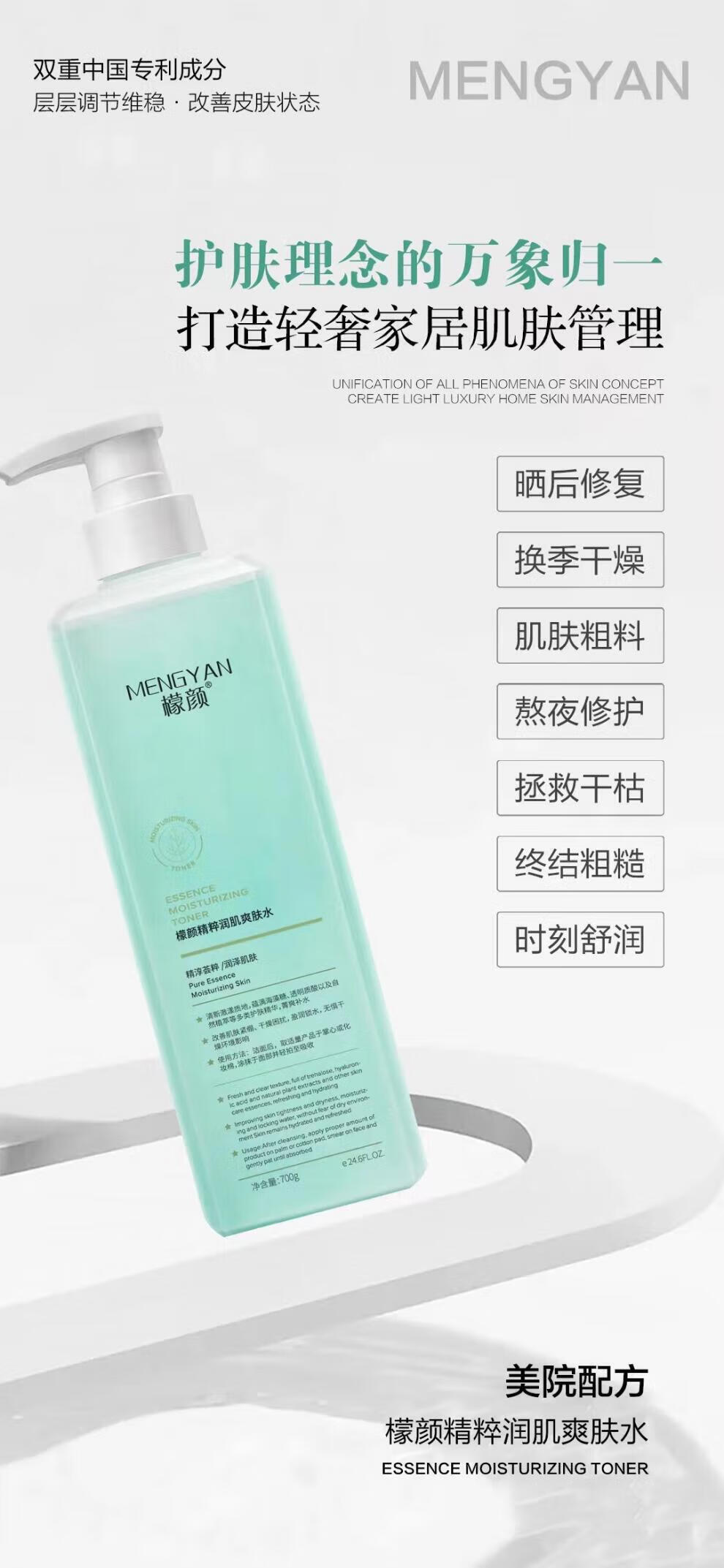 KCHY檬颜湿敷水精粹水提亮肤色红血丝补保湿色控油湿 700g/1瓶