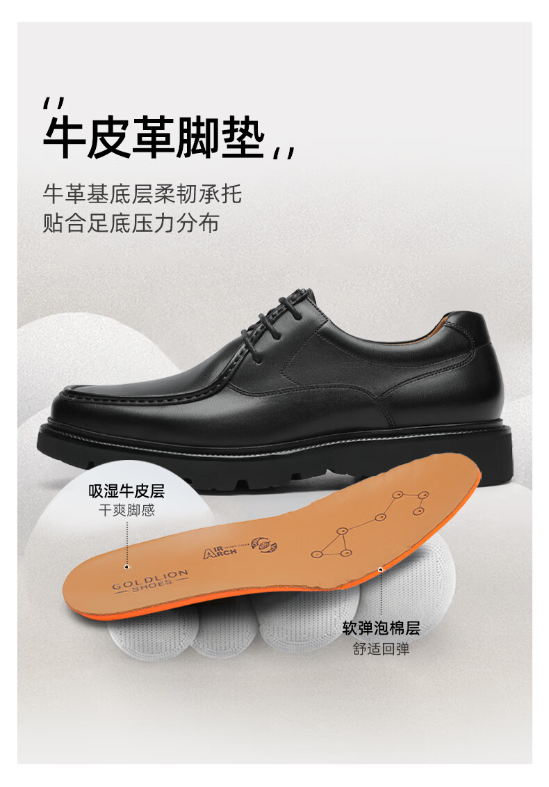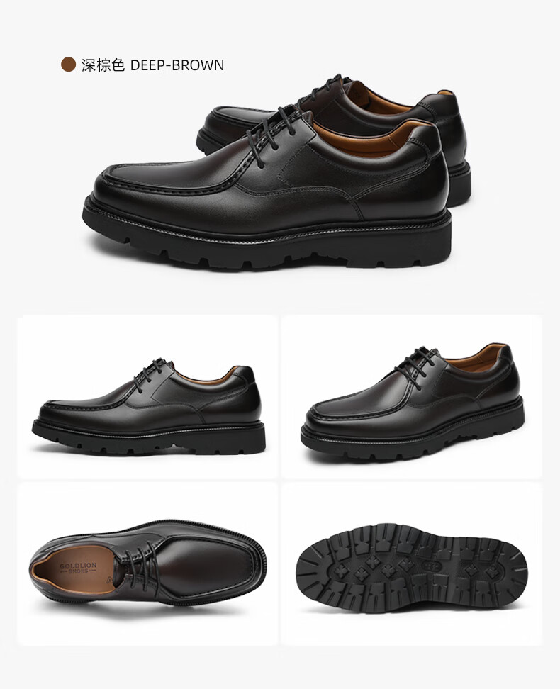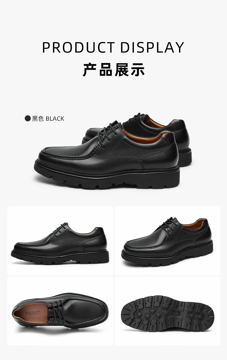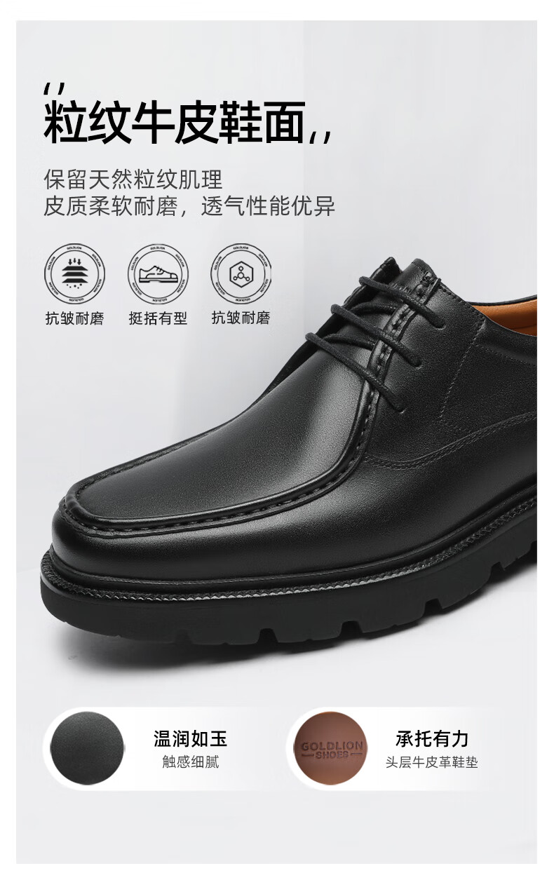 金利来(Goldlion)男鞋商务正装皮鞋轻质耐磨英伦风德比鞋皮鞋男经典休闲皮鞋 黑色 37