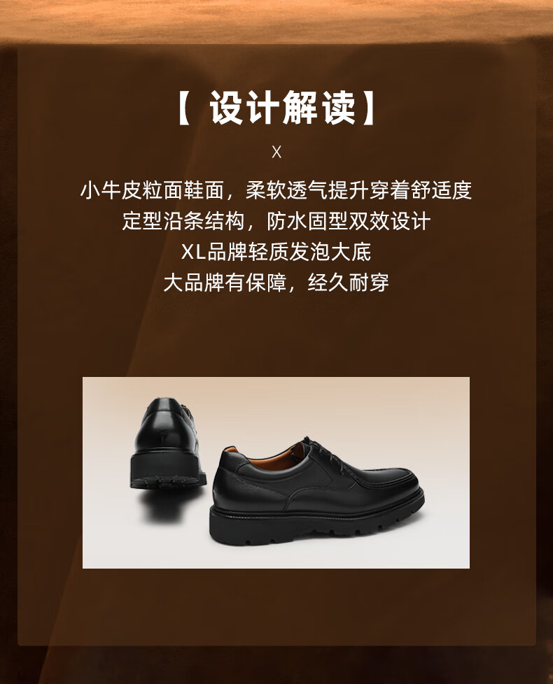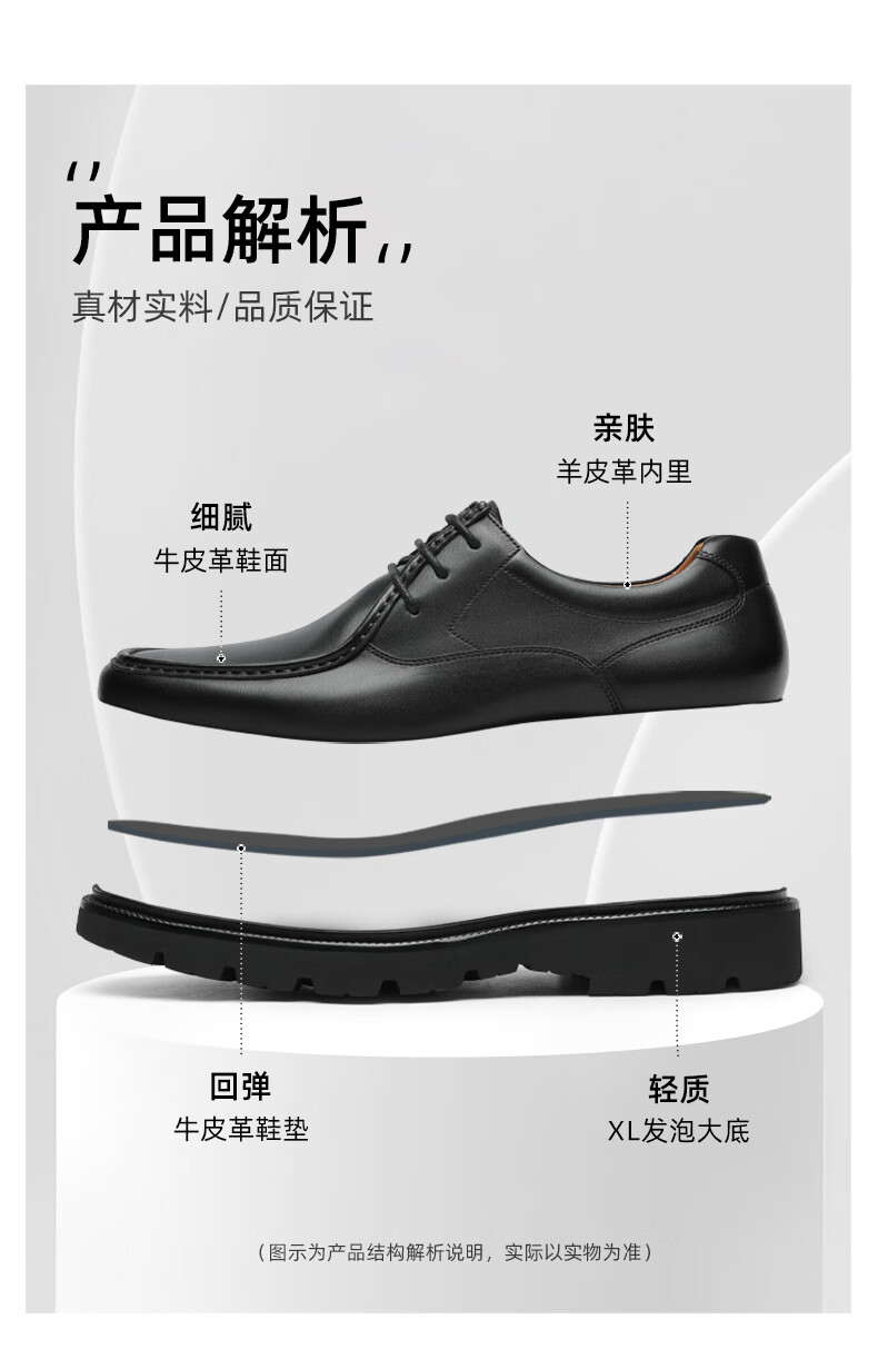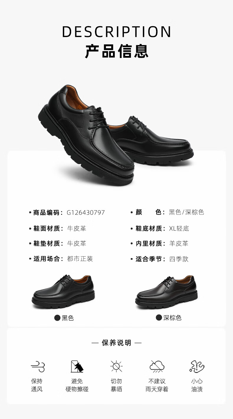 金利来(Goldlion)男鞋商务正装皮鞋轻质耐磨英伦风德比鞋皮鞋男经典休闲皮鞋 黑色 37