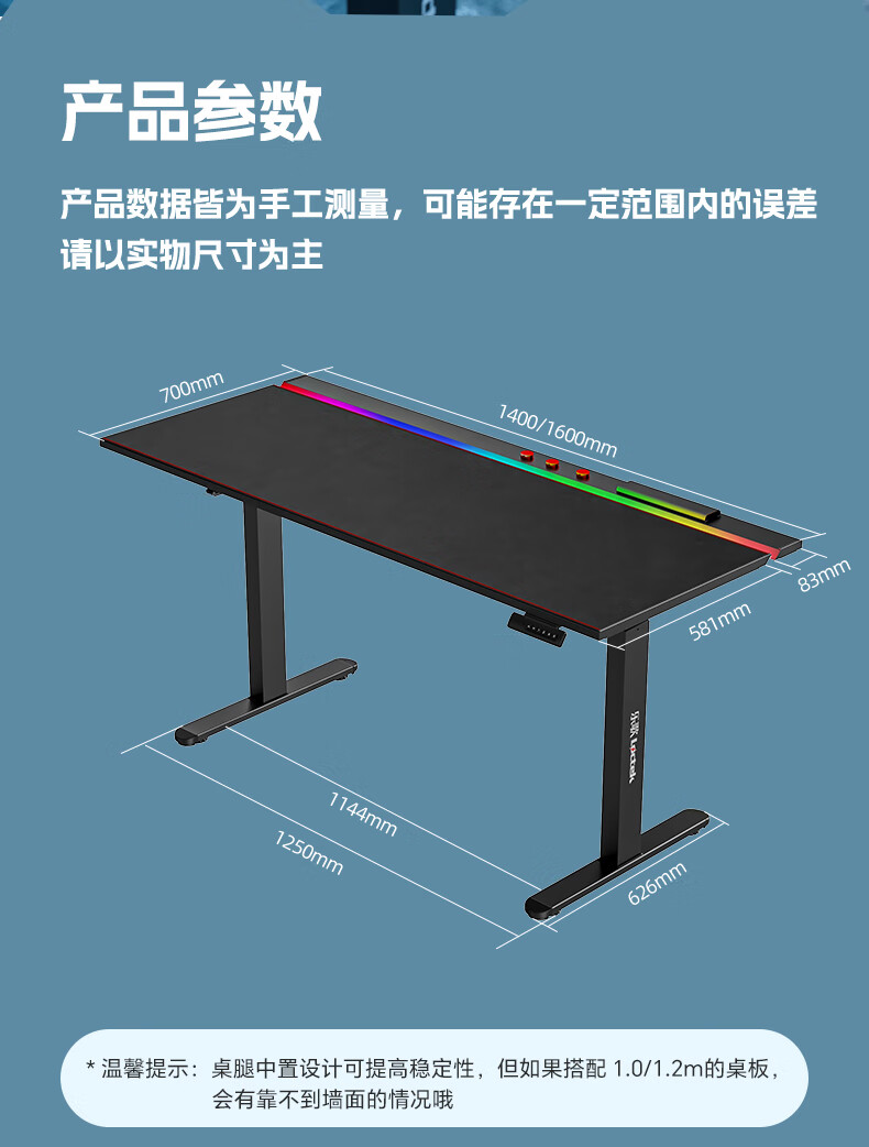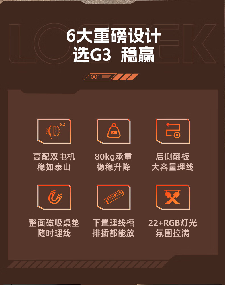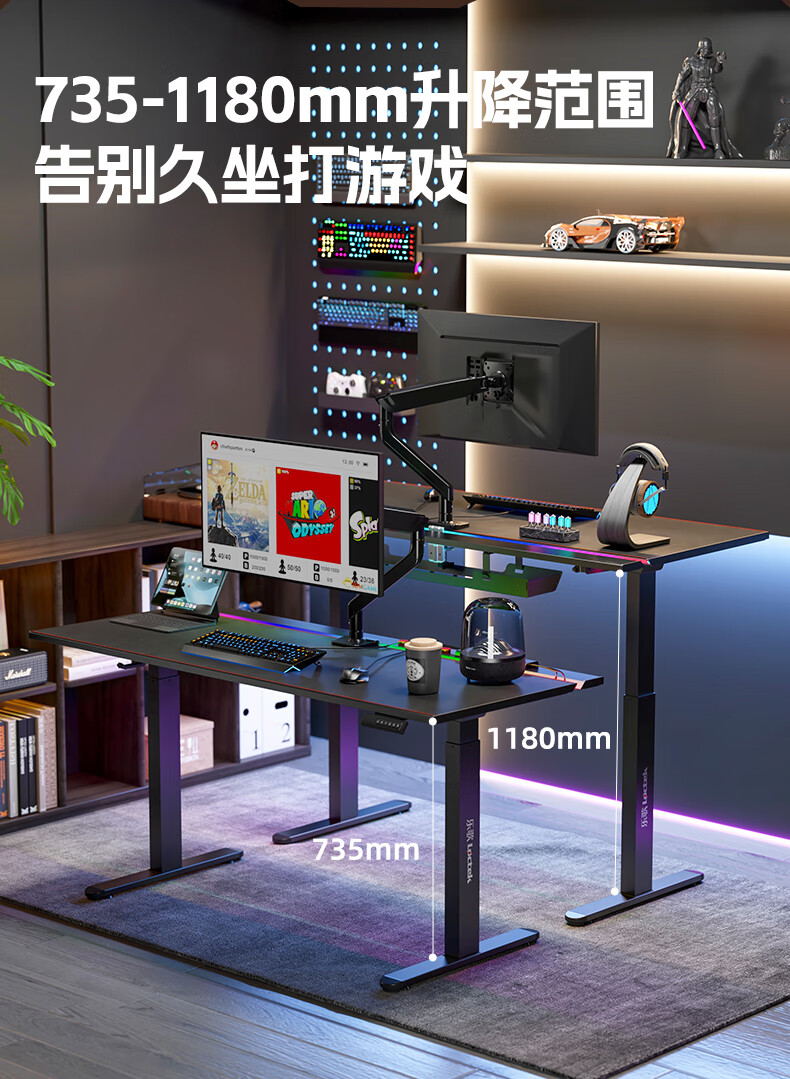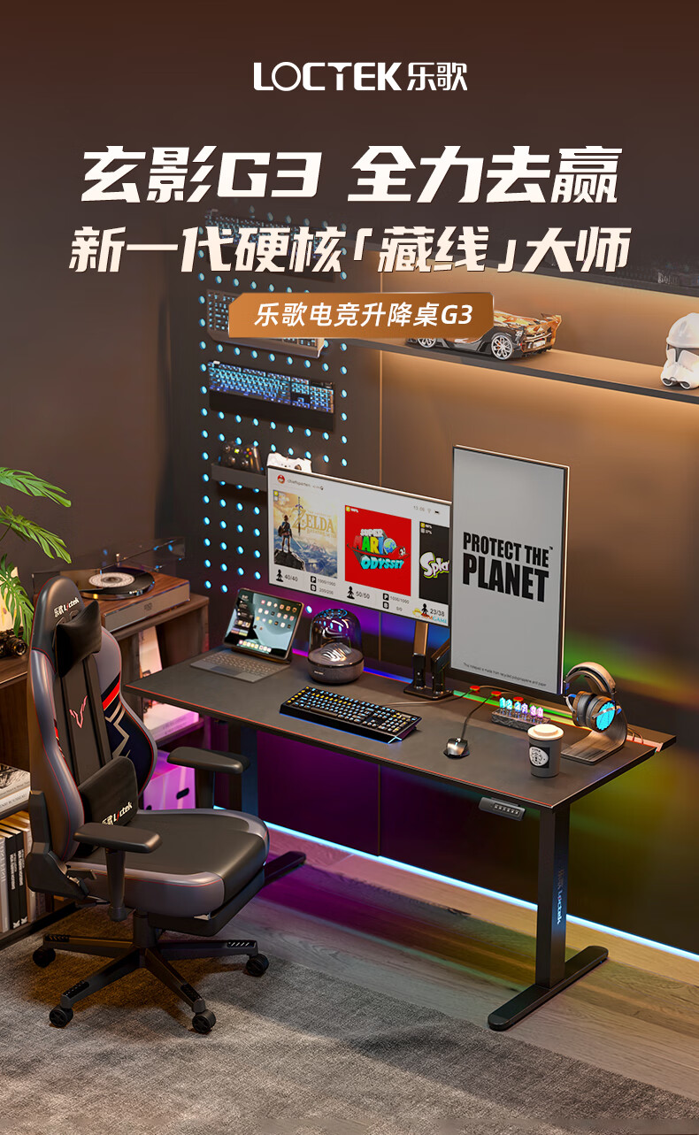 乐歌(Loctek)电竞桌电动升降桌椅套装电脑桌双人游戏桌子办公桌酷炫磁吸电竞房 玄影G3|单桌 1.4M桌板|可磁吸