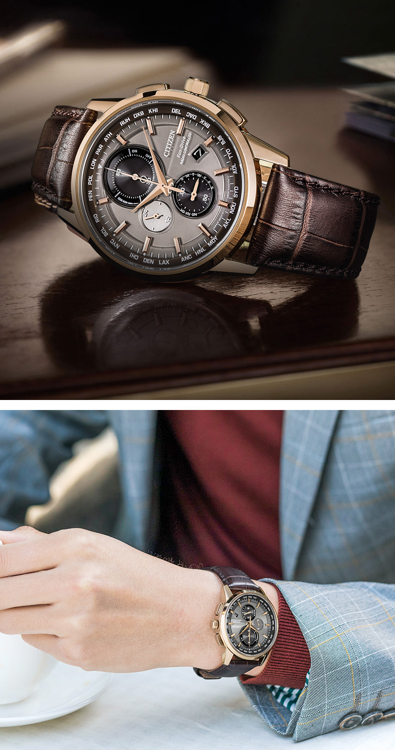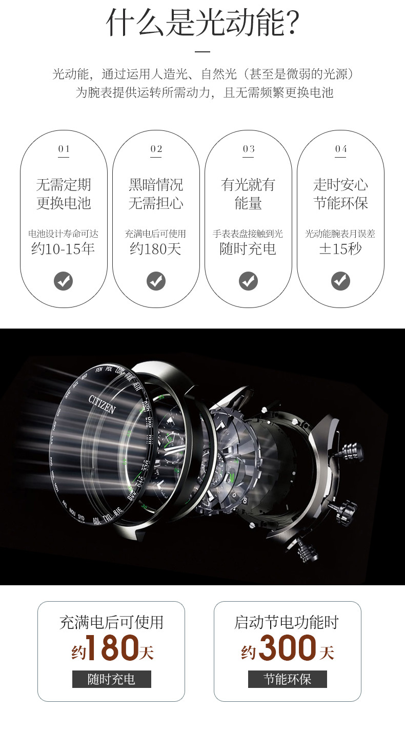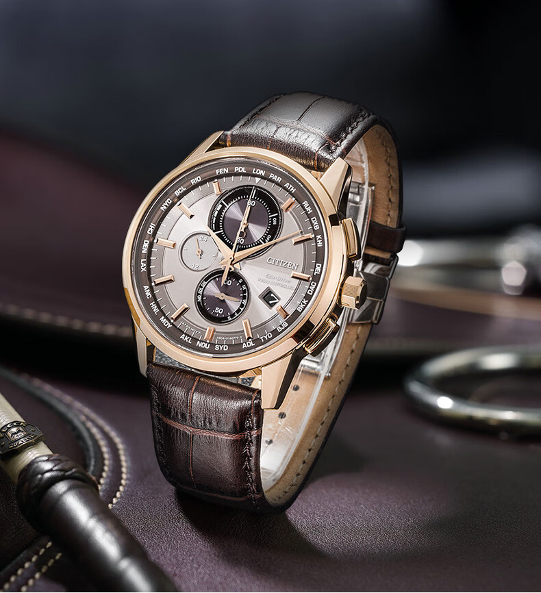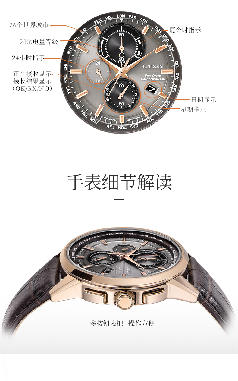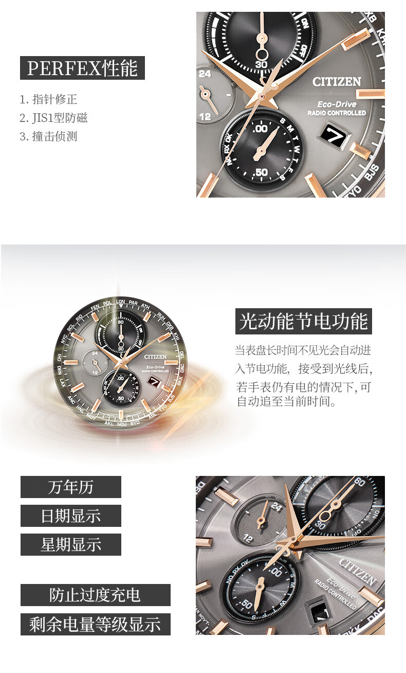 西铁城(CITIZEN)手表男日韩表光动能电波三眼日显皮带商务送礼物男友AT8113-12H