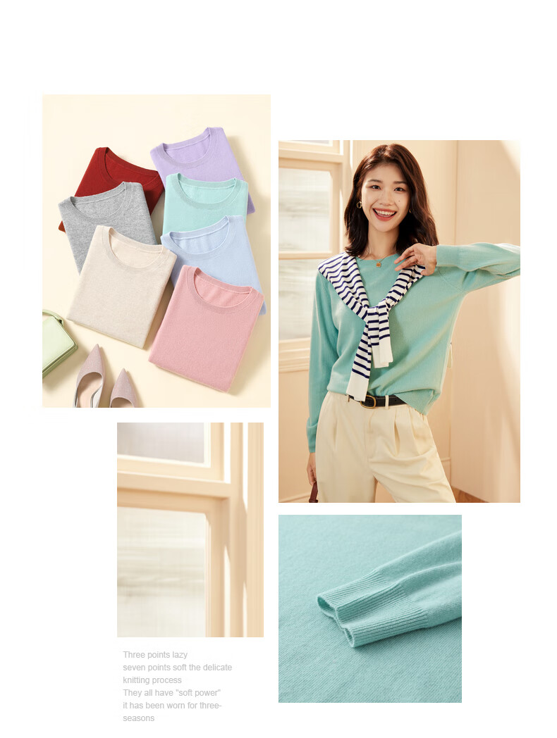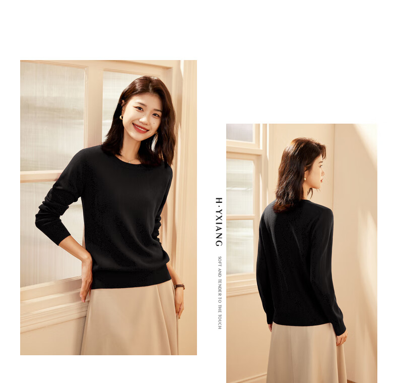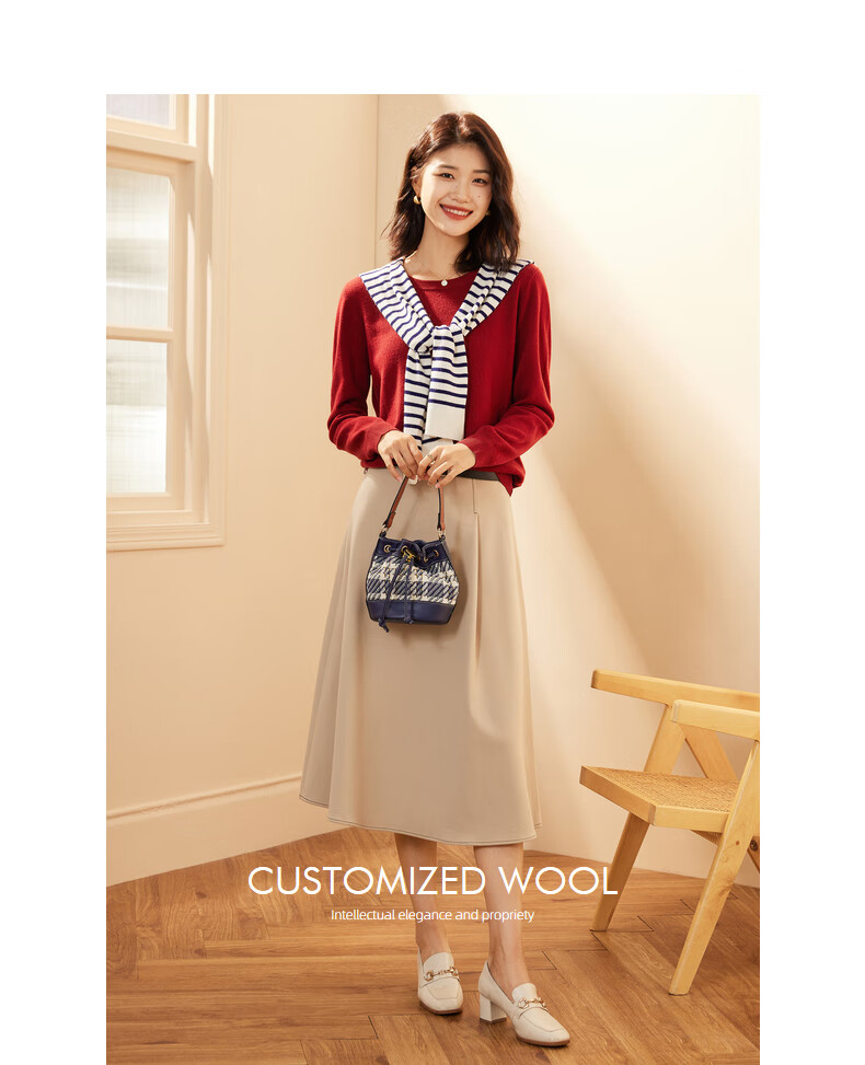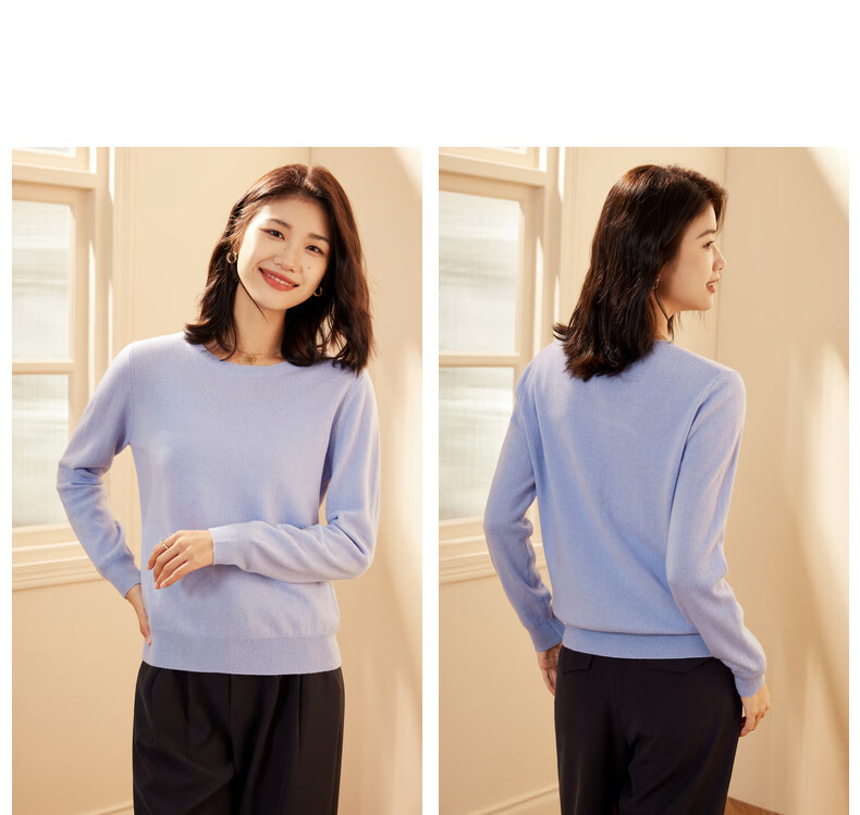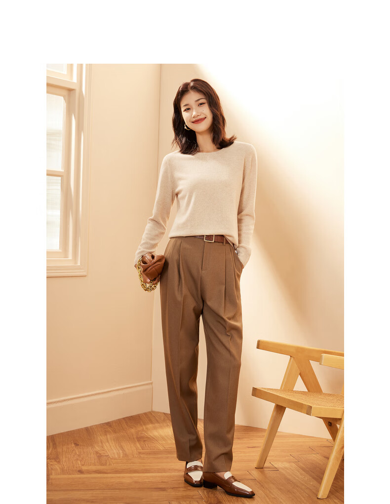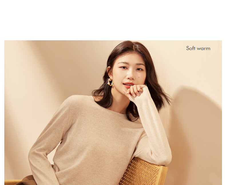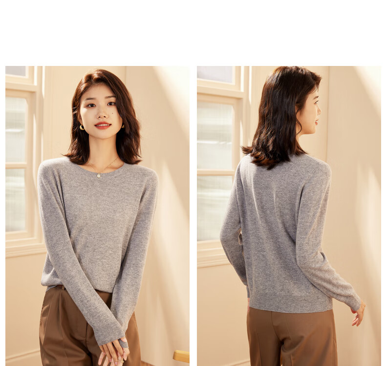 恒源祥基础款圆领纯羊毛衫女打底山毛衣纯色时尚内搭简约套头女士针织衫 米驼 L ( 170/92A)