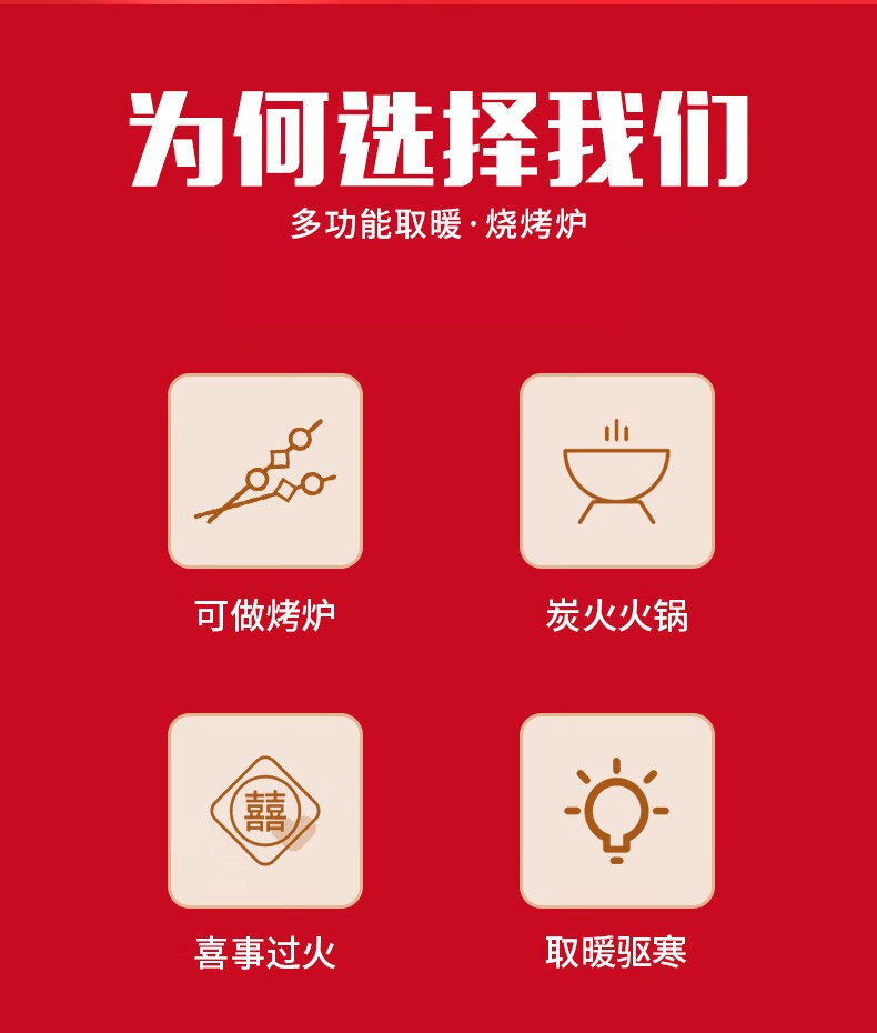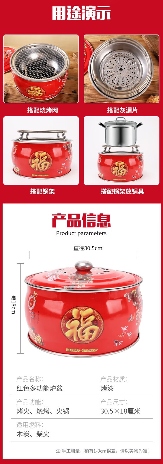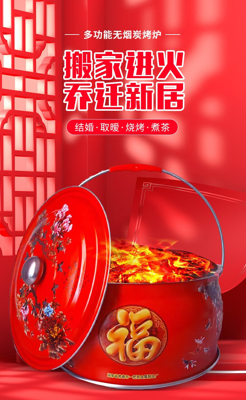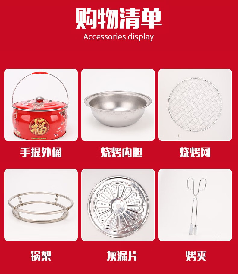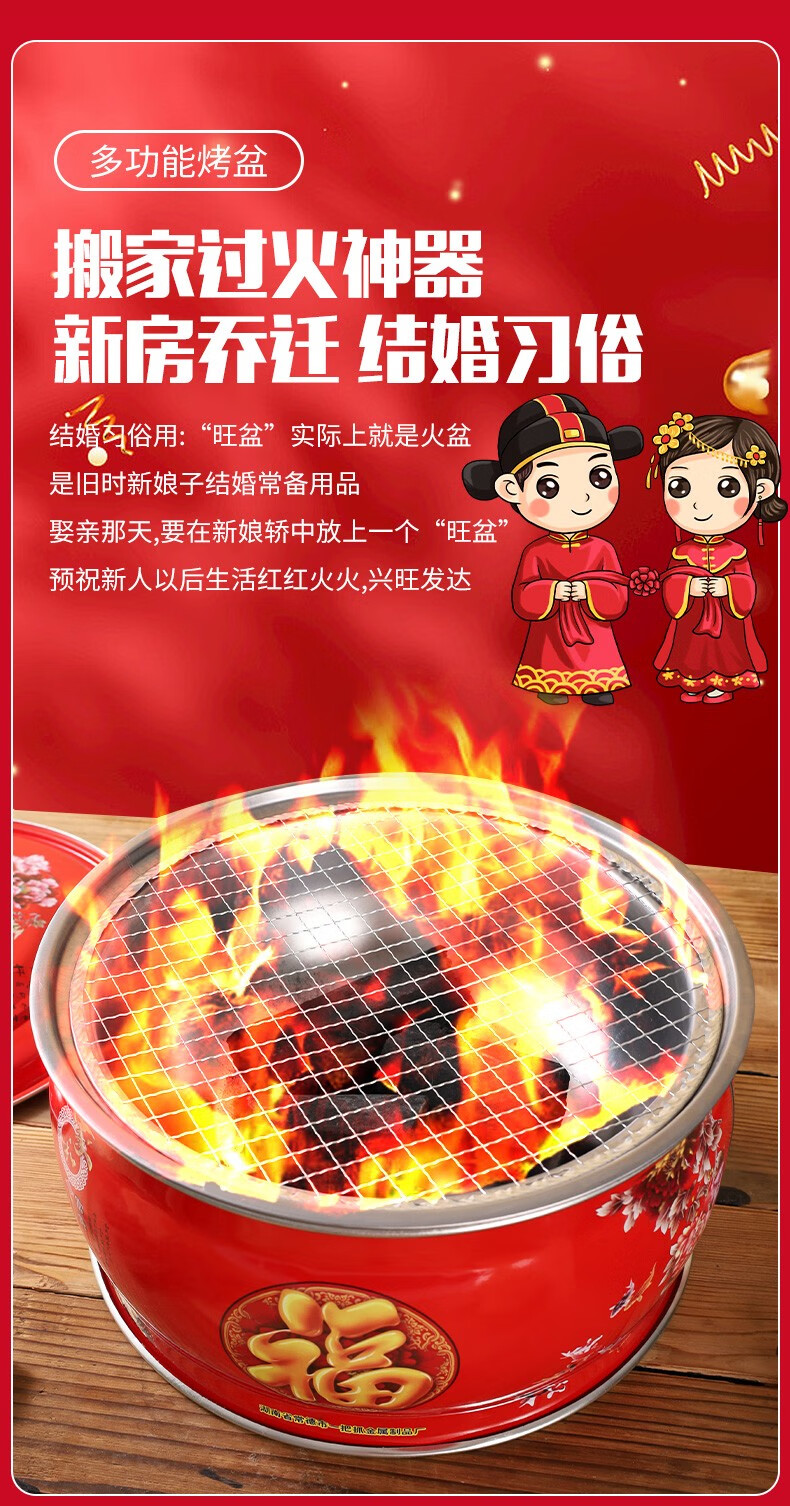 搬家入伙新居乔迁仪式用品过火盆新房进火盆木炭取暖炉碳烤火炉子 福字炉+烤网+炭夹+灰漏+炭+燃料