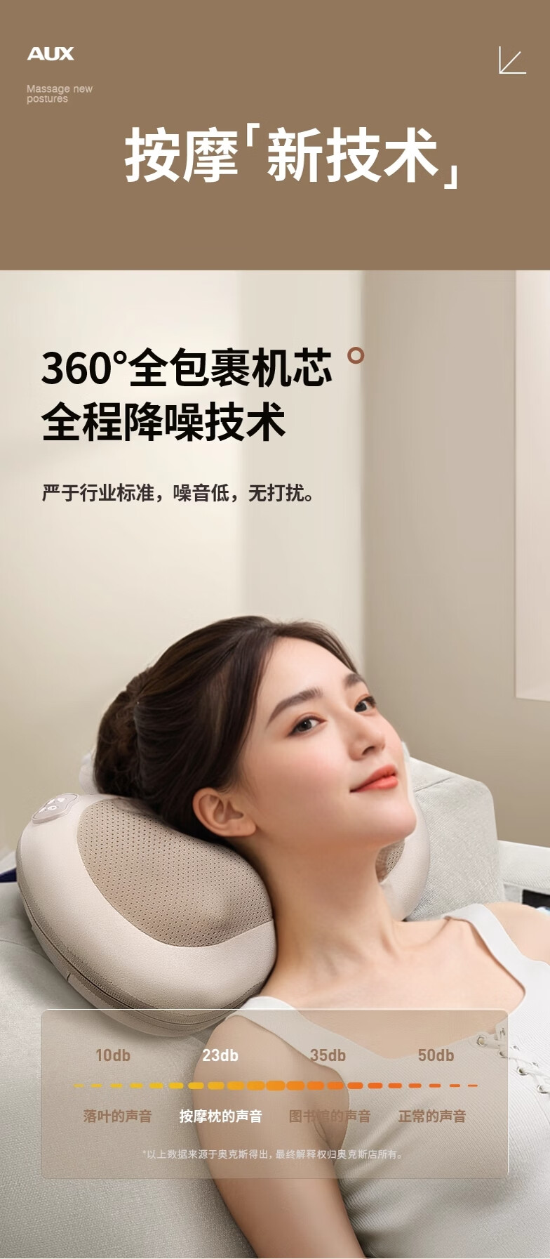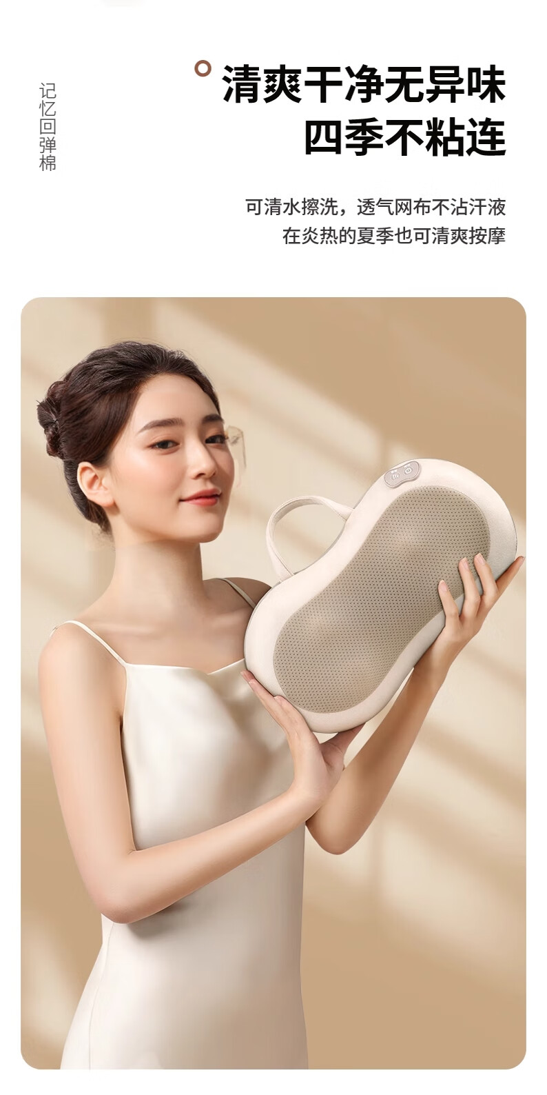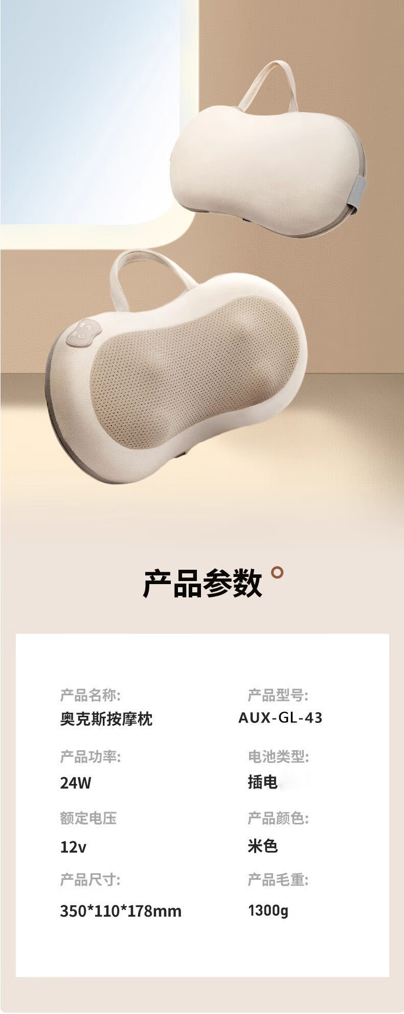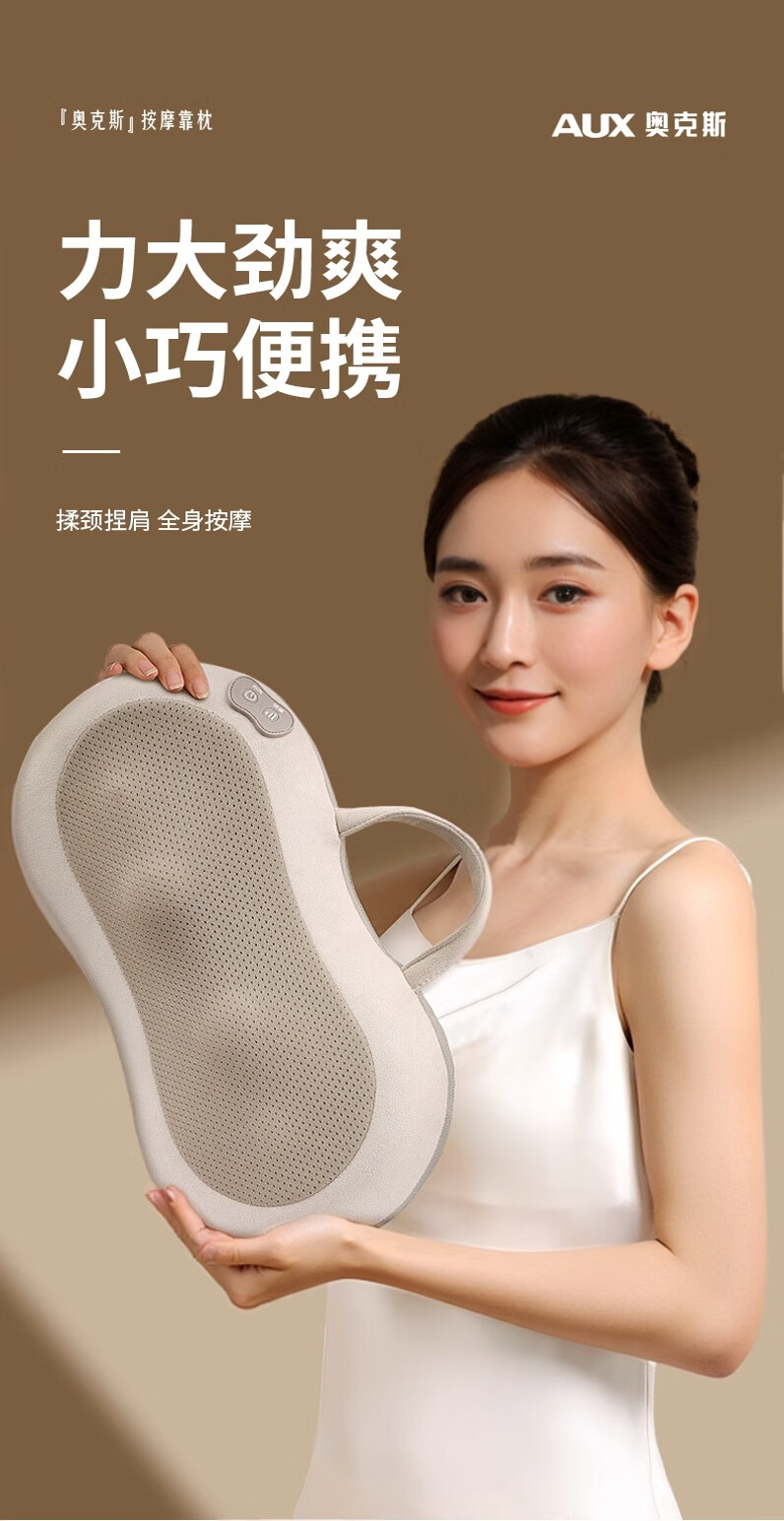 AUX奥克斯颈椎按摩器腰部背部肩膀脖子揉捏仪全身自动家用神器按摩枕头颈部肩颈背多功能按摩枕教师节礼物 小米白插电款【红光热敷+正反旋转仿生按摩】