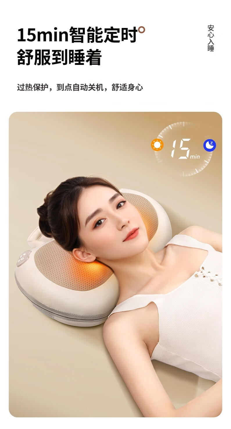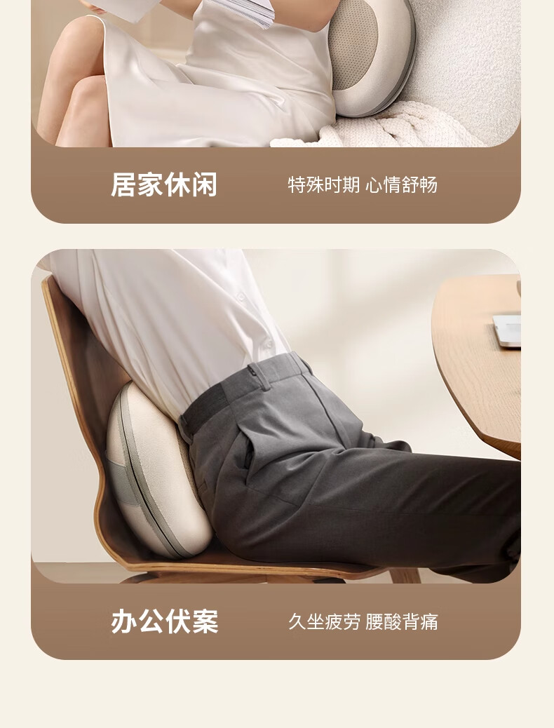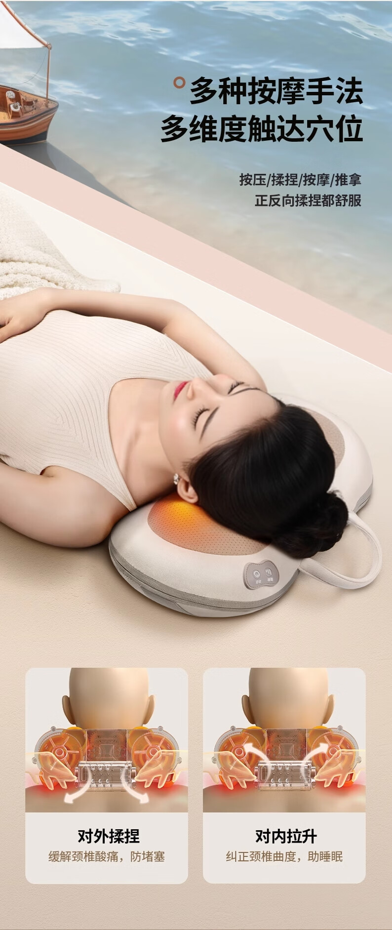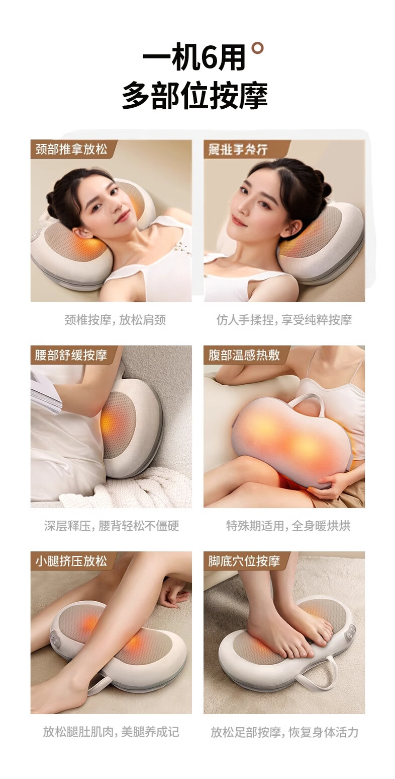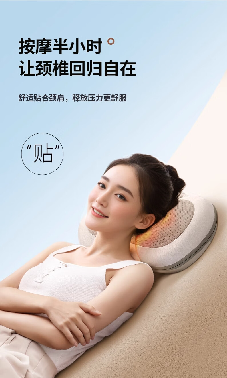 AUX奥克斯颈椎按摩器腰部背部肩膀脖子揉捏仪全身自动家用神器按摩枕头颈部肩颈背多功能按摩枕教师节礼物 小米白插电款【红光热敷+正反旋转仿生按摩】
