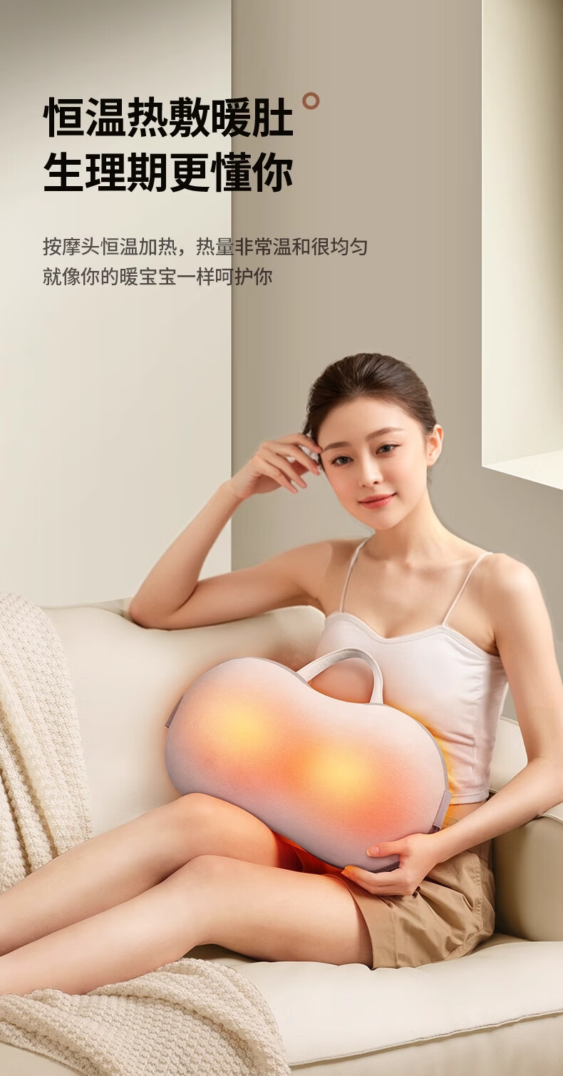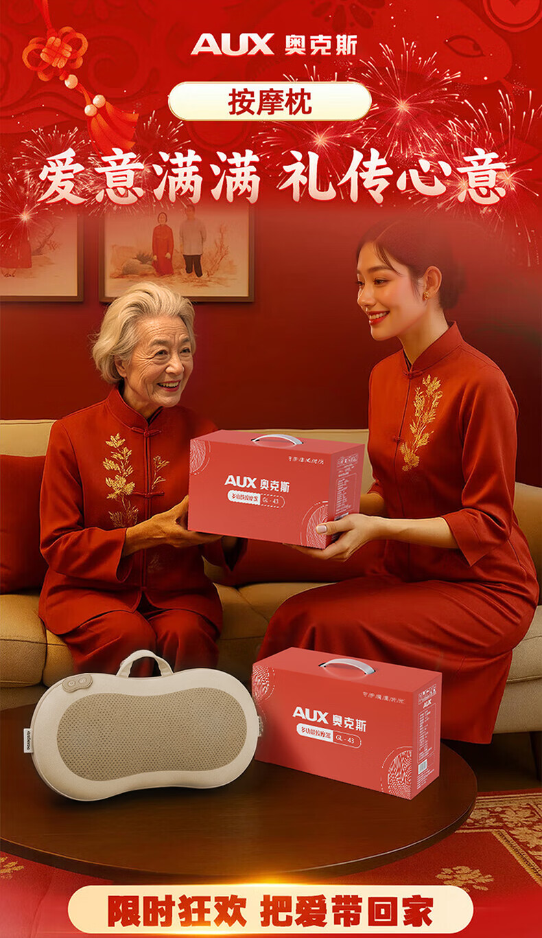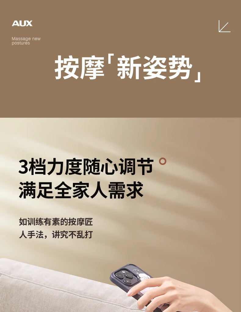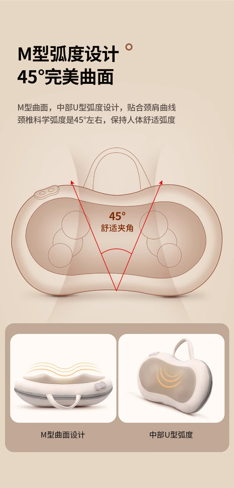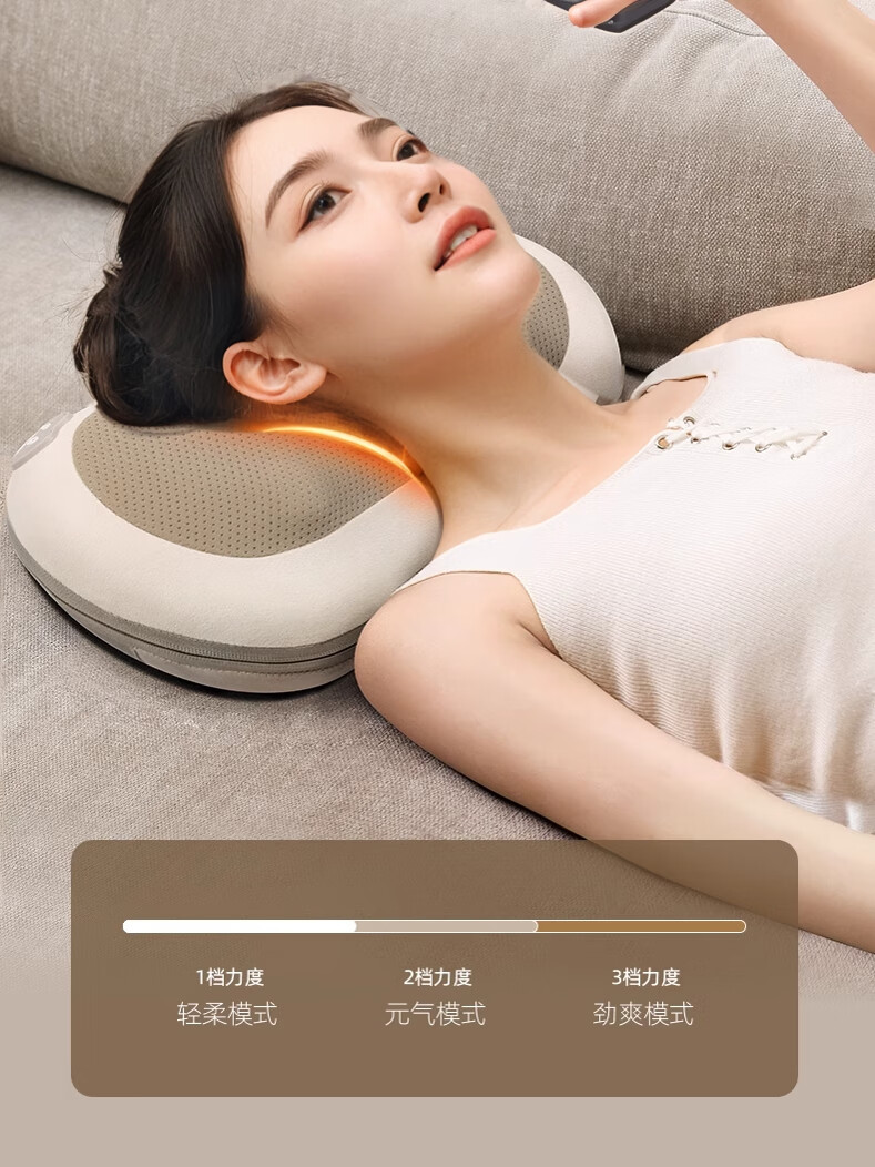 AUX奥克斯颈椎按摩器腰部背部肩膀脖子揉捏仪全身自动家用神器按摩枕头颈部肩颈背多功能按摩枕教师节礼物 小米白插电款【红光热敷+正反旋转仿生按摩】