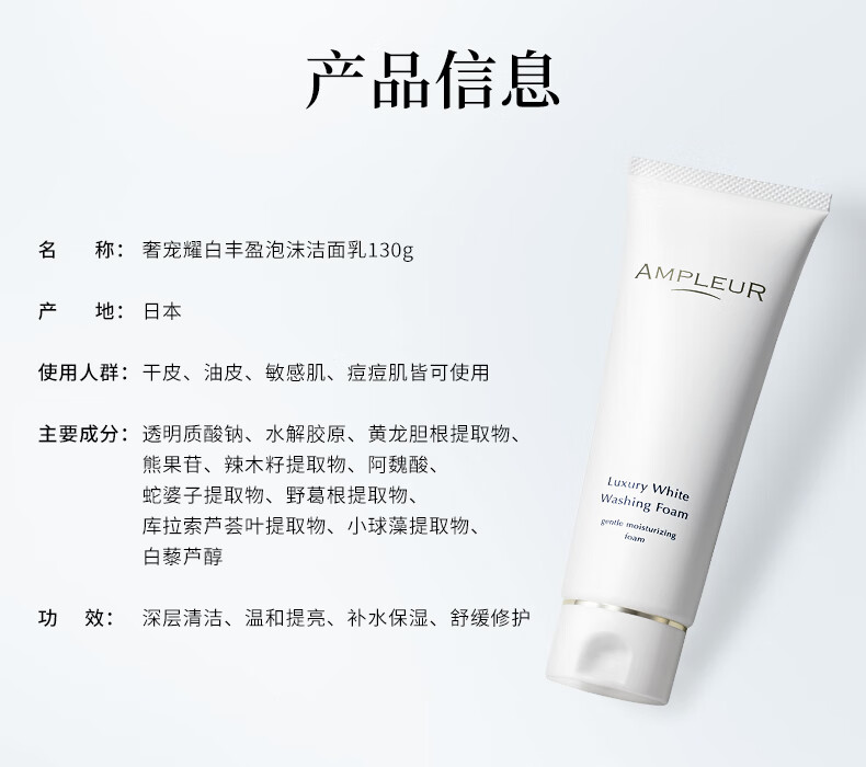 AMPLEUR 奢宠耀白泡沫洁面乳 130g清洁毛孔温和洗面奶贵妇洁面敏 【洁面乳】130g 130g