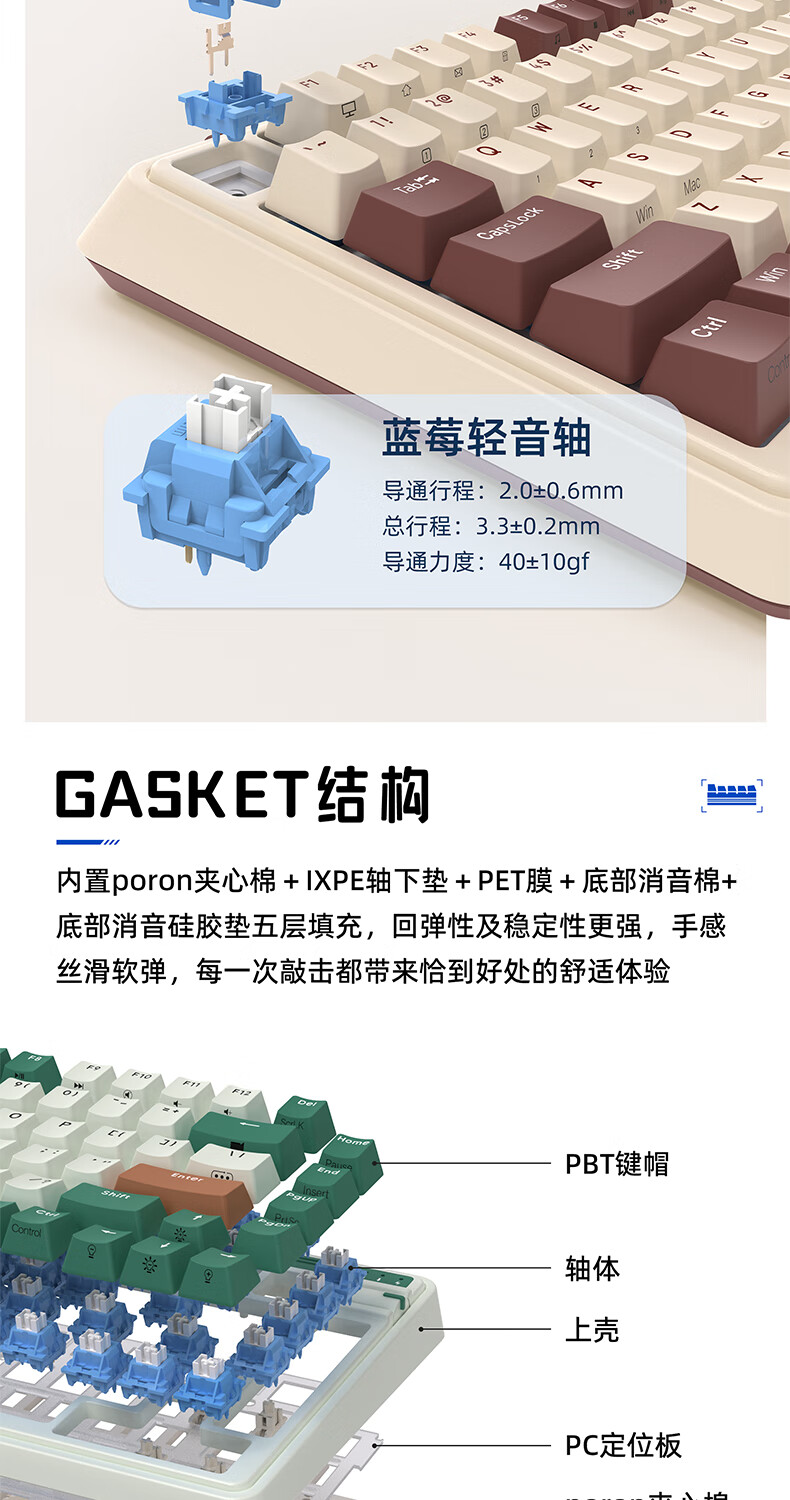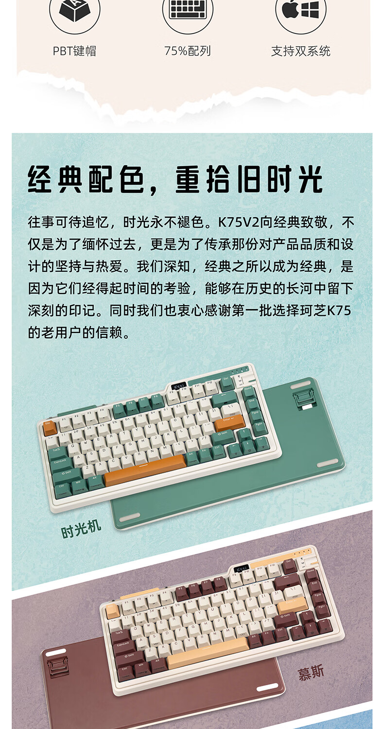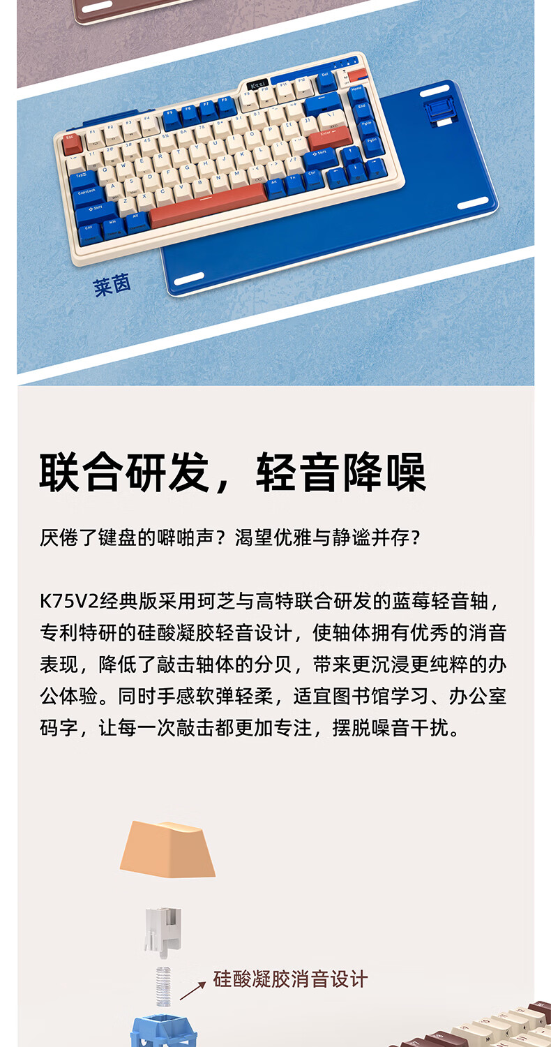 珂芝(KZZI) K75经典版客制化机械键盘三模2.4G无线蓝牙有线游戏办公全键热插拔75配列 K75V2慕斯-蓝莓静音轴-8000mAh 三模(有线/蓝牙/2.4G) 82键