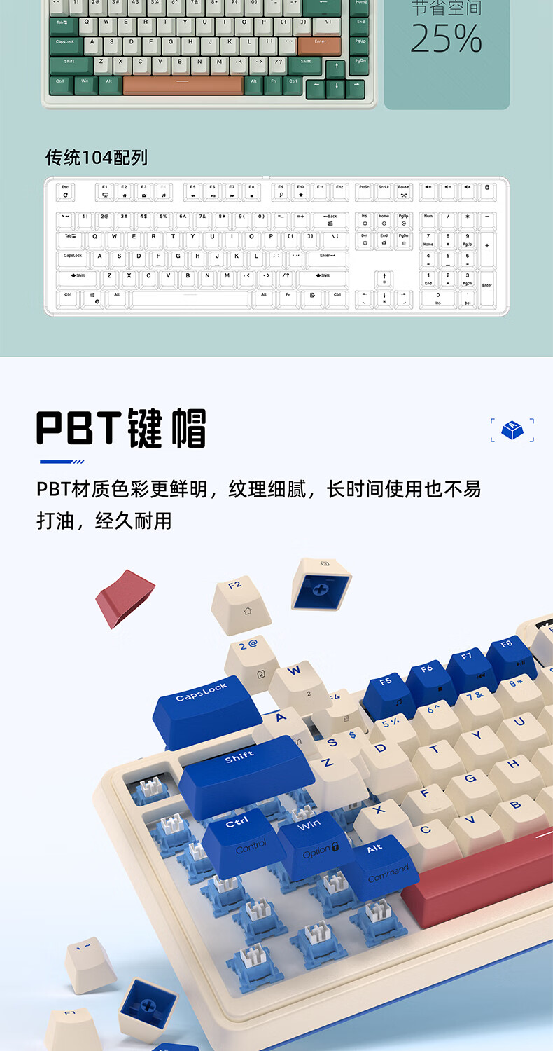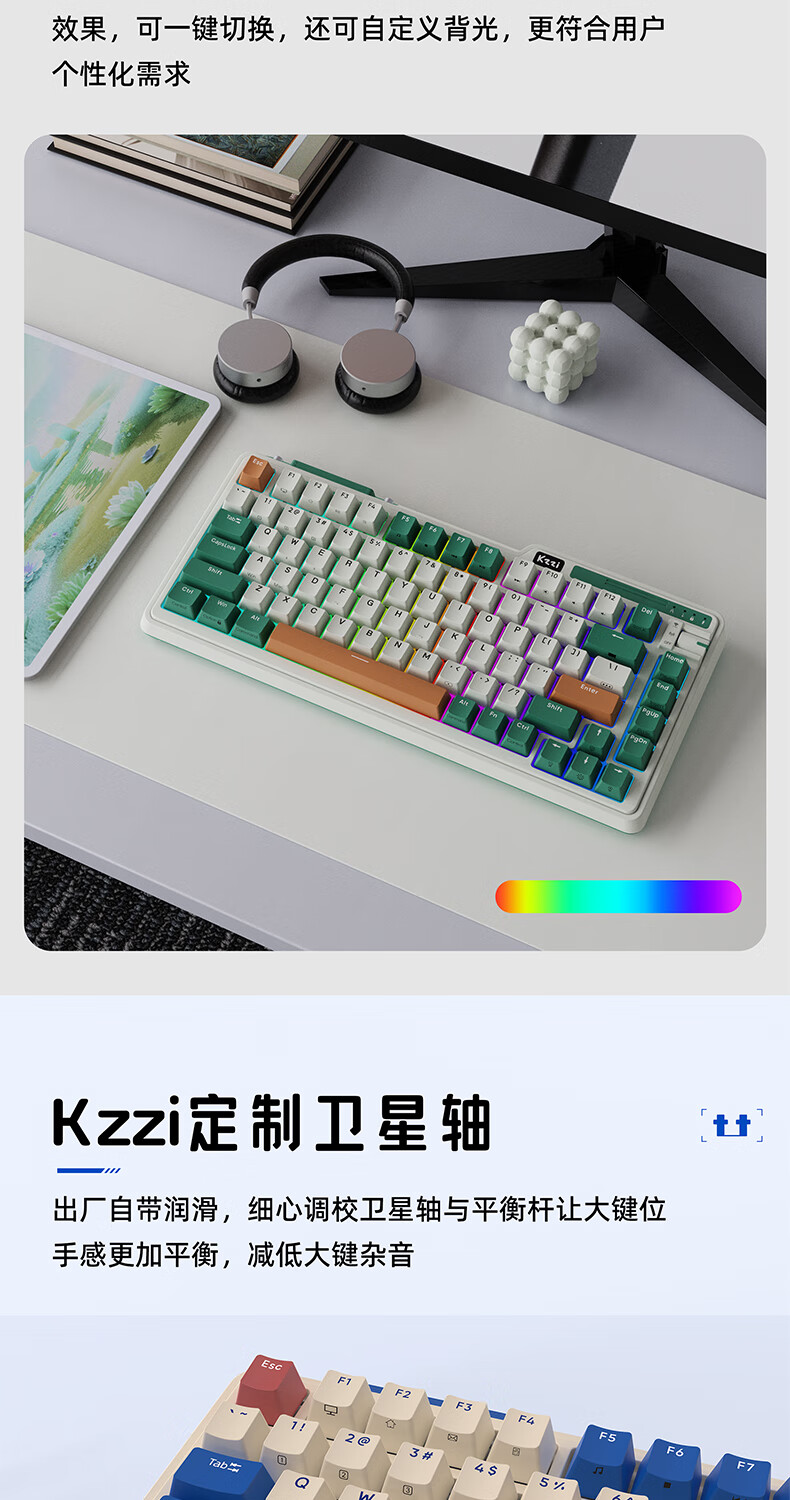 珂芝(KZZI)K98Pro无线机械键盘蓝牙有线三模游戏电竞办公键盘98键gasket客制化RGB热插拔胶坨坨麻将音 沙漠绿洲【彩虹轴】三模-游戏优选 98键
