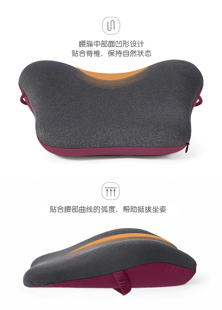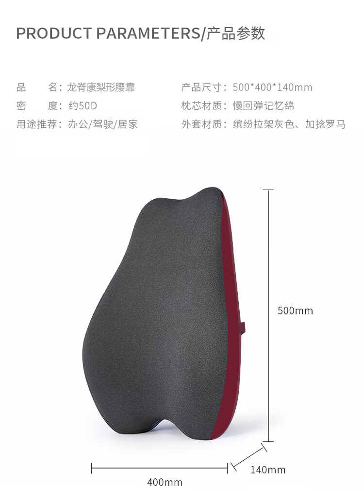 龙脊康 腰靠-梨形 沙发办公室电脑靠垫护腰枕腰垫汽车座椅靠背椅子靠枕 深红色