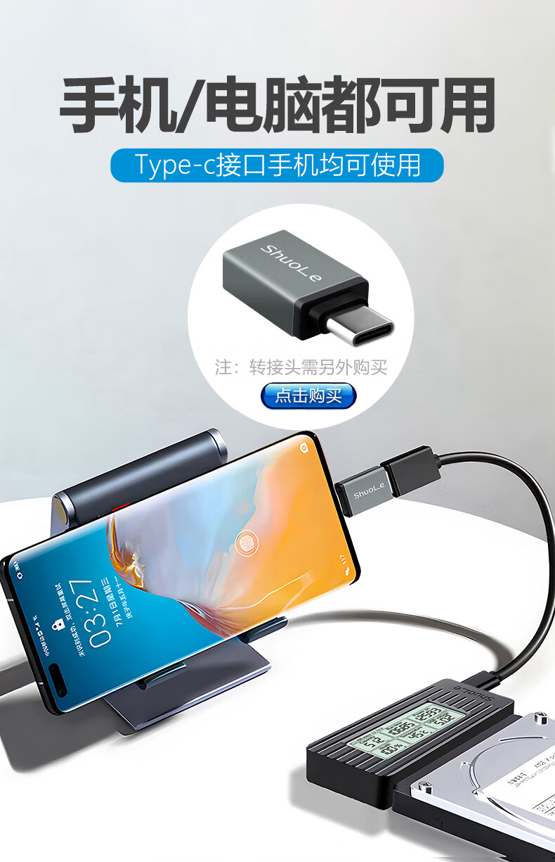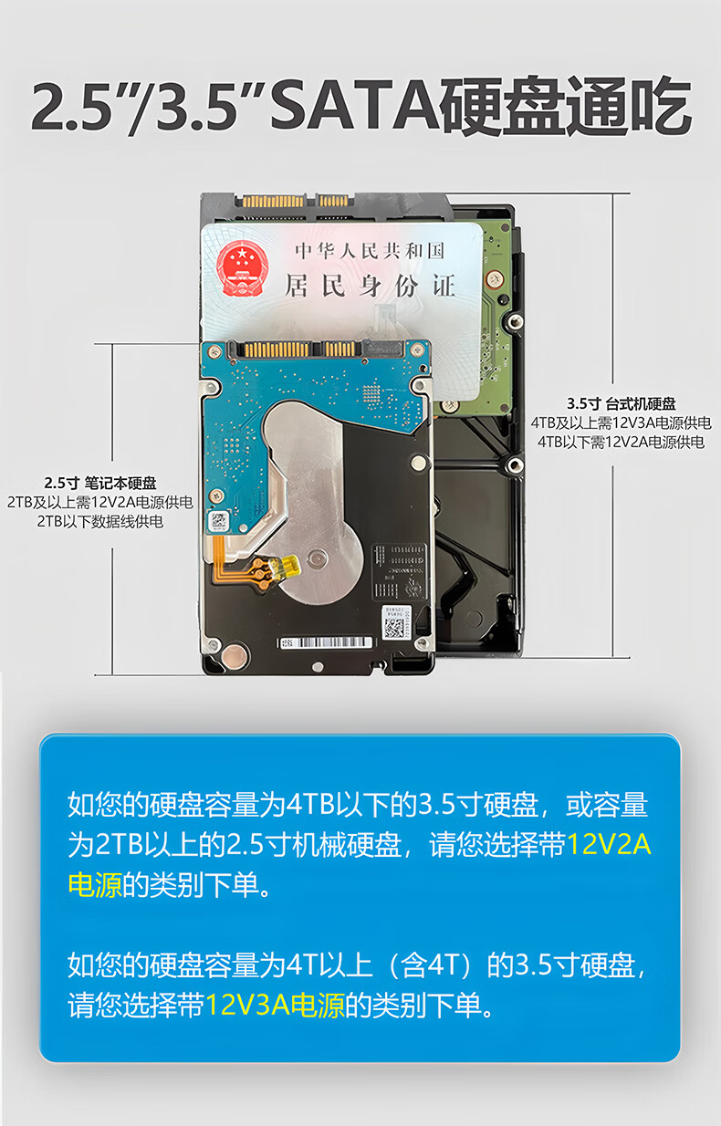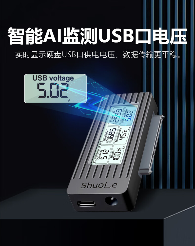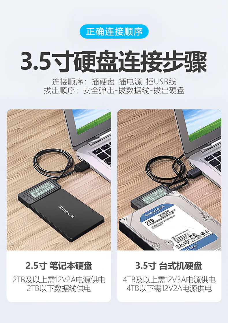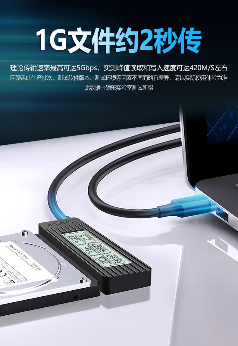 硕乐数显易驱线sata转usb3.0/3.2外置连接2.5/3.5英寸台式机笔记本电脑机械固态SSD移动硬盘读取器 3.5寸4T以上硬盘拍此款+12V3A电源+转接头