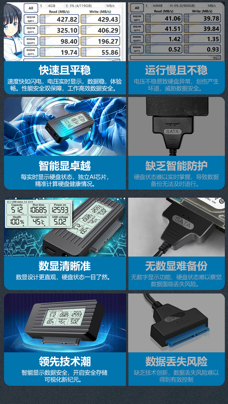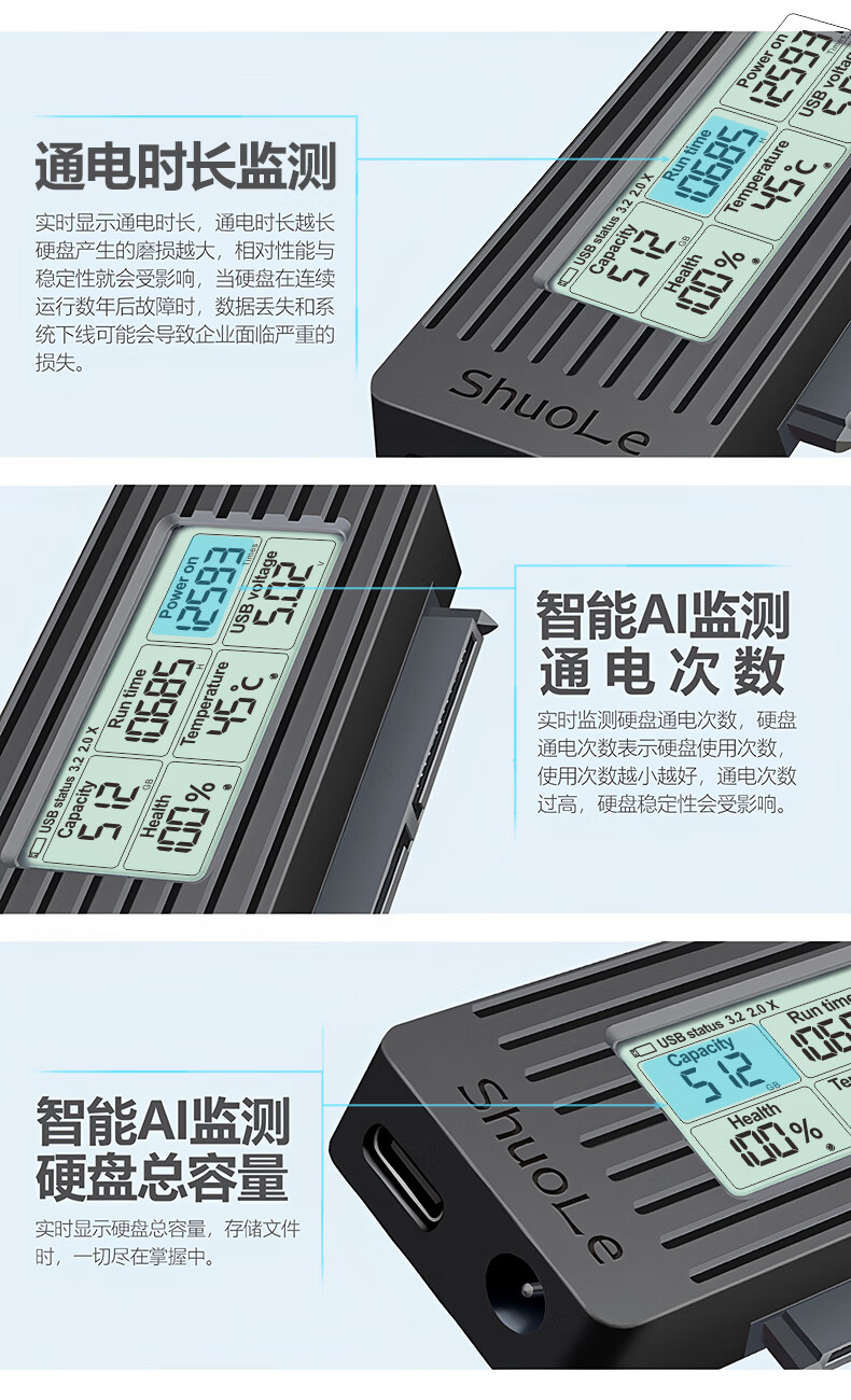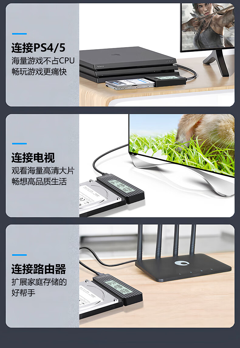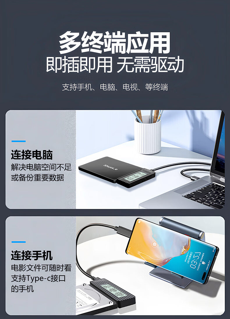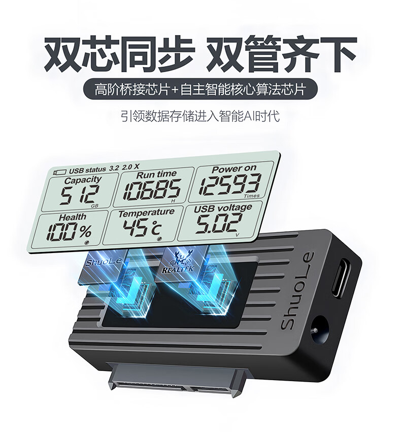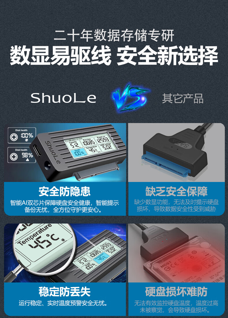 硕乐数显易驱线sata转usb3.0/3.2外置连接2.5/3.5英寸台式机笔记本电脑机械固态SSD移动硬盘读取器 3.5寸4T以上硬盘拍此款+12V3A电源+转接头