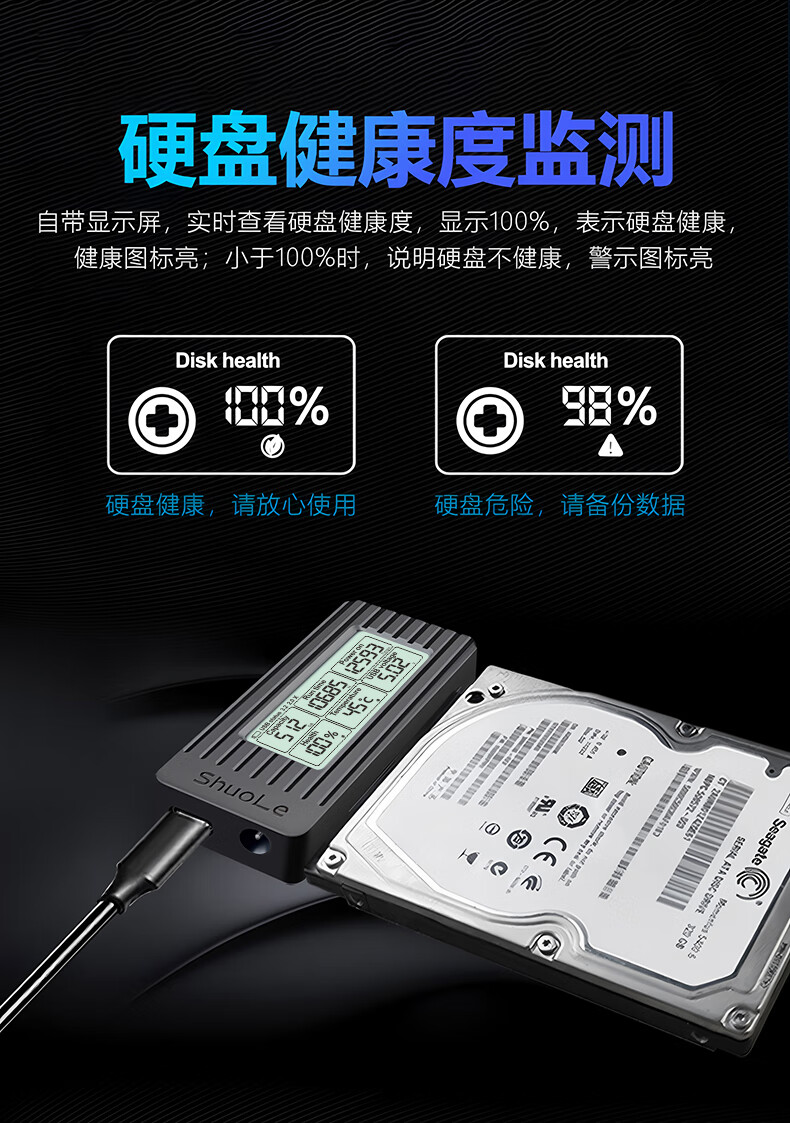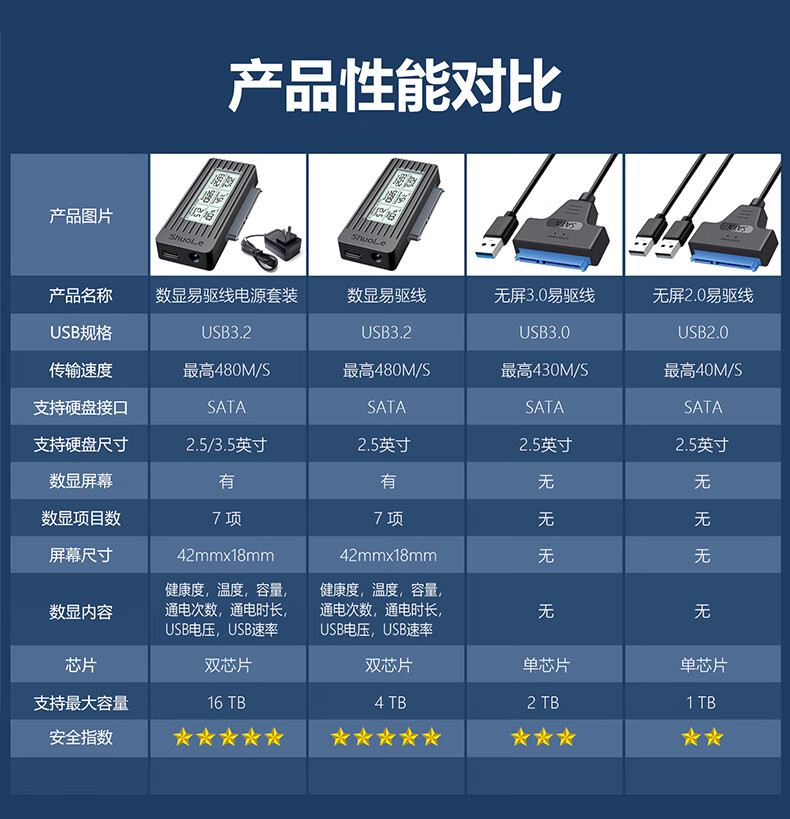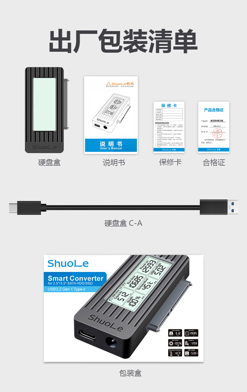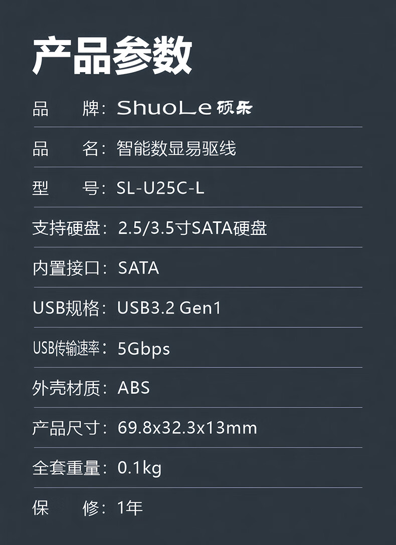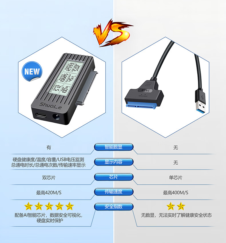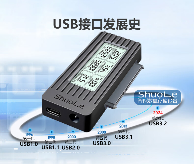 硕乐数显易驱线sata转usb3.0/3.2外置连接2.5/3.5英寸台式机笔记本电脑机械固态SSD移动硬盘读取器 3.5寸4T以上硬盘拍此款+12V3A电源+转接头
