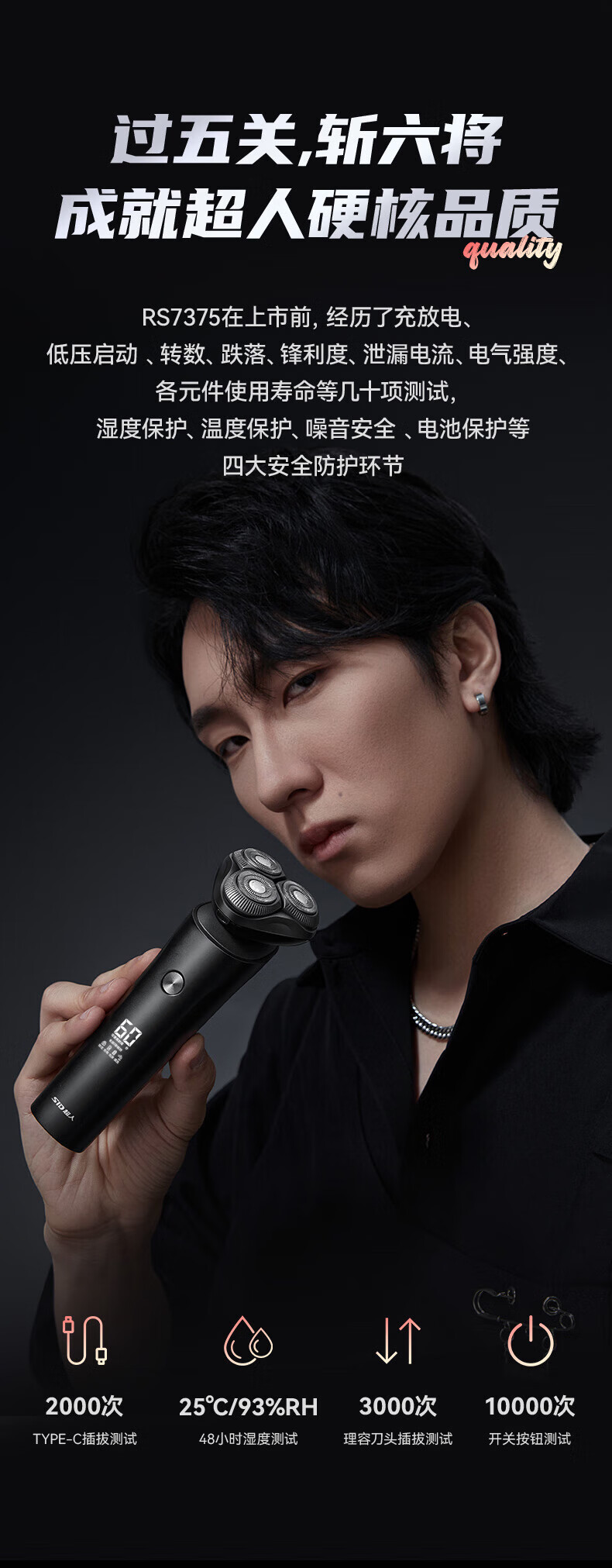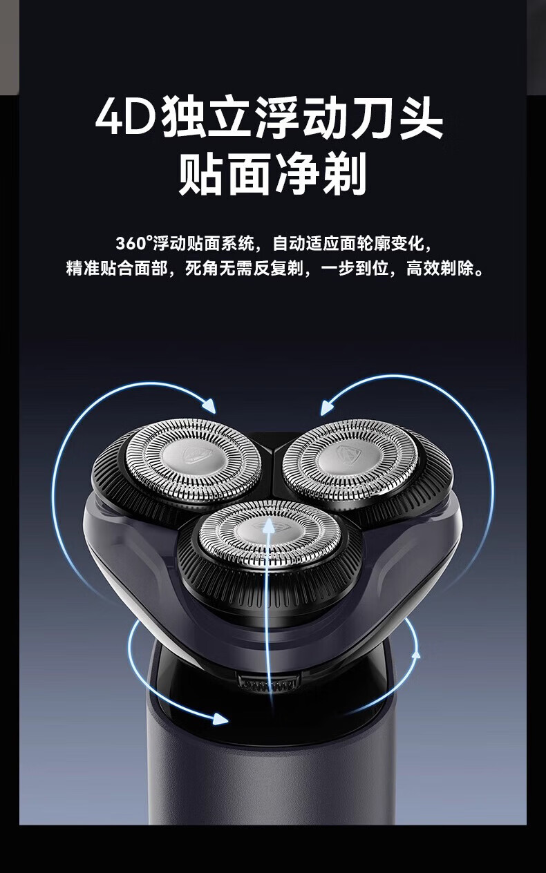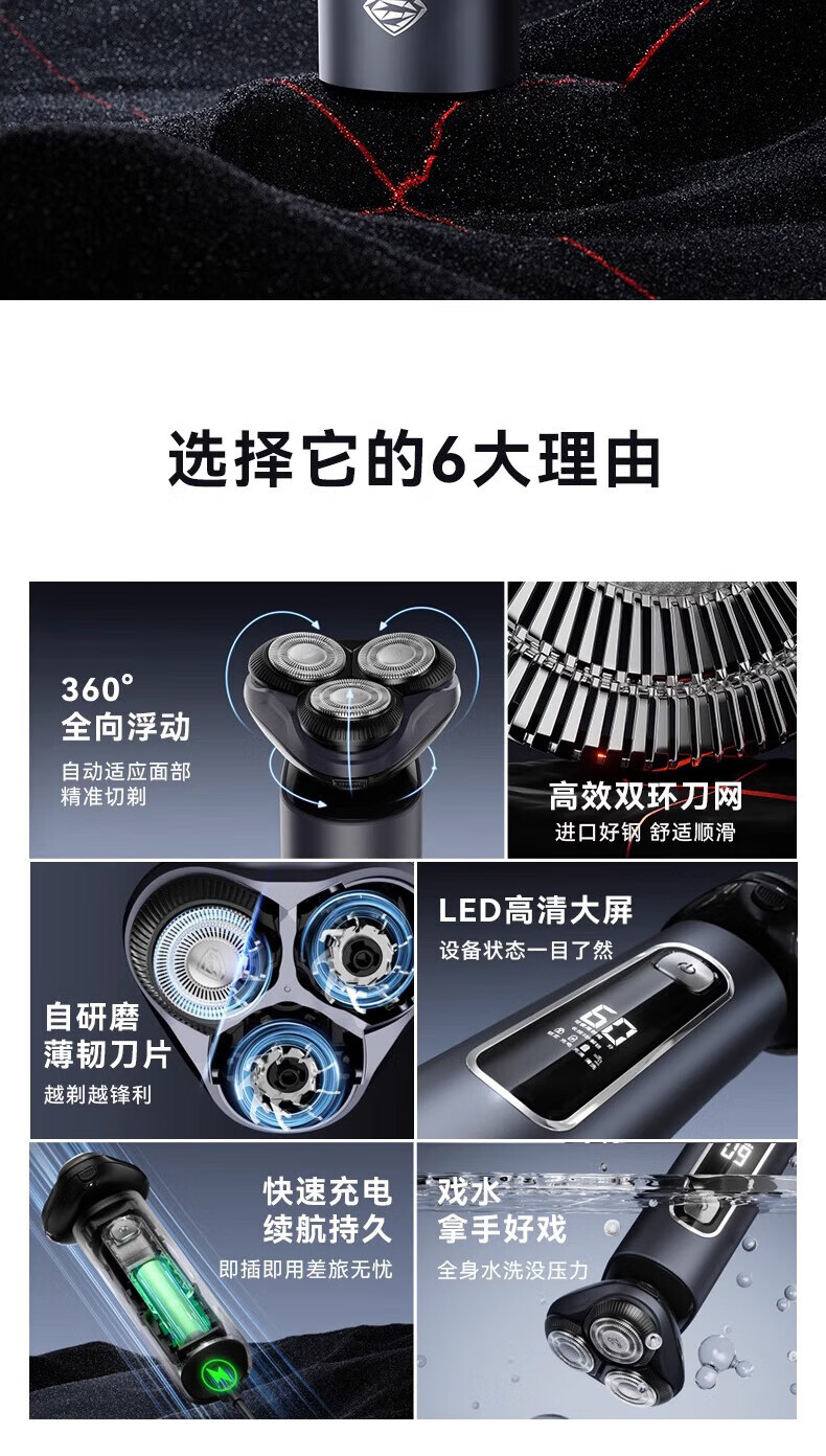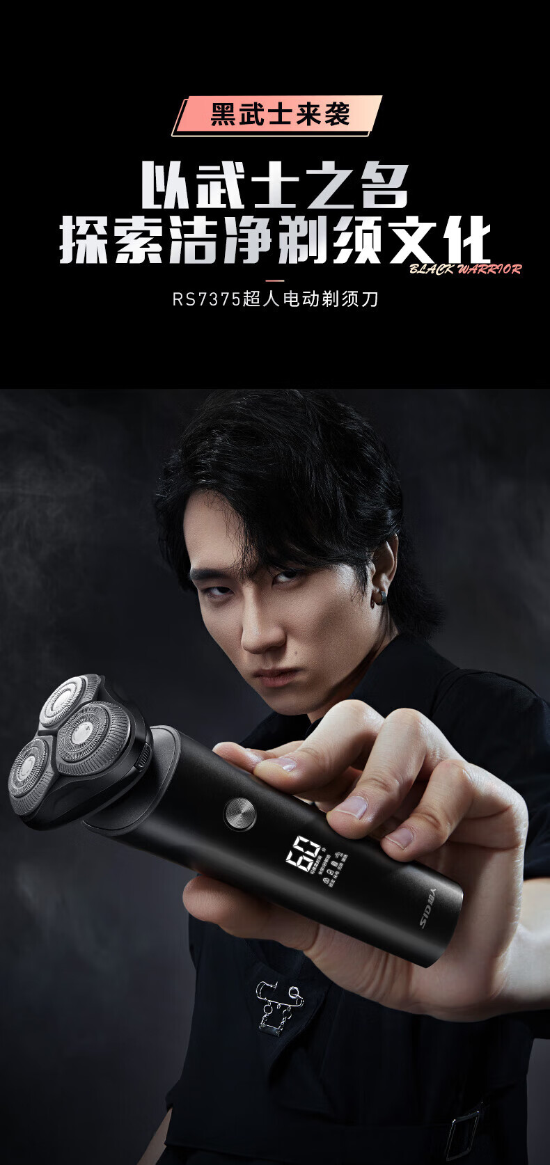 超人(SID)剃须刀男士独立浮动10W大功全机身水洗车载电动三刀头IPX7级全身水洗高性能锂电池Type-C RS7375【赠备用刀头+电动鼻毛器】