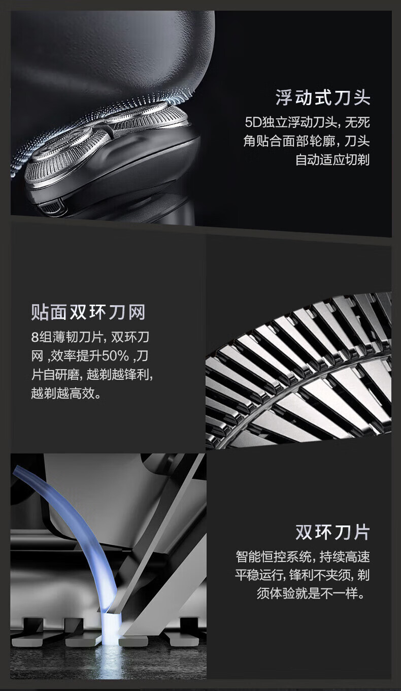 飞利浦(PHILIPS)同款剃须刀德国品质电动剃须刀男士2025新款刮胡刀剃胡子刀官方旗舰店正品便携小钢炮 数显至尊款进口九叶刀头