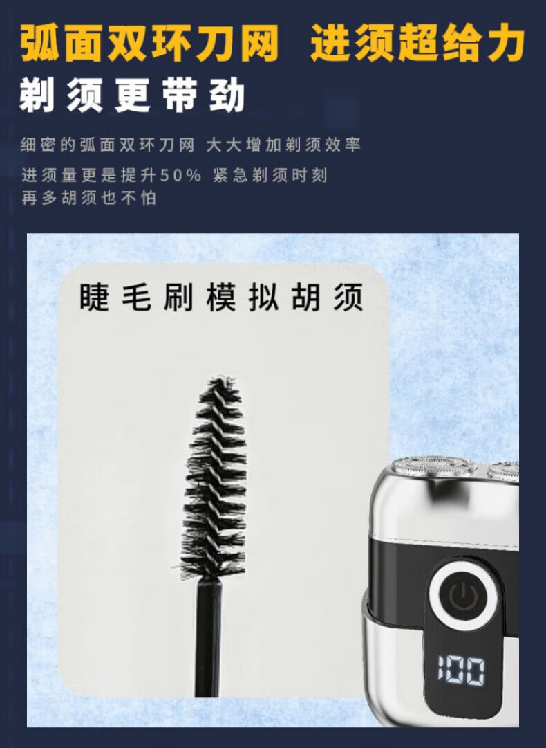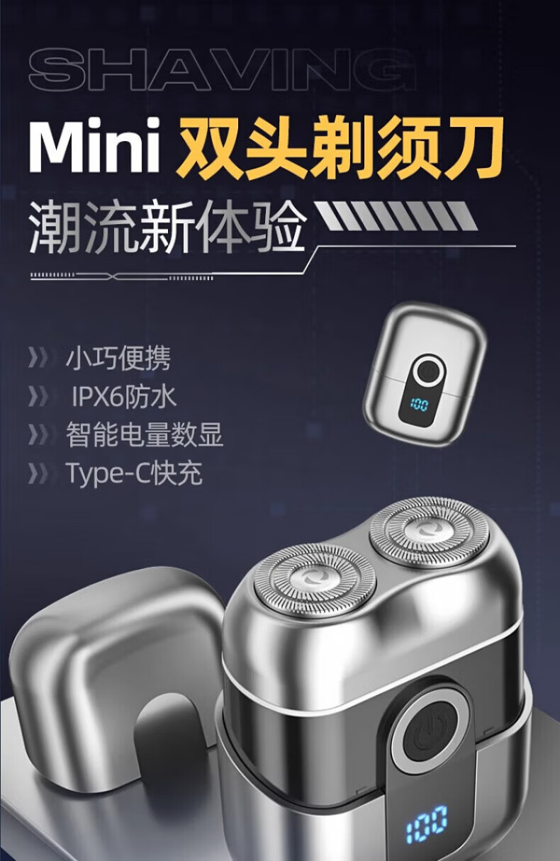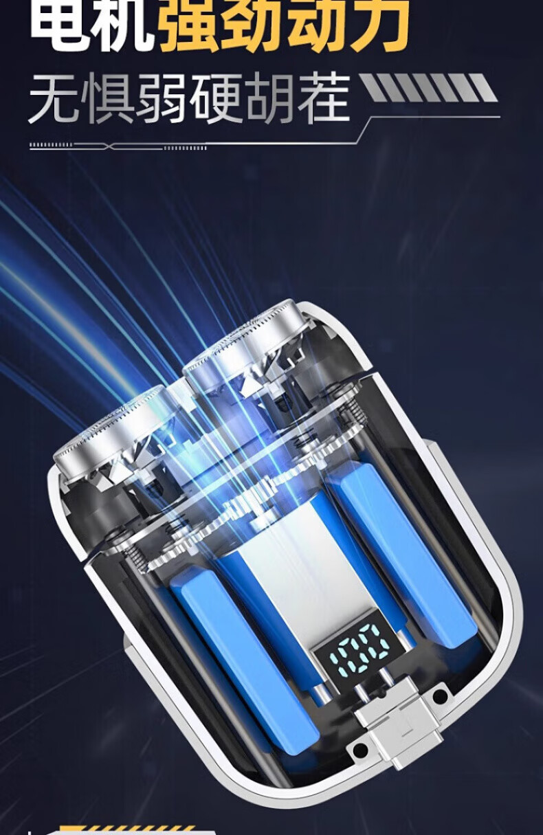 DIKTT七夕礼物德国电动剃须刀便携款男士迷你充电刮胡刀不留黑点小钢炮剃胡刀剃胡子送男友须刨超长续航 强劲款【钛金36叶刀头】365天待机