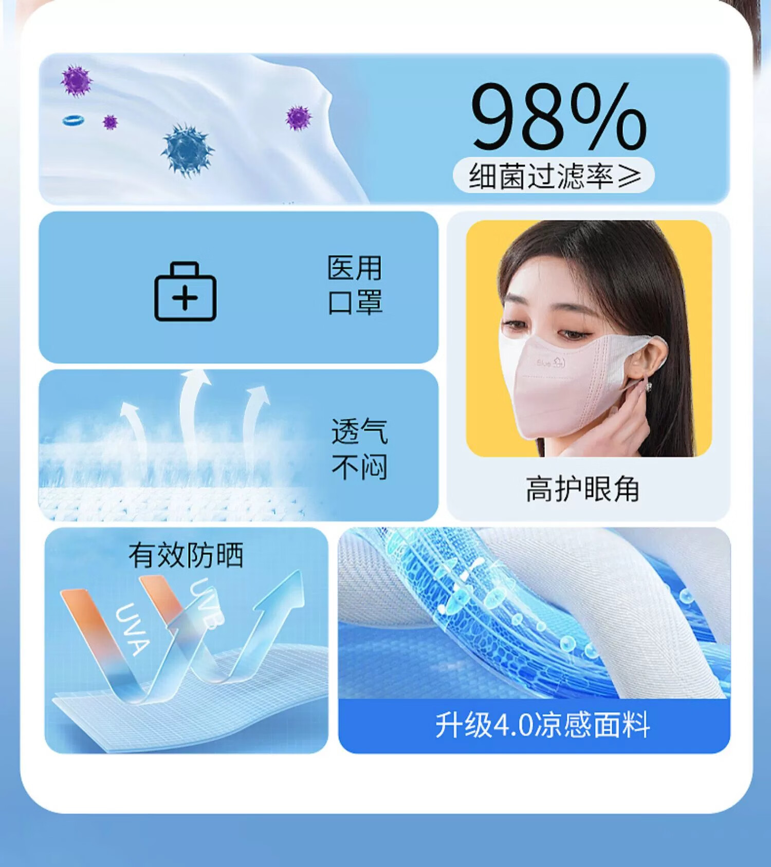 锐宇口罩薄款透气3d立体女高颜值2025新款一次性防晒护眼角医用秋冬 4.0冰感升级珍珠白【30枚】独立装