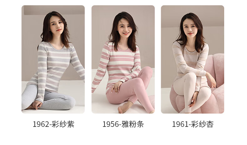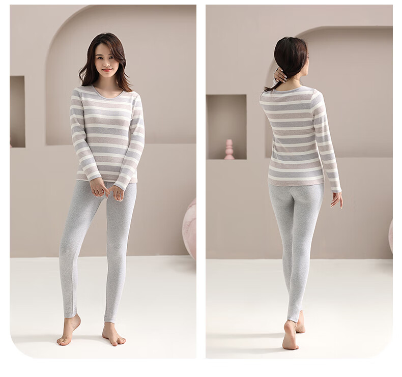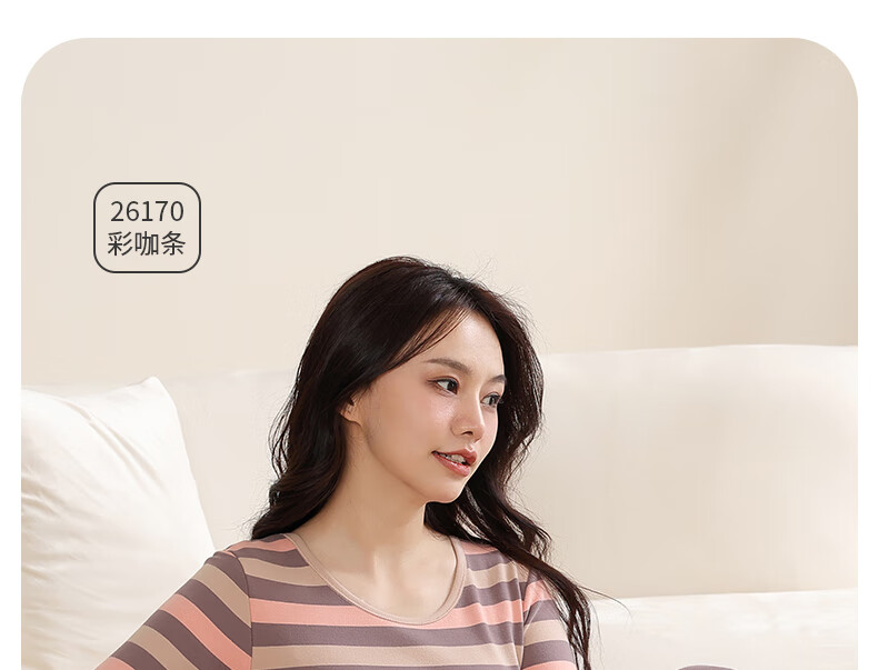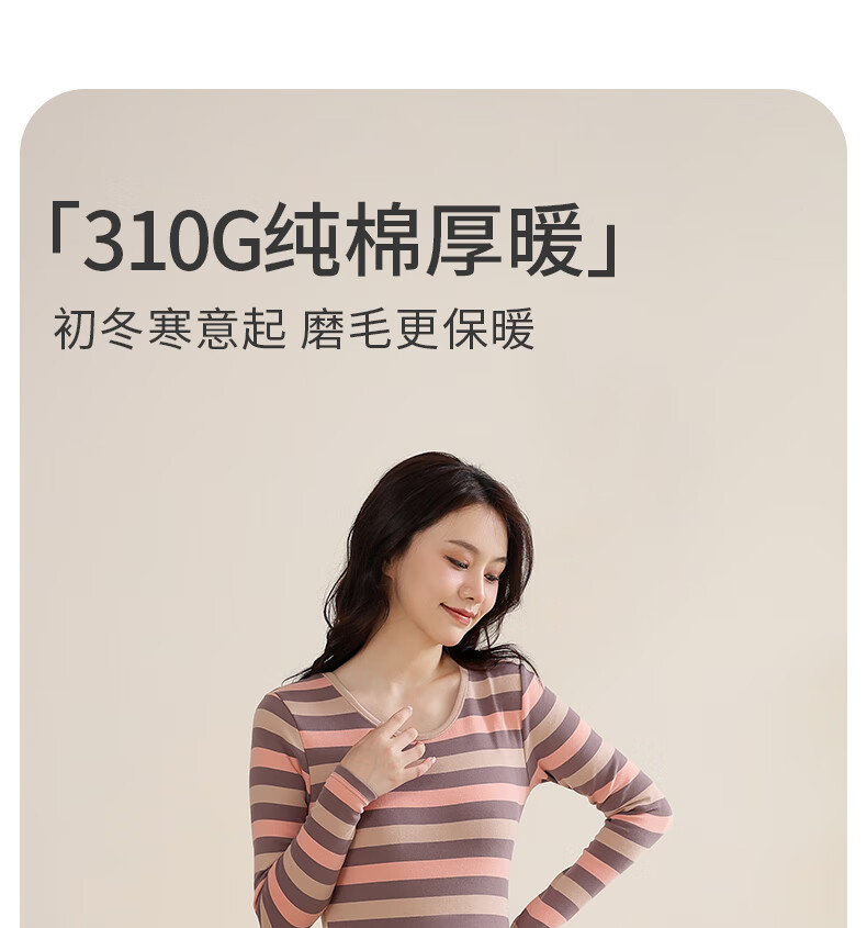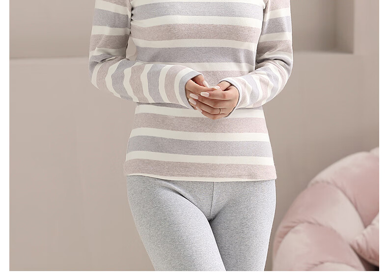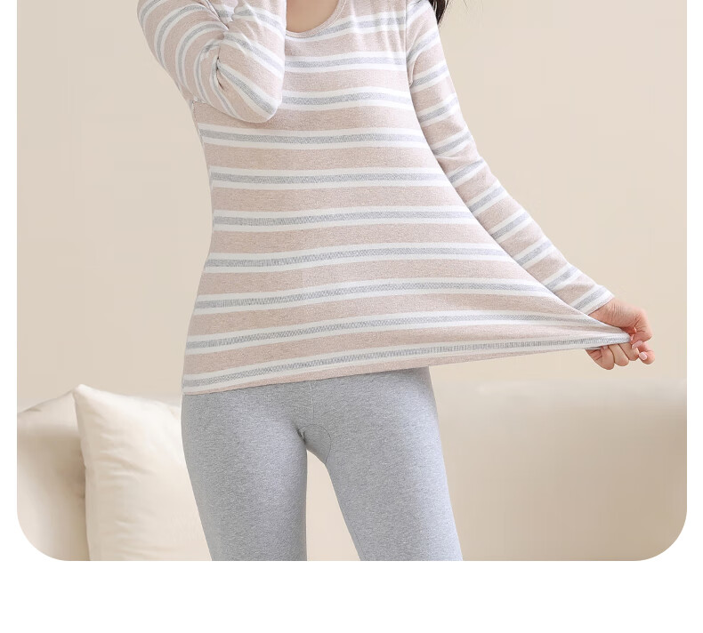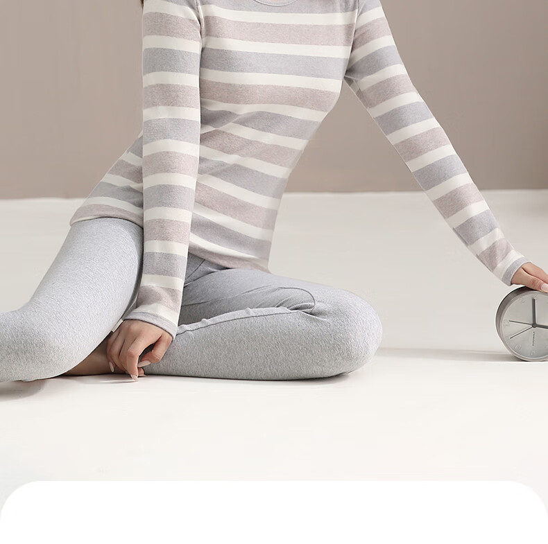 新一步(XINYIBU)舒绒纯棉条纹保暖内衣女士秋冬抗菌抗静电中老年加厚秋衣秋裤套装 1961彩纱杏 M 建议155-160cm,80-100斤