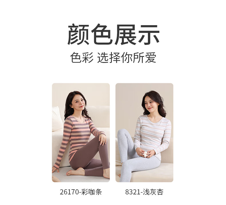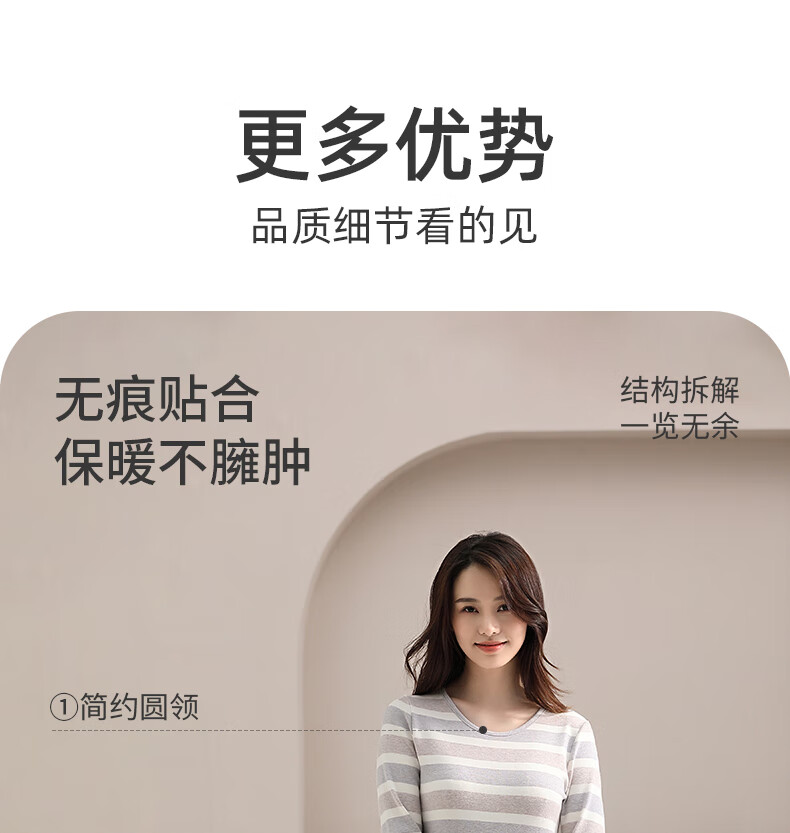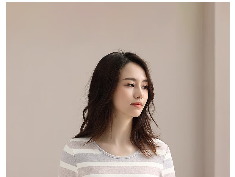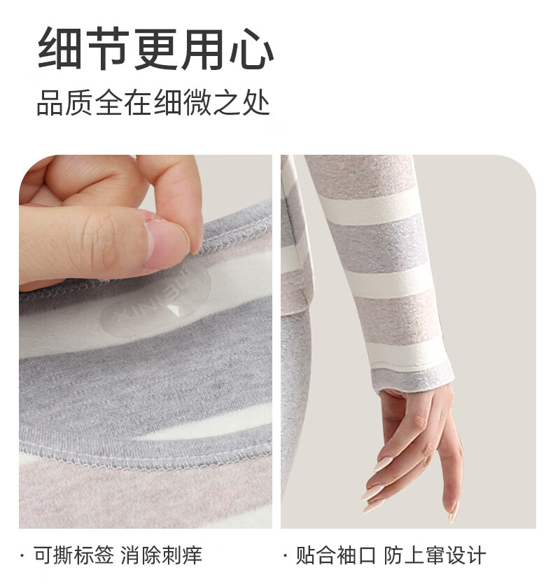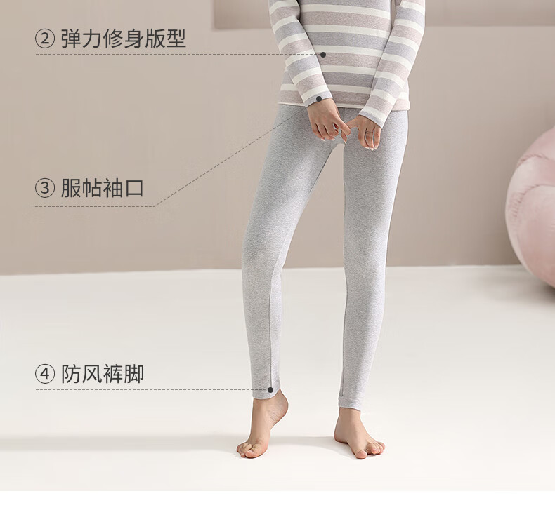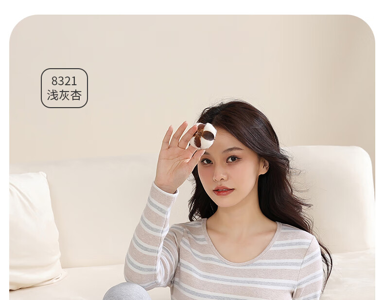 新一步(XINYIBU)舒绒纯棉条纹保暖内衣女士秋冬抗菌抗静电中老年加厚秋衣秋裤套装 1961彩纱杏 M 建议155-160cm,80-100斤