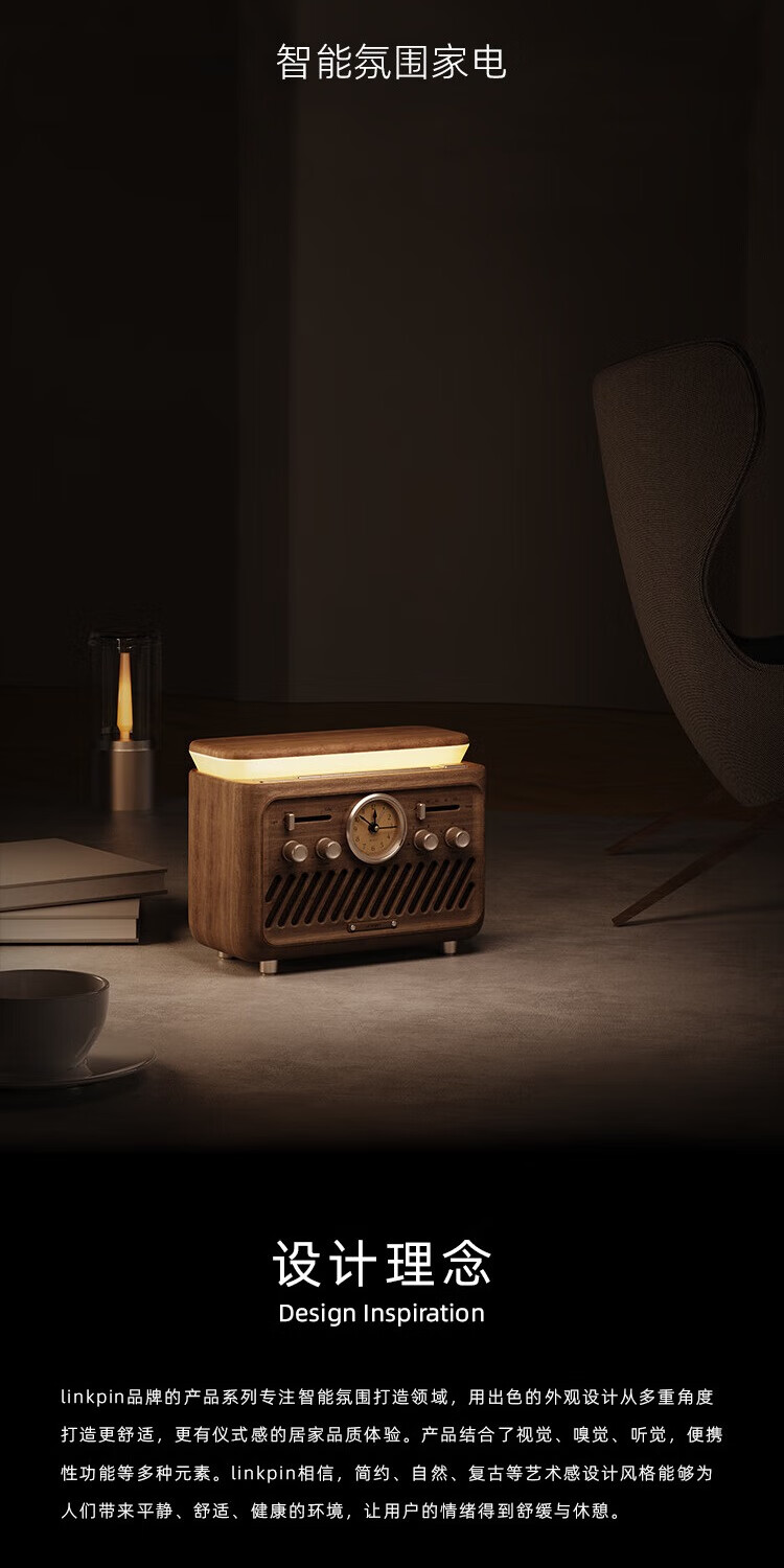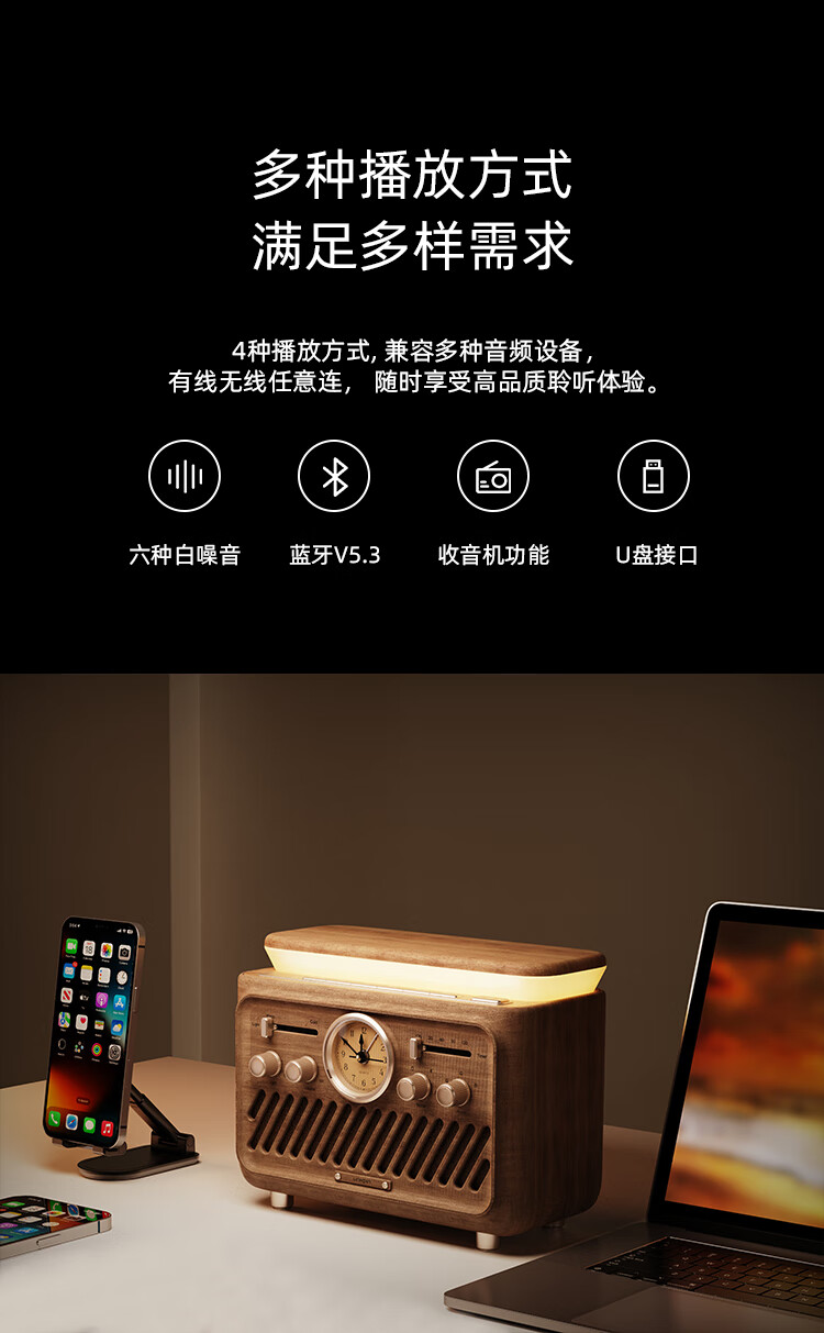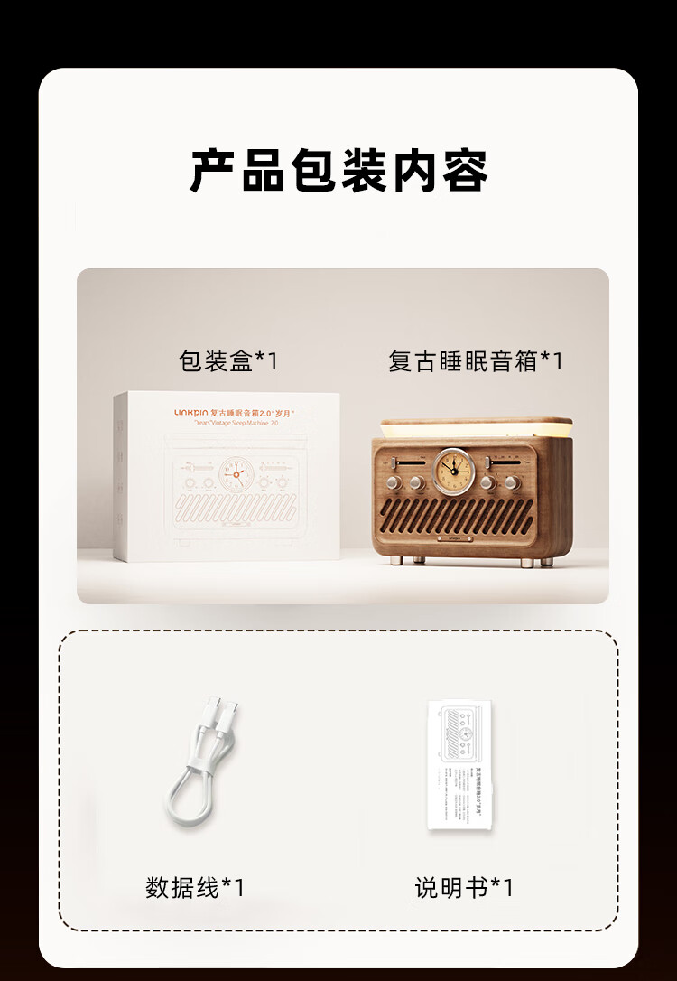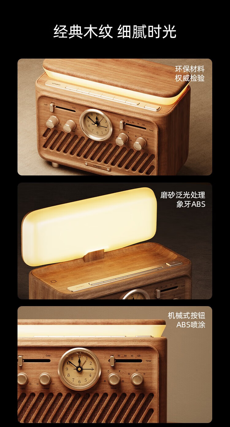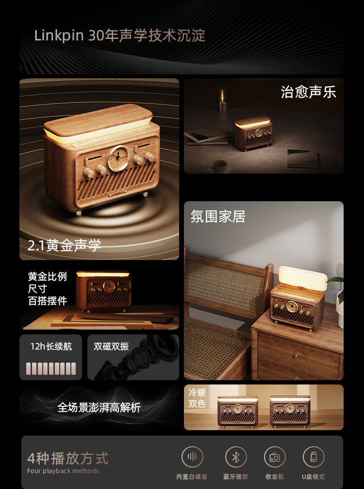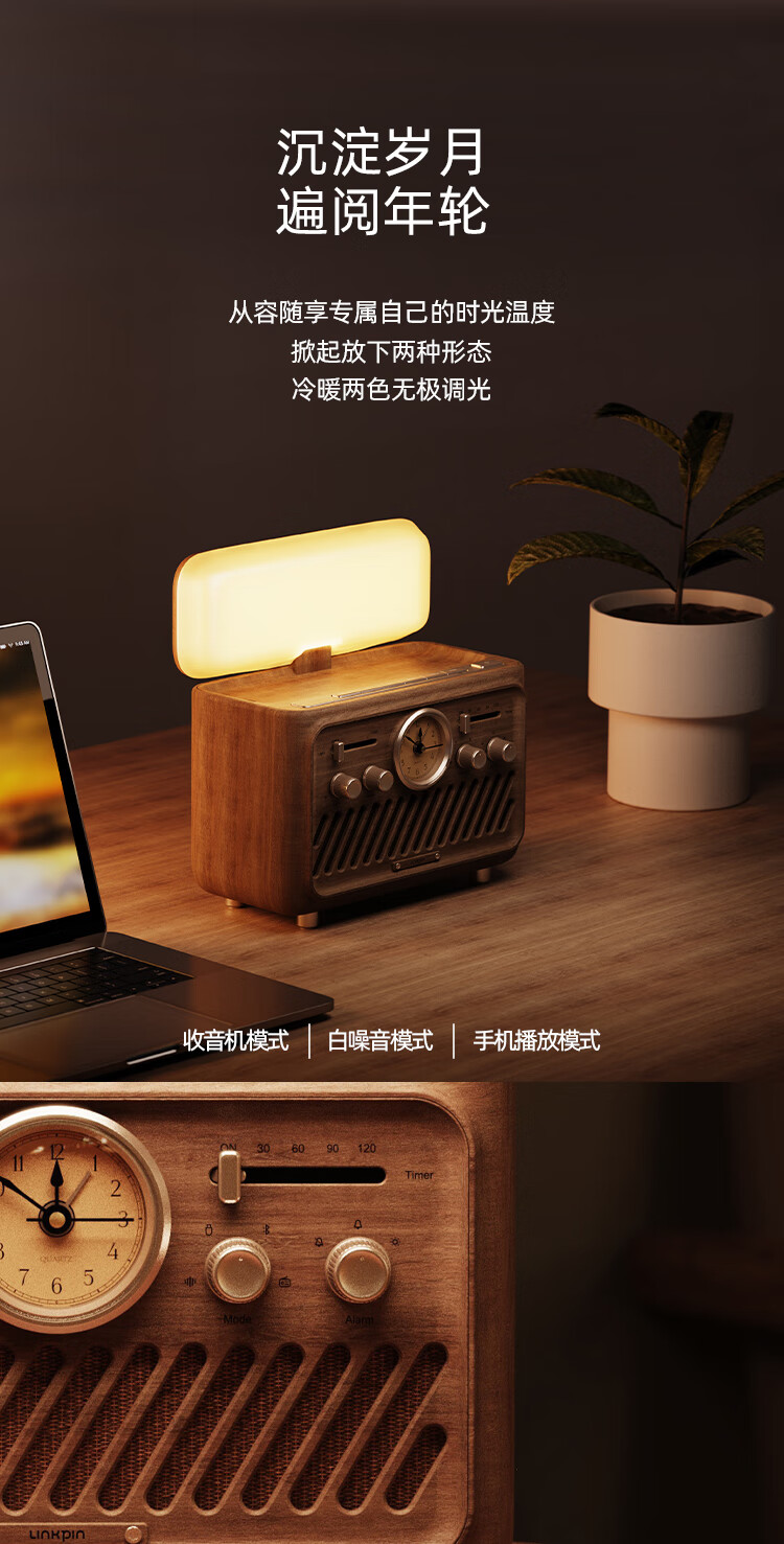 LINKPIN蓝牙音箱复古夜灯白噪音睡眠音响收音机一体生日闺蜜礼物中秋节礼物 【2.0-便携款】经典木纹推荐款