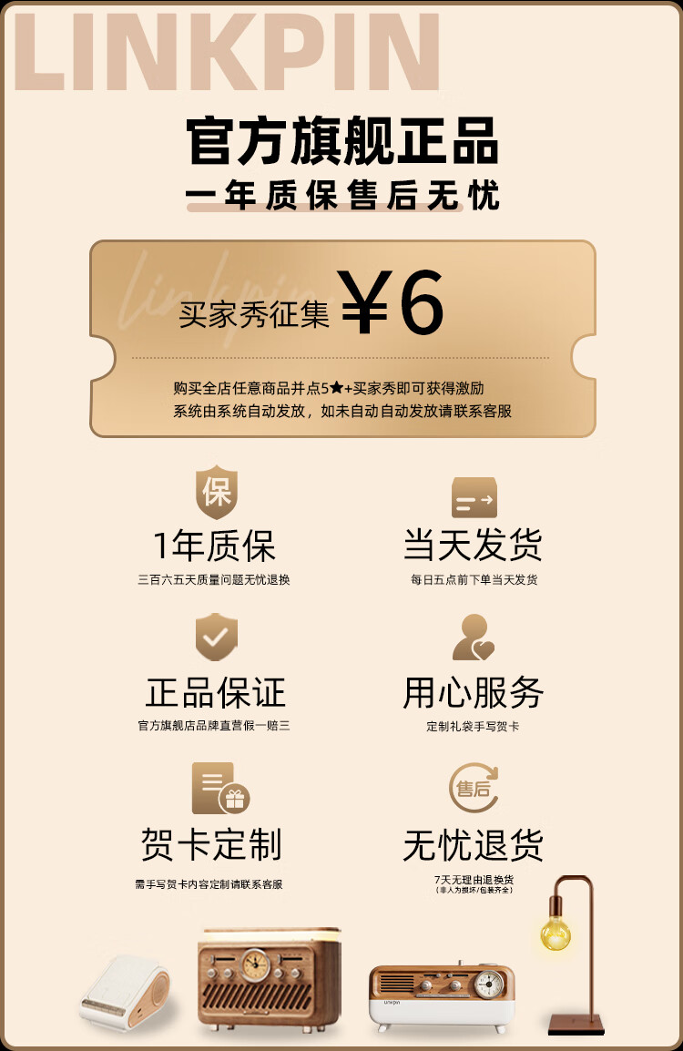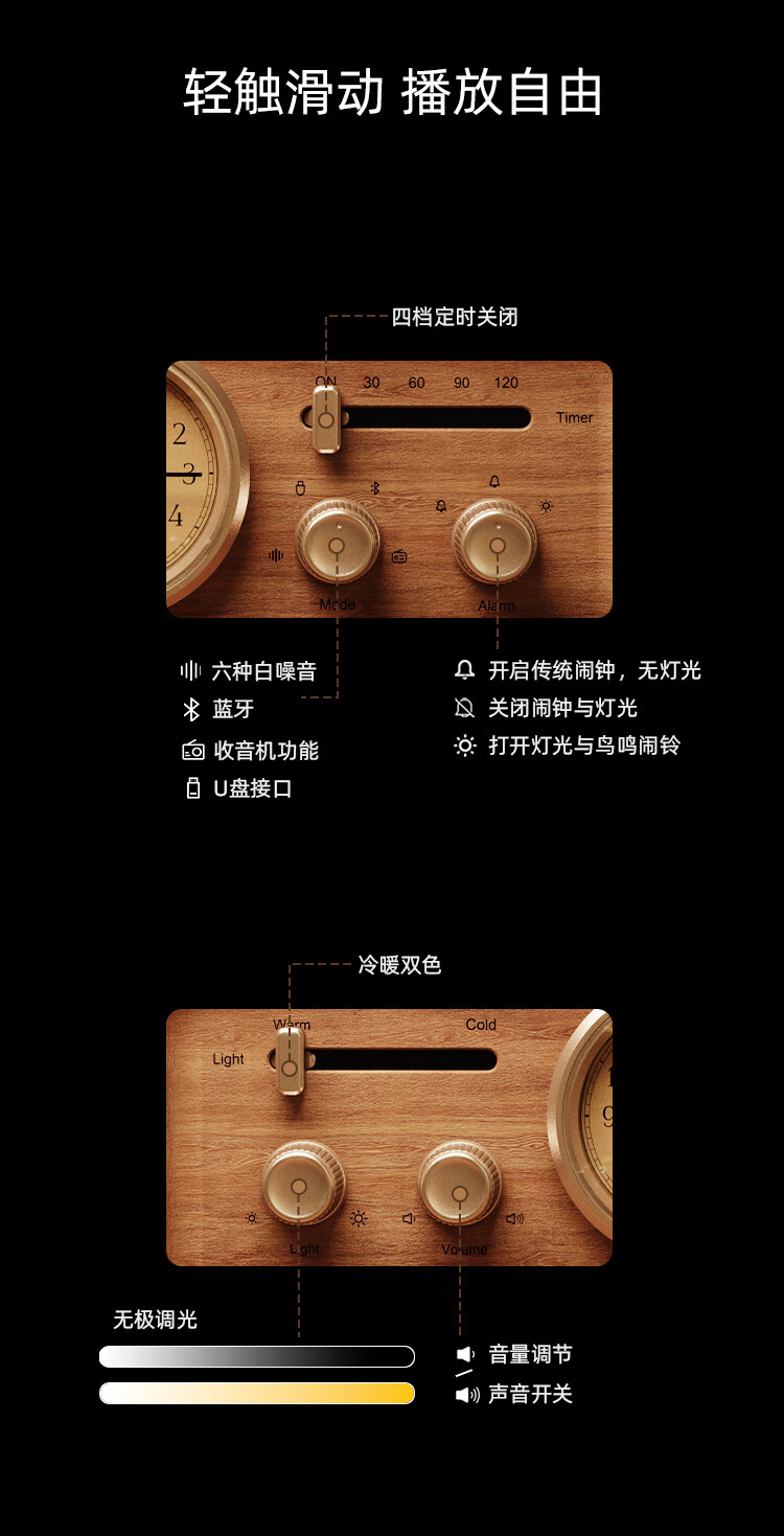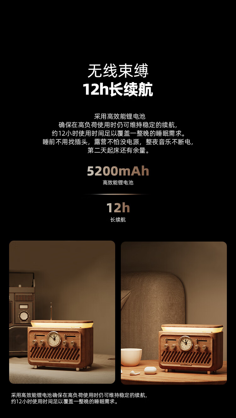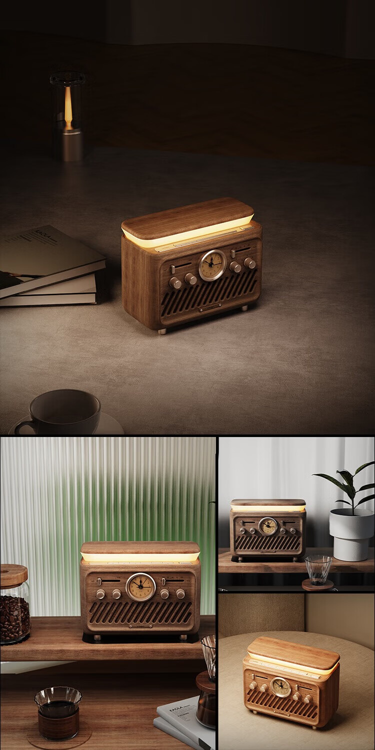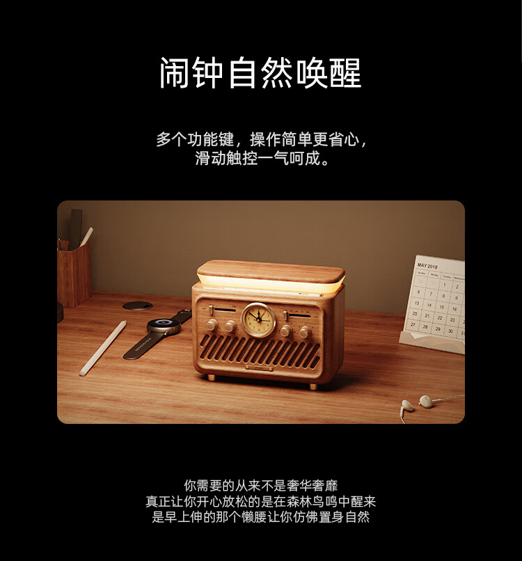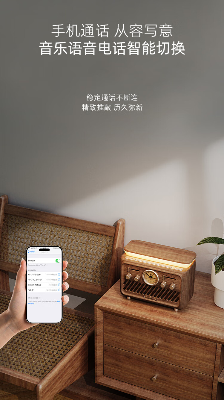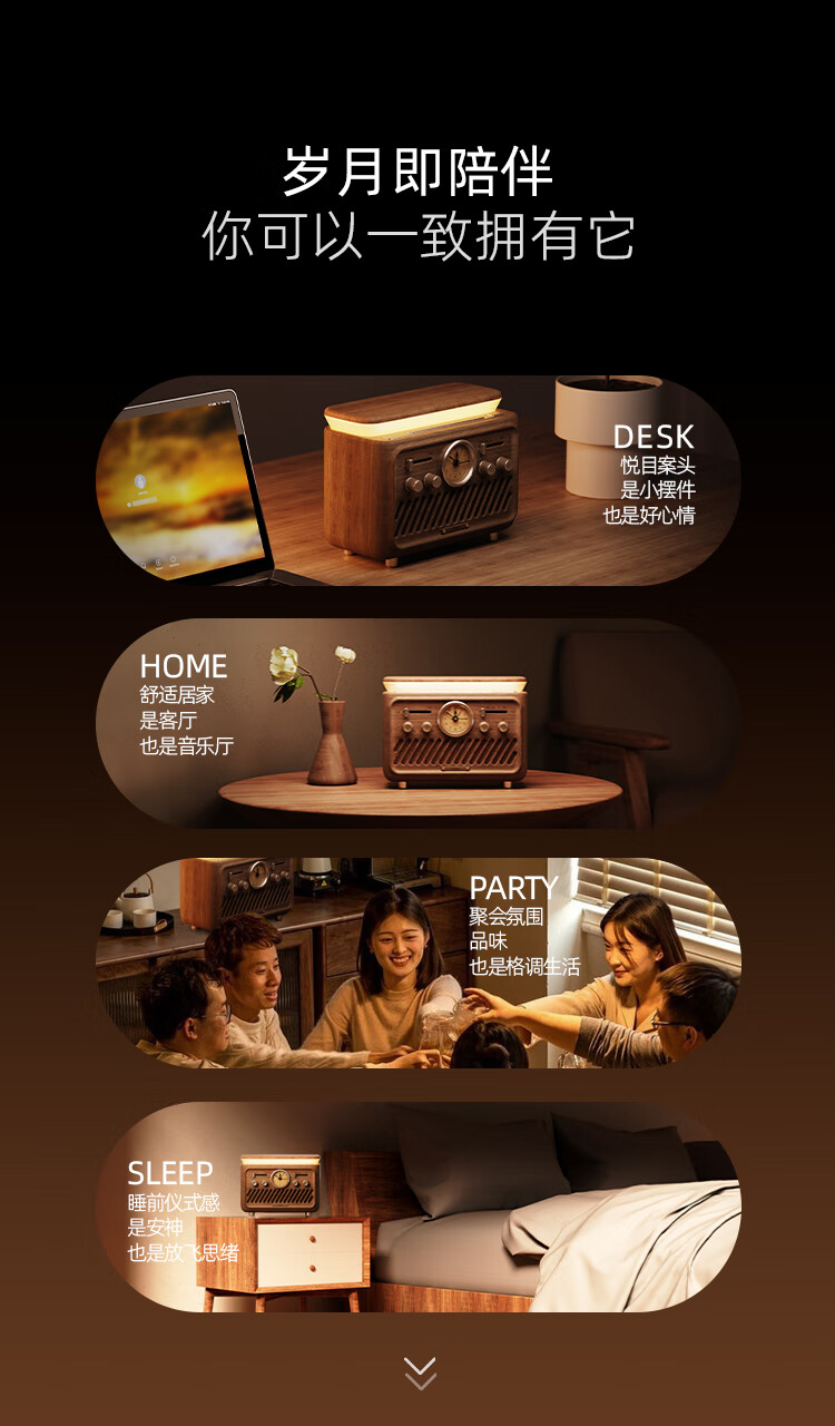 LINKPIN蓝牙音箱复古夜灯白噪音睡眠音响收音机一体生日闺蜜礼物中秋节礼物 【2.0-便携款】经典木纹推荐款