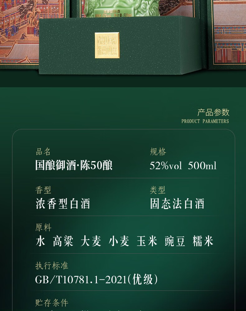 浓匠国酿御酒陈50酿浓香型52度500ml*2瓶礼盒装