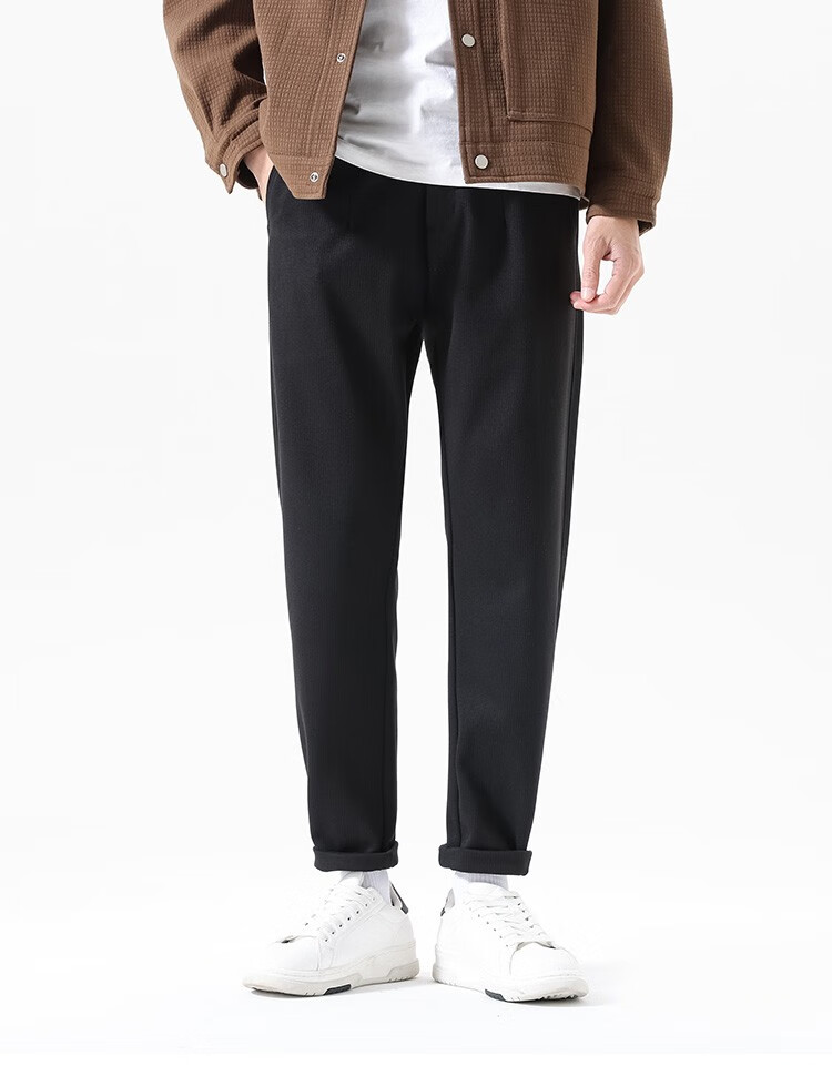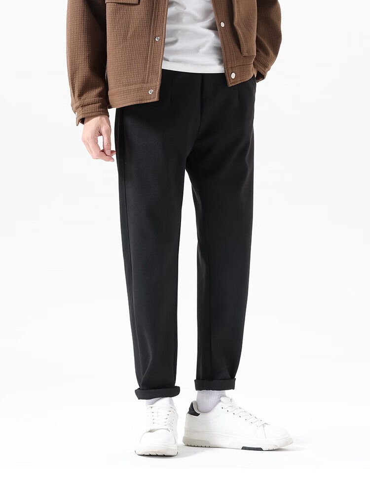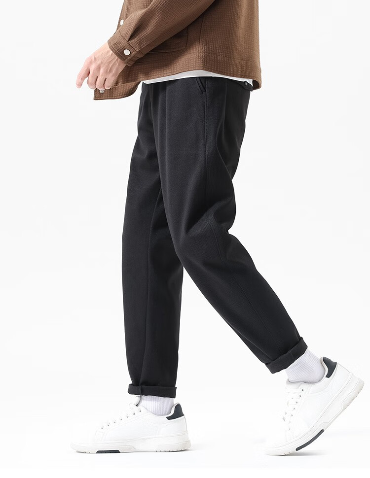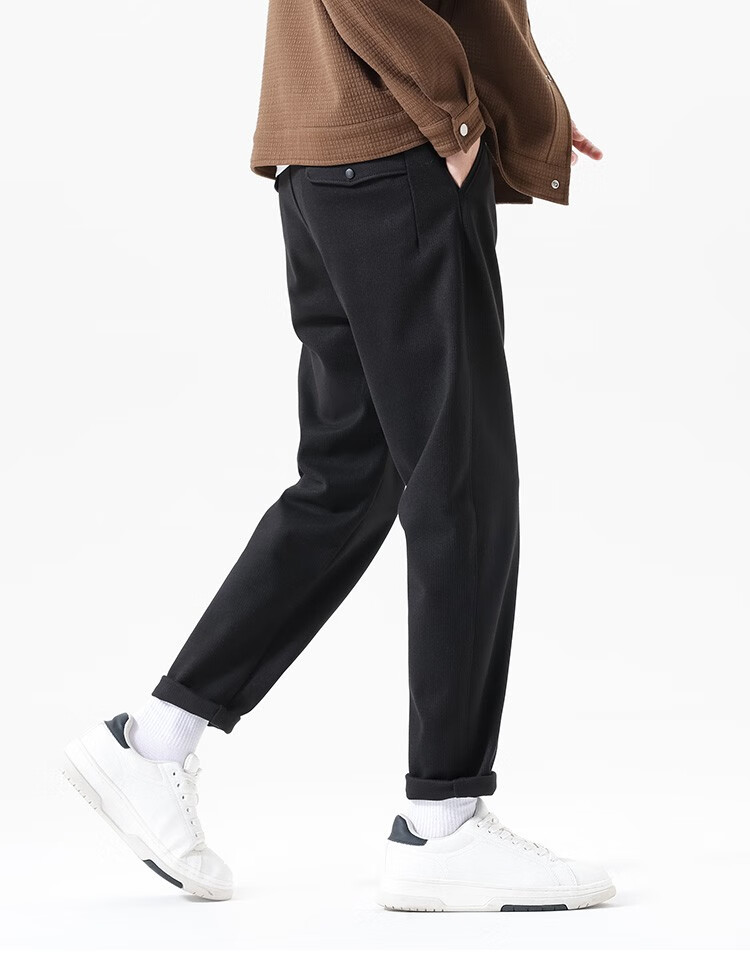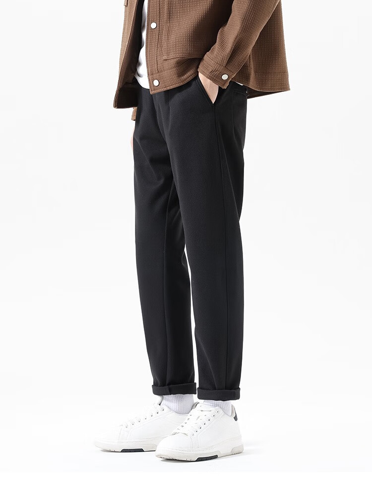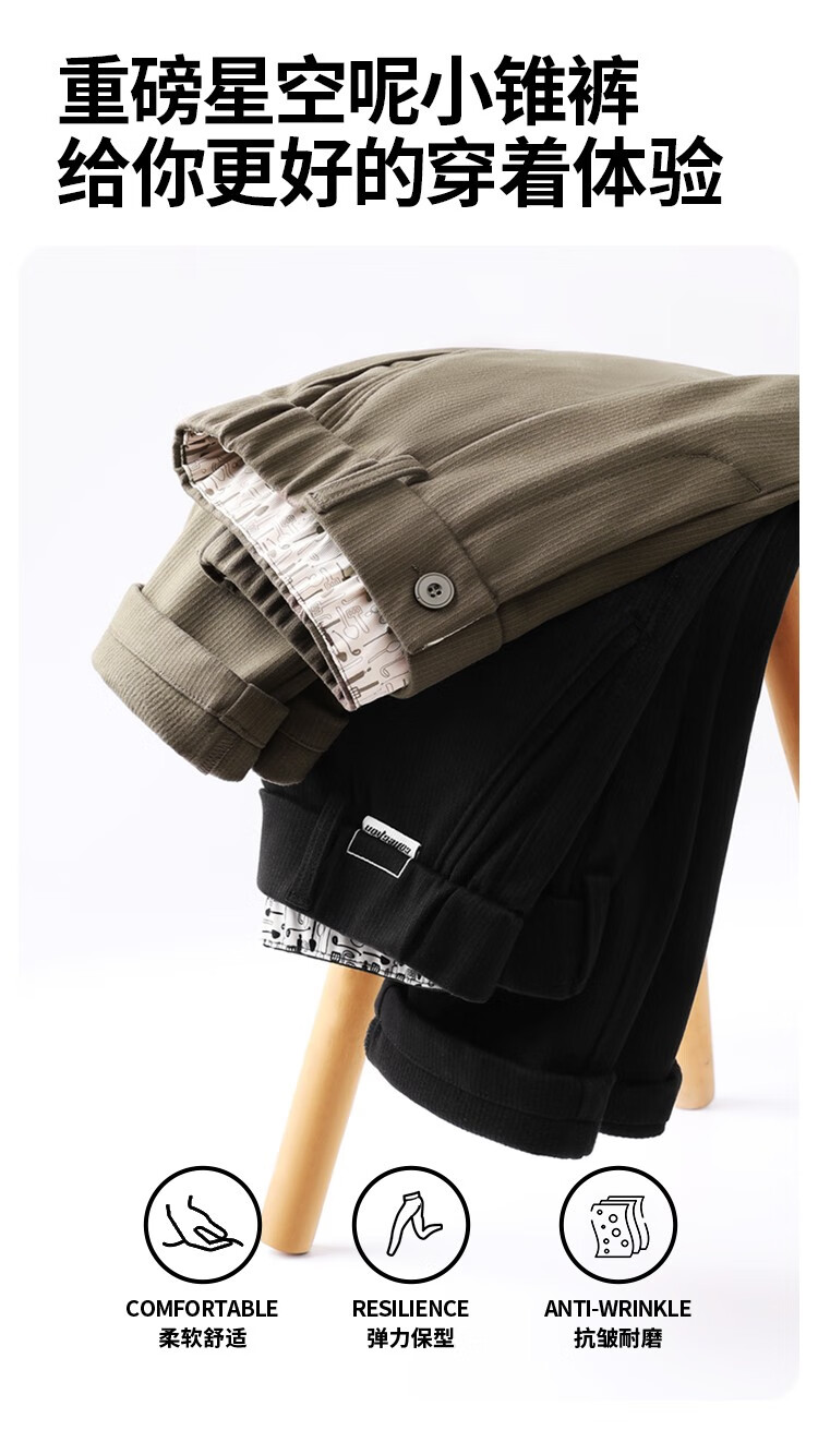 布衣传说 450g重磅星空呢 秋冬款加厚休闲裤男款宽松直筒长裤子潮 黑色 34