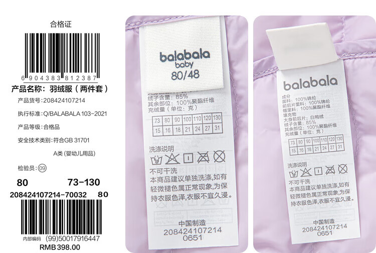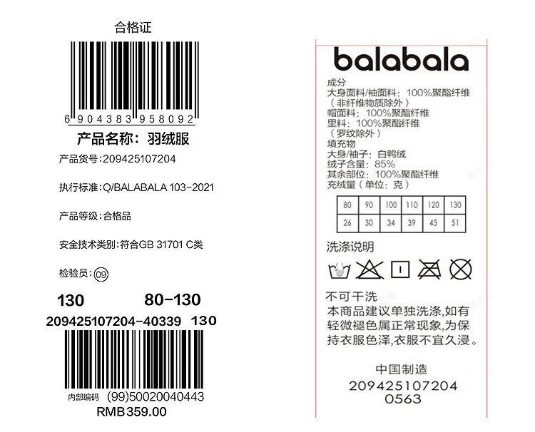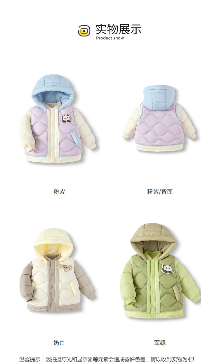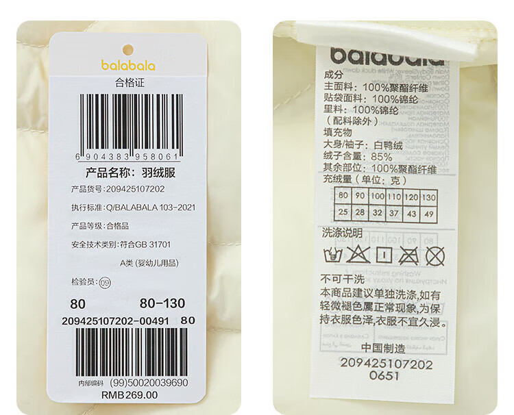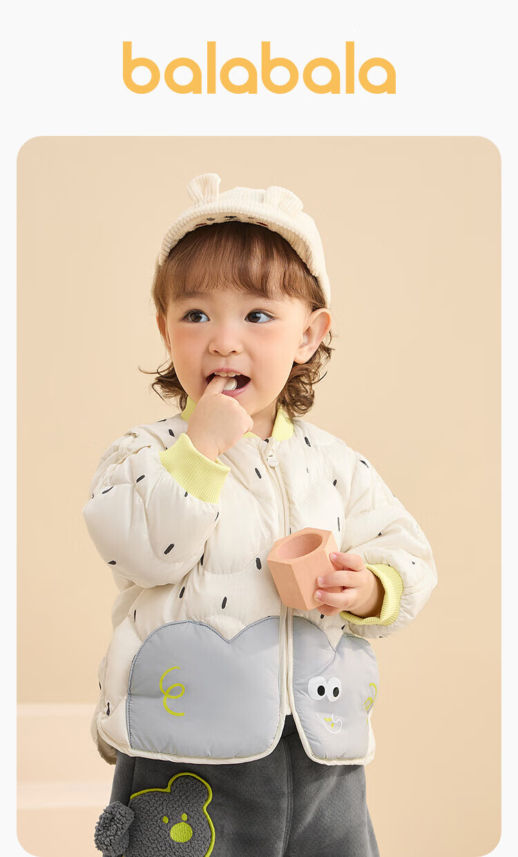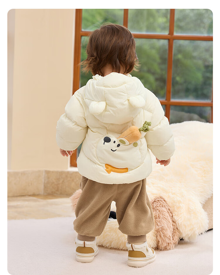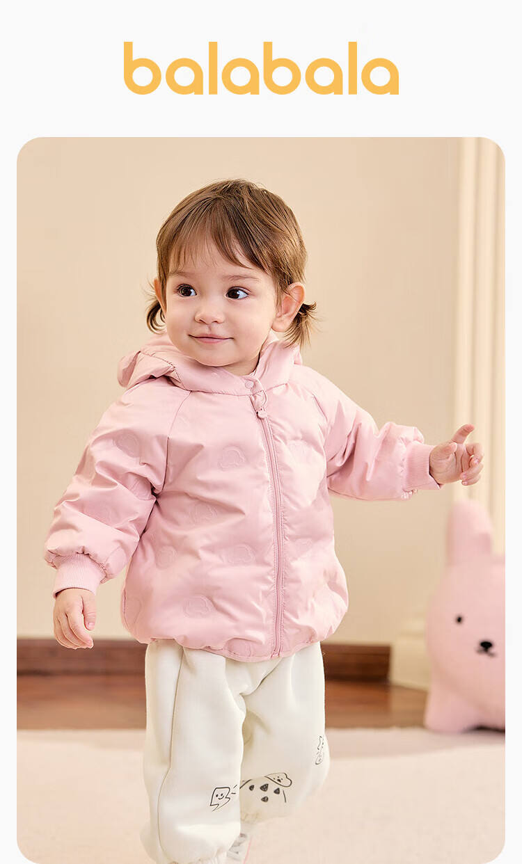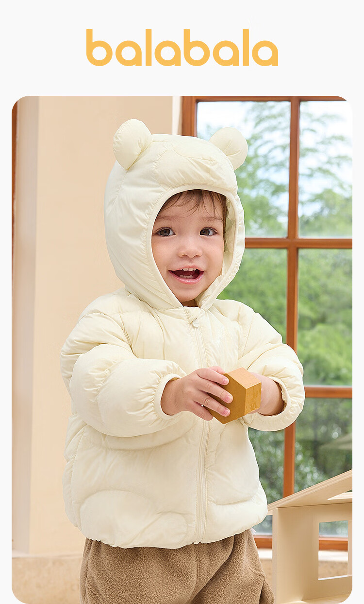 巴拉巴拉童装儿童羽绒服男女童连帽外套2025新款秋冬宝宝婴儿外套保暖上衣 奶黄-209425107202 100
