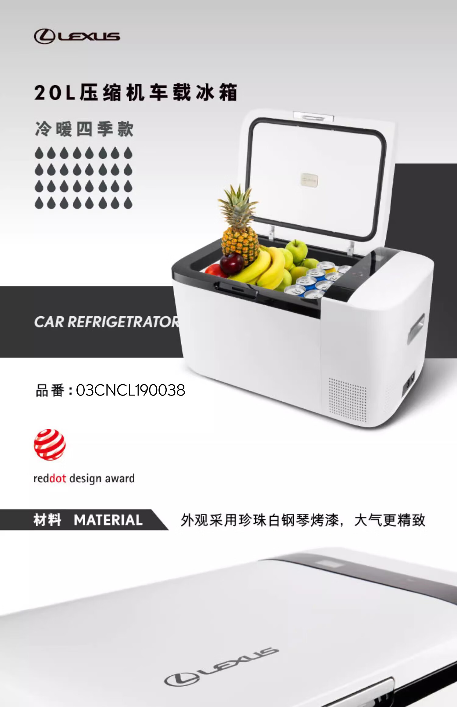 雷克萨斯 压缩机车载冰箱(冷暖四季款) 容量20L 户外车载冷藏冷冻冰箱冰柜