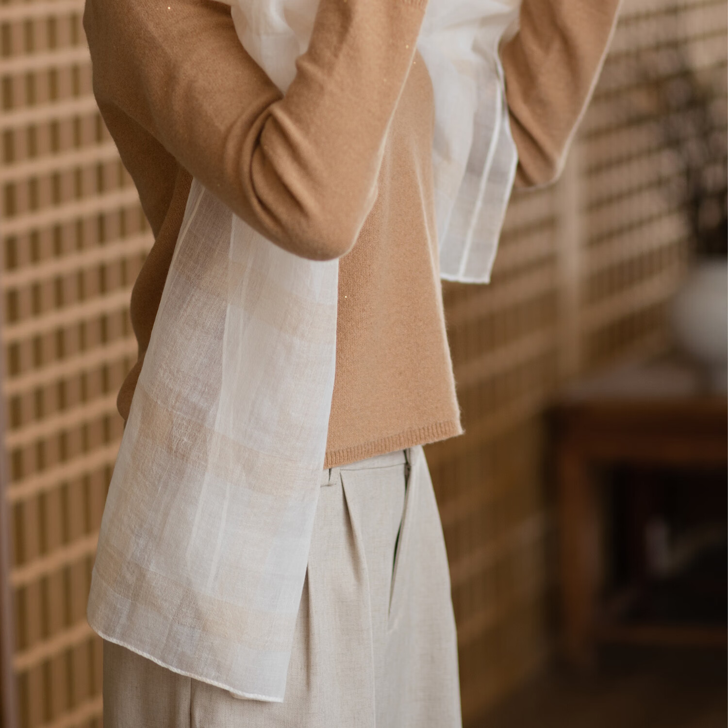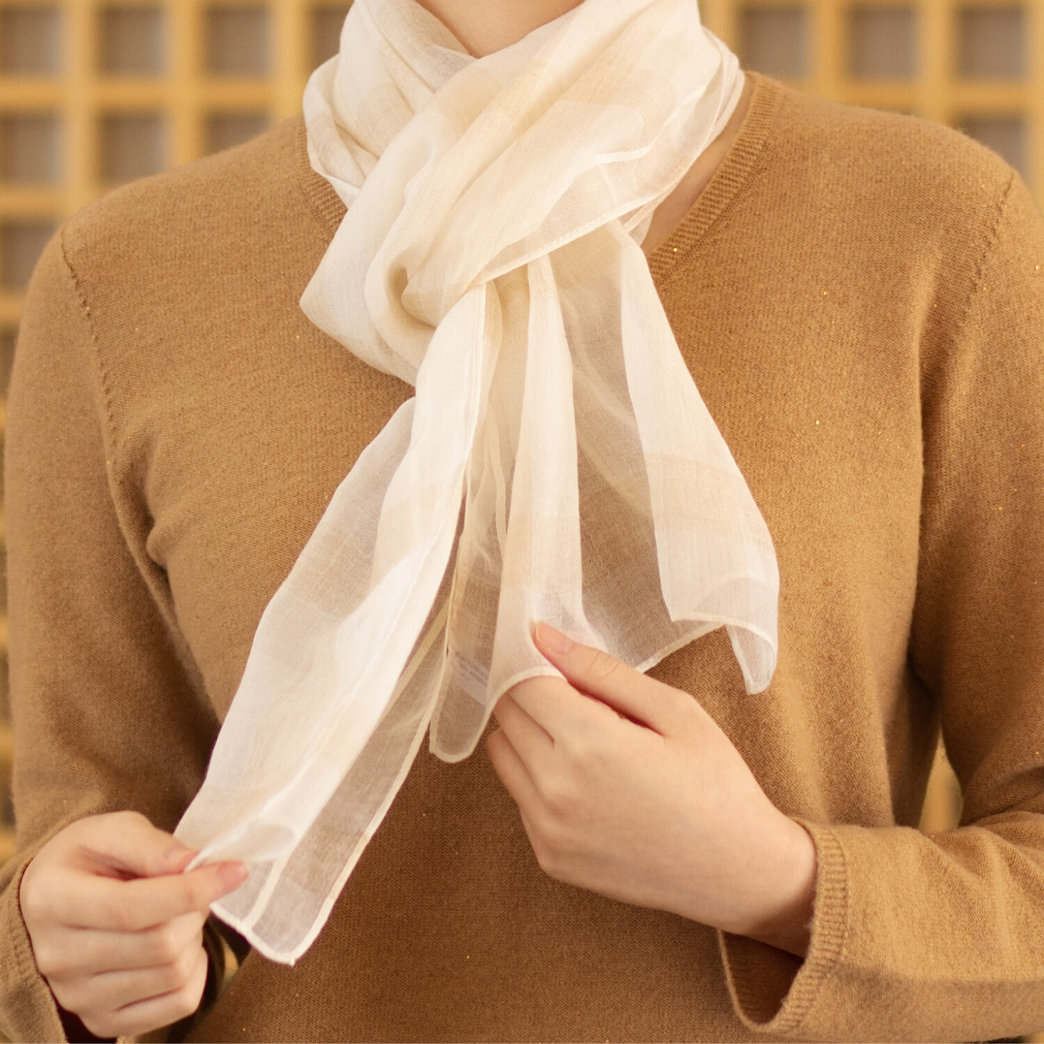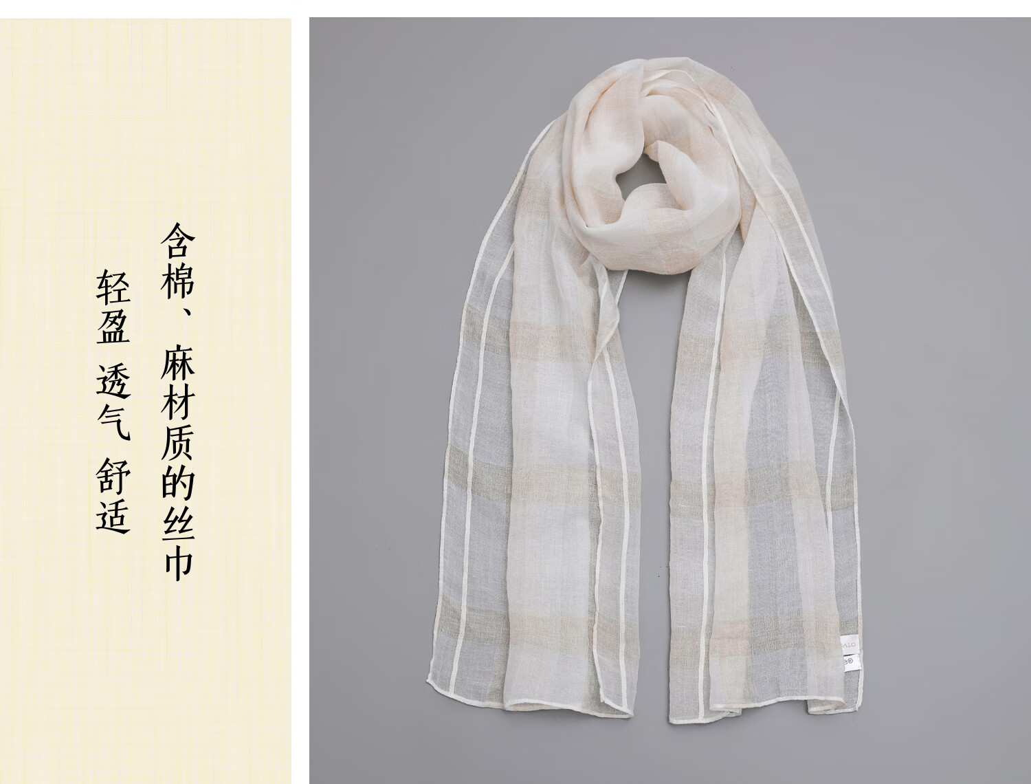 FELICEREGALO日本品牌女丝巾围巾薄款山羊绒桑亚麻蚕丝棉实体商场款中日同步售 格纹黄