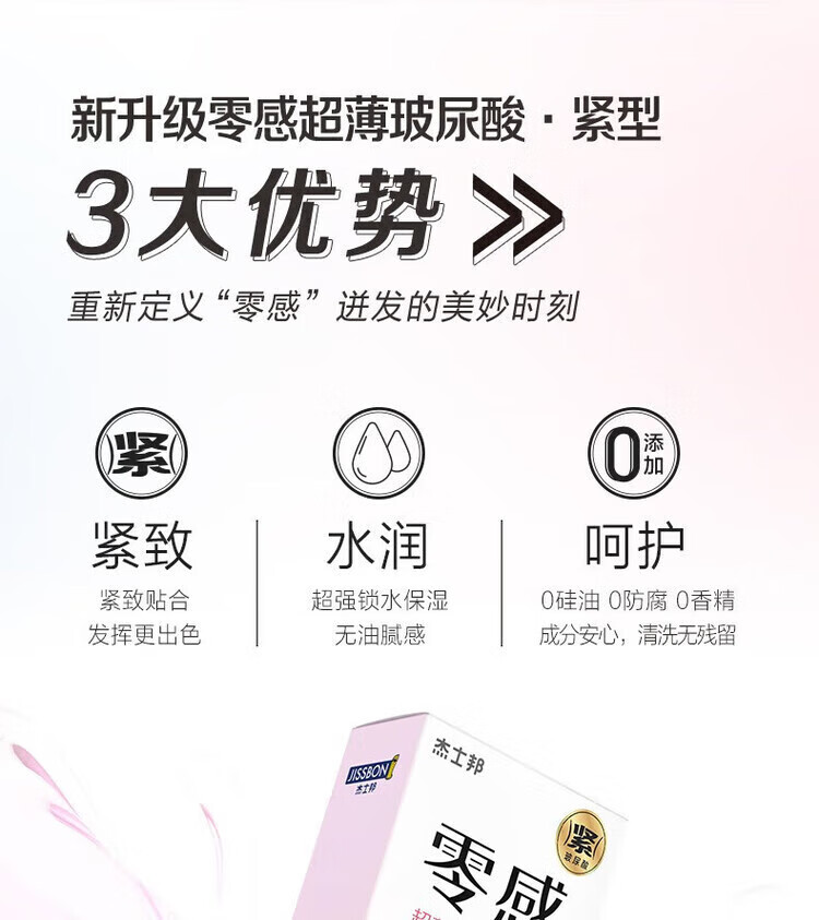 杰士邦001小号套玻尿酸紧型49mm零感ZERO紧绷型0.01特小 [小号]一盒12只