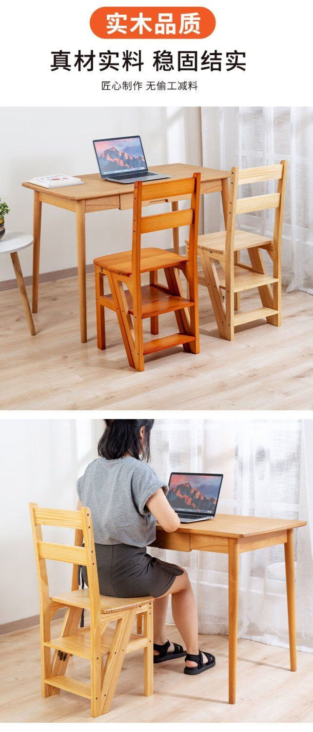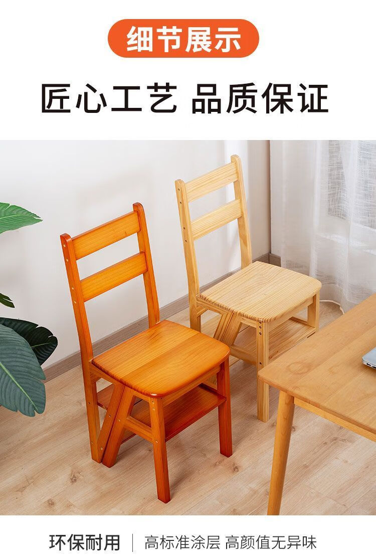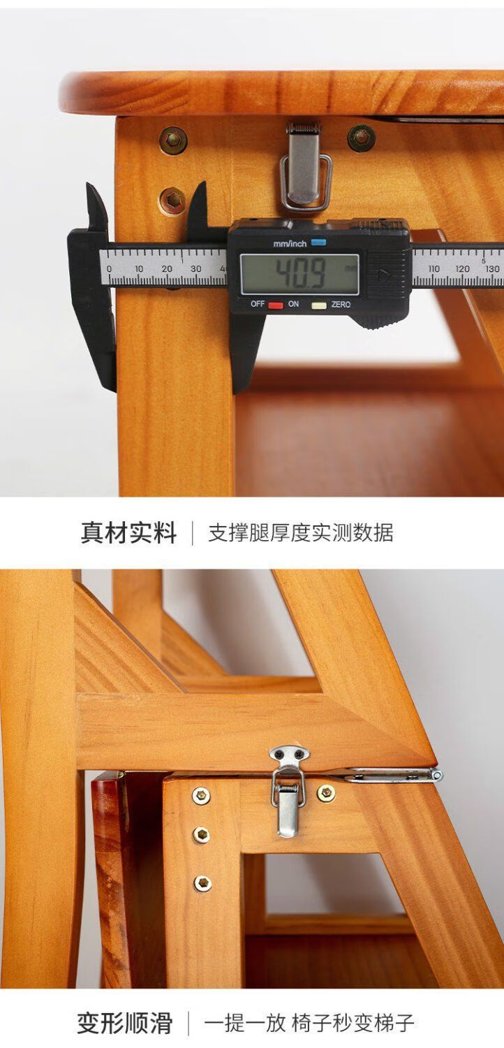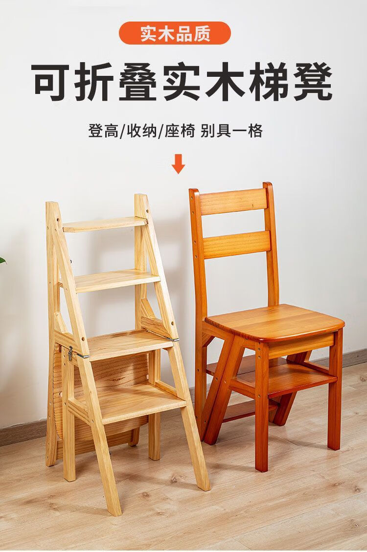 迈途森实木梯子家用折叠梯椅凳子两用椅子室内登高踏板楼梯多功能人字梯 【翻转收纳】二层-白色
