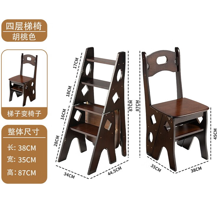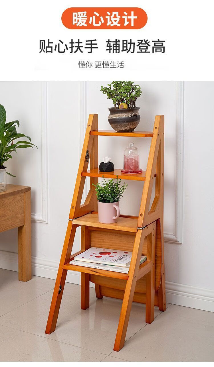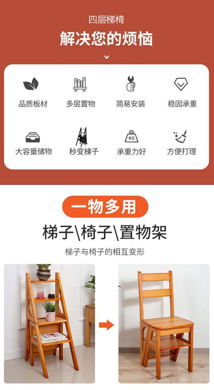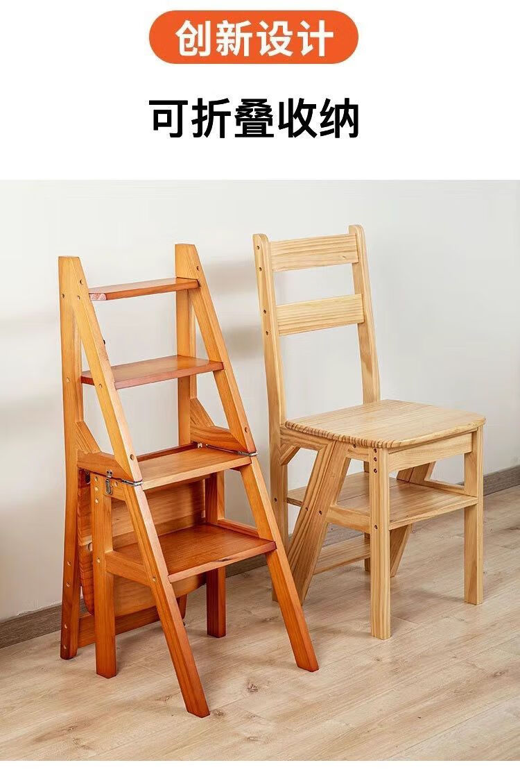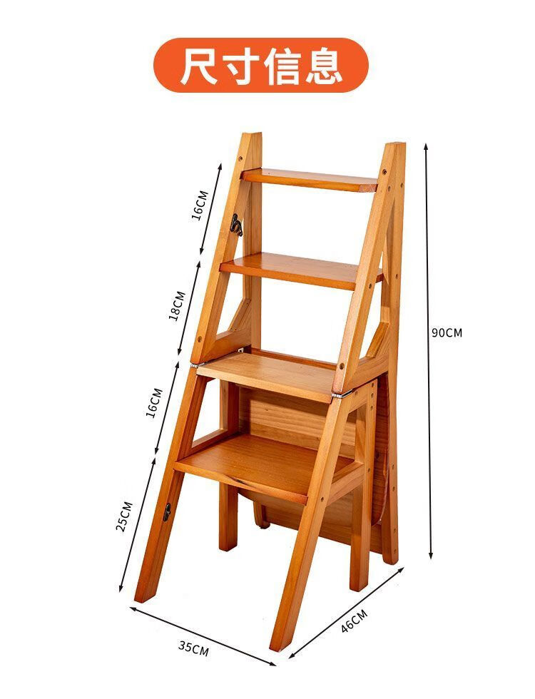 迈途森实木梯子家用折叠梯椅凳子两用椅子室内登高踏板楼梯多功能人字梯 【翻转收纳】二层-白色